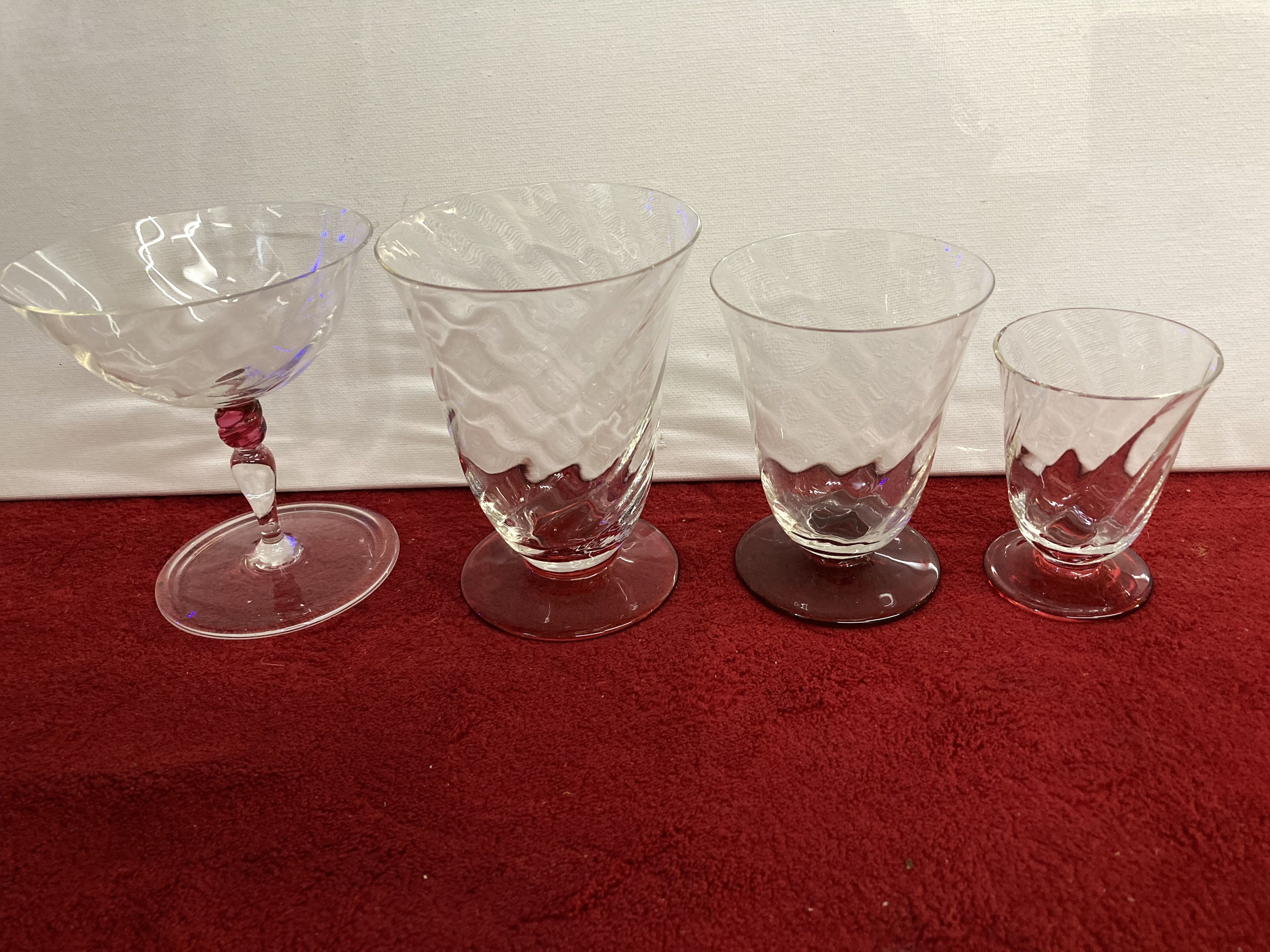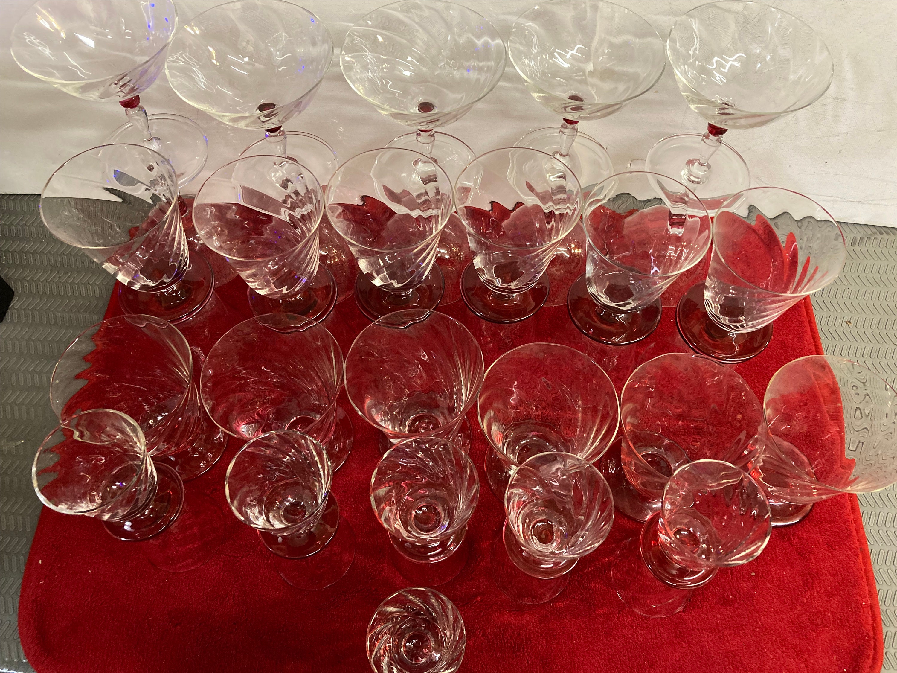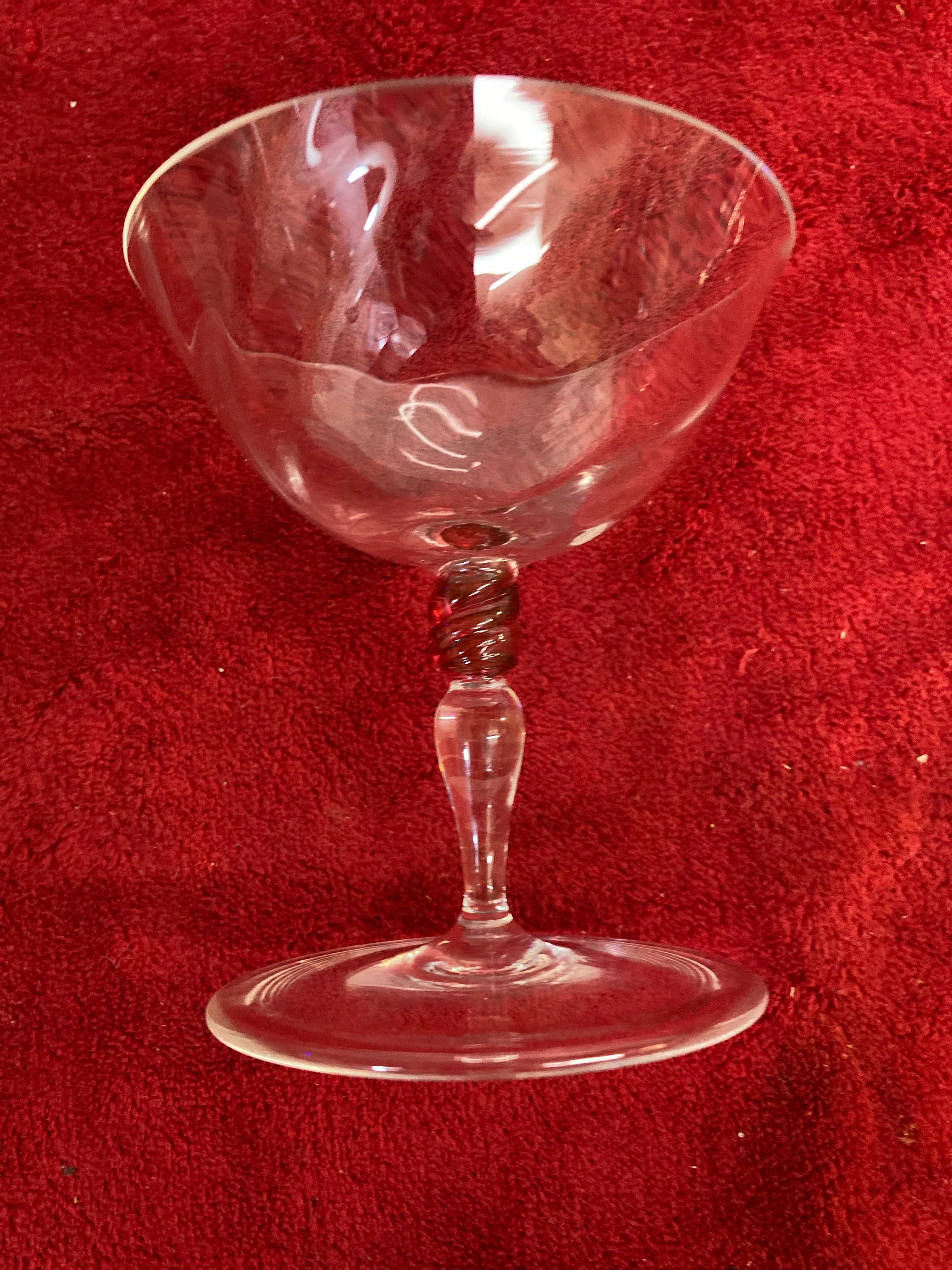 10 Champagne Glasses , Clear with toch of Red in the middle