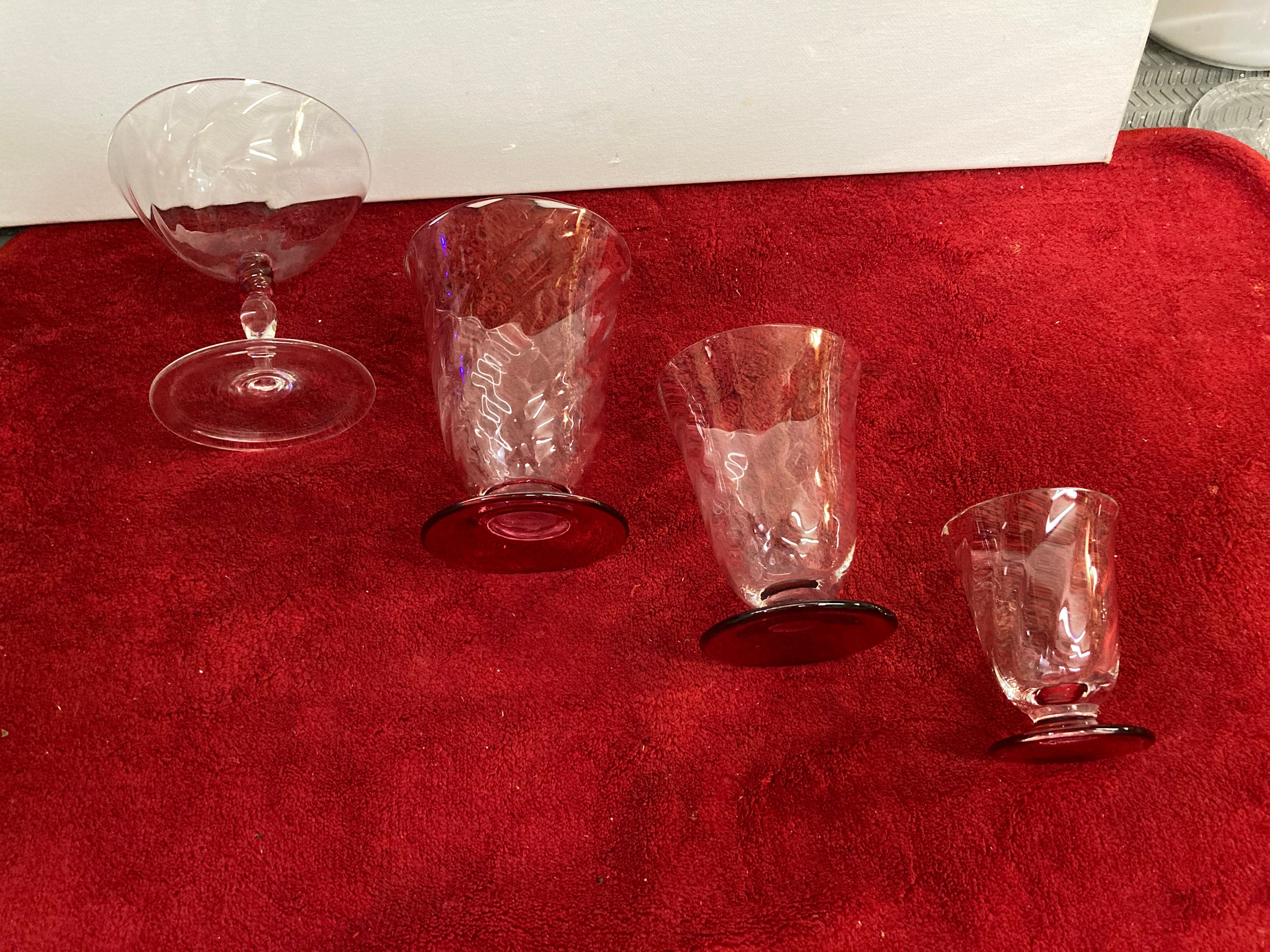 Vintage Cherry Red Empoli Italy Blown Bar Glasses 1960's