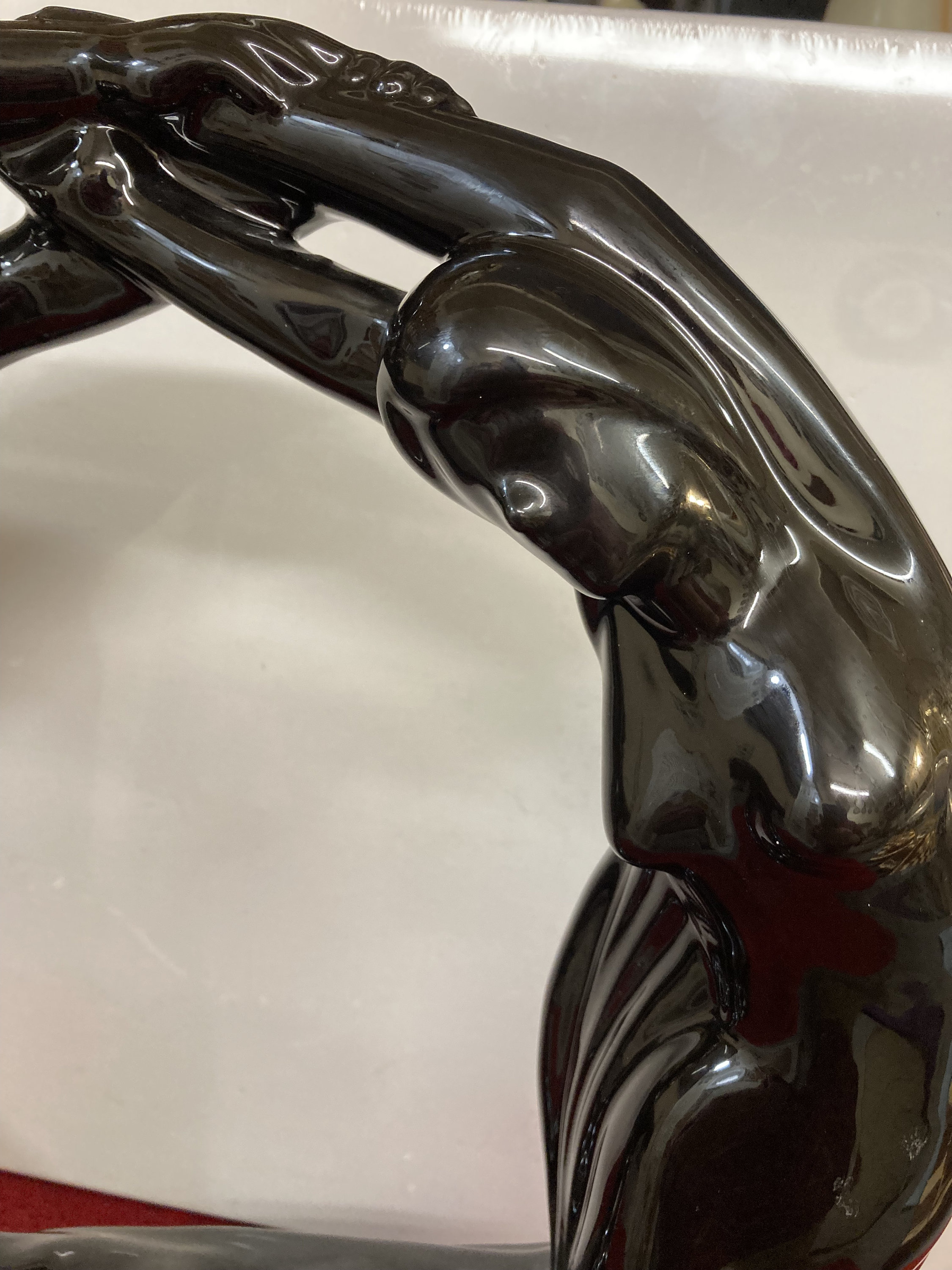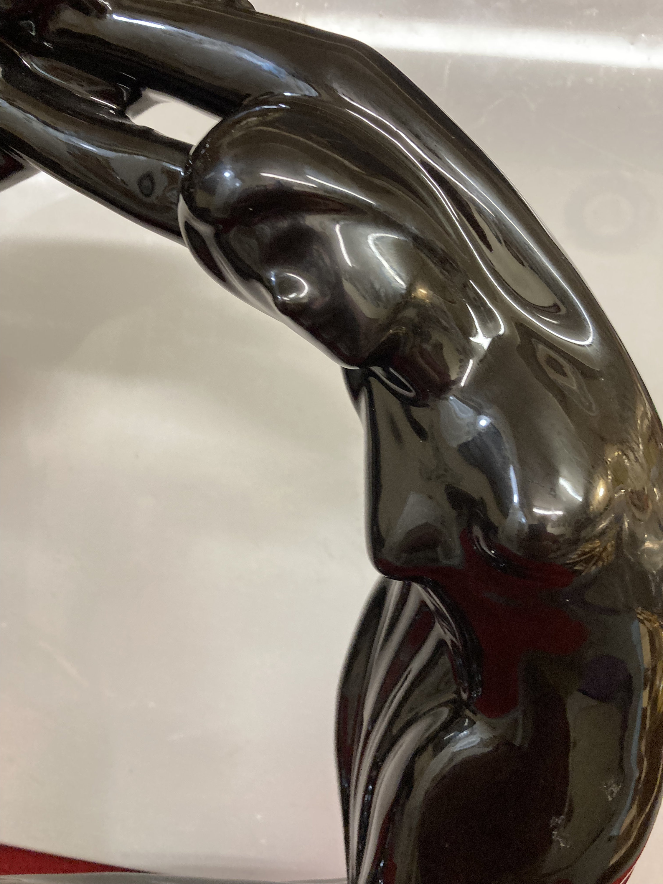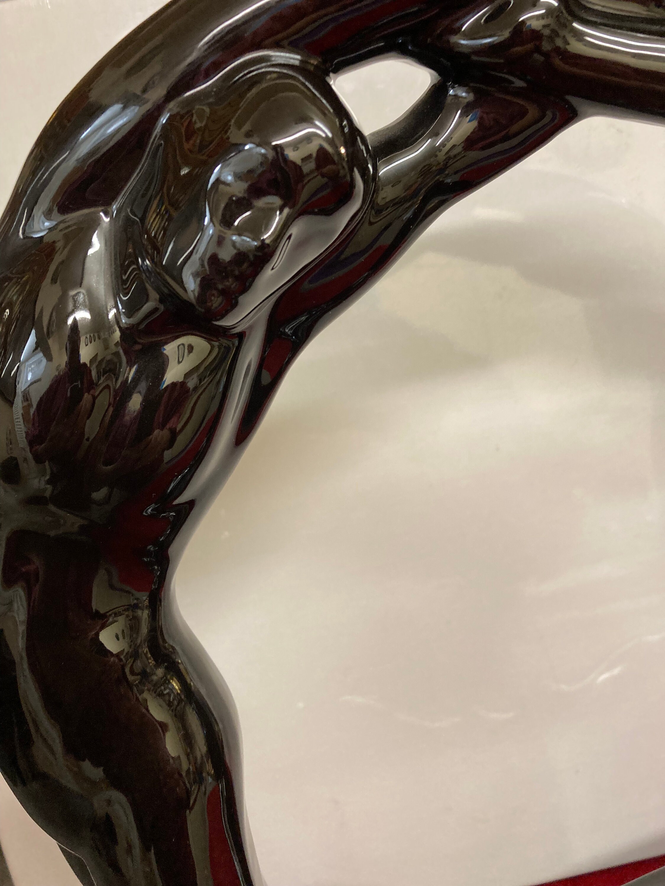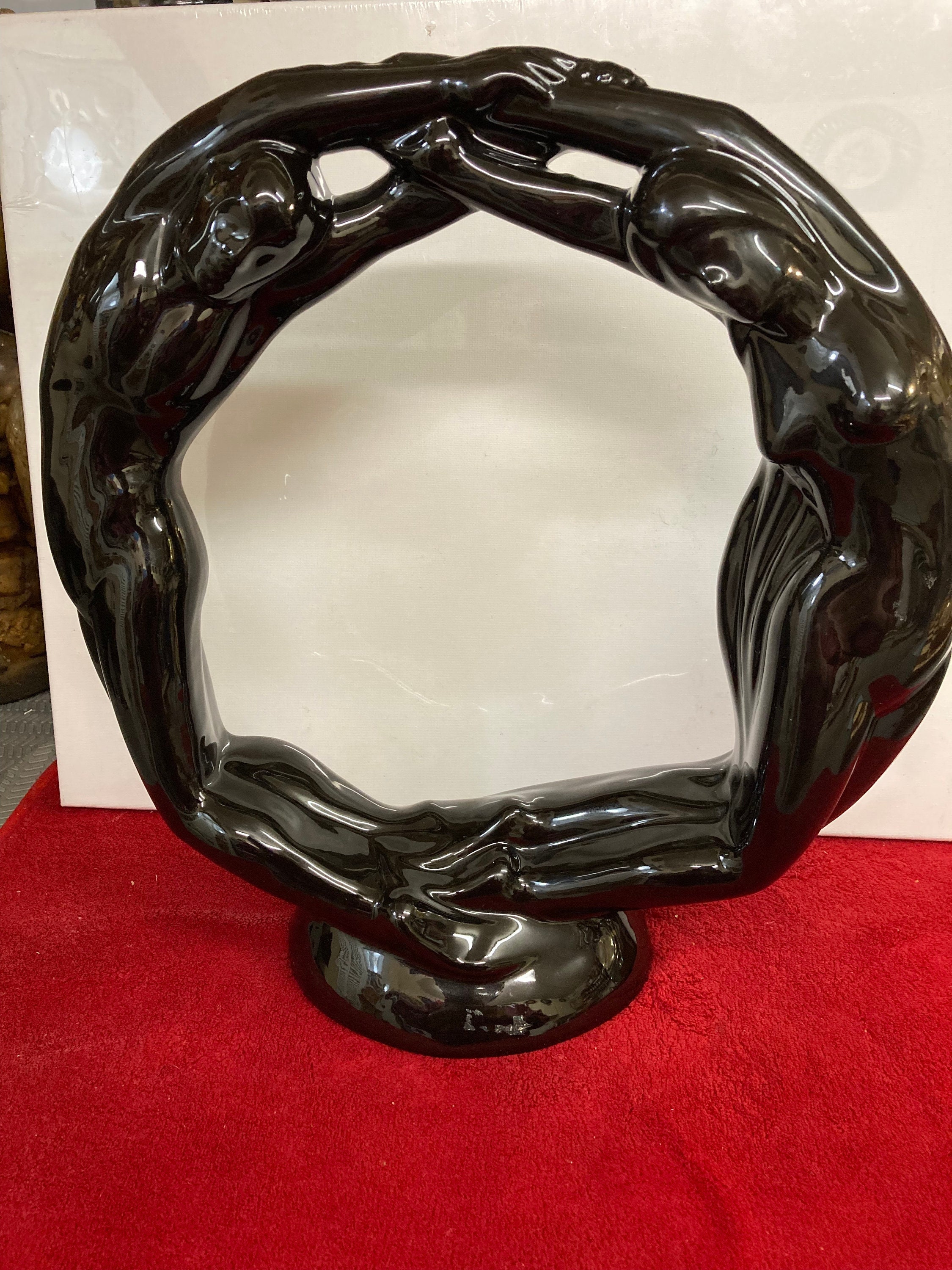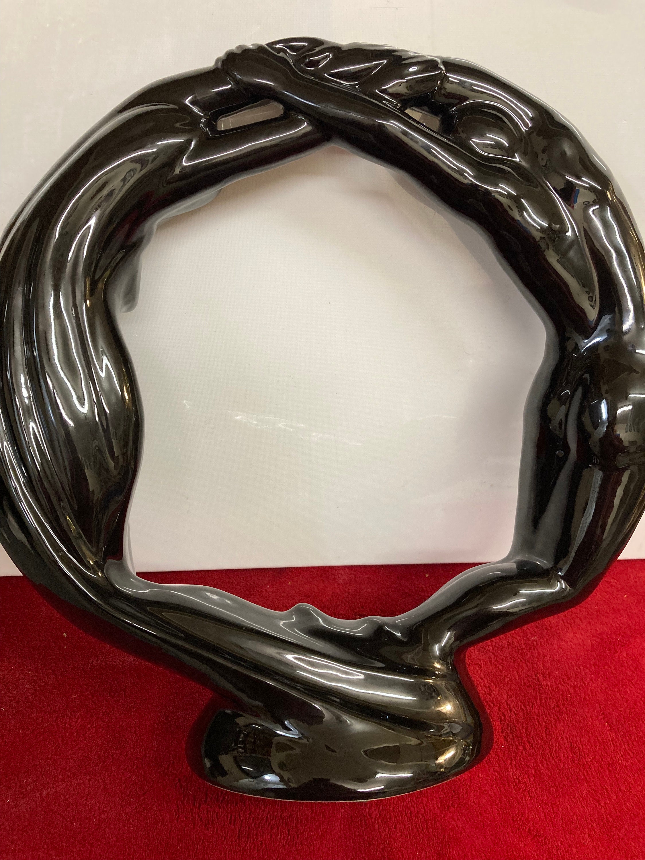 Haeger Glossy Black Ceramic Man & Woman Circle Sculpture.