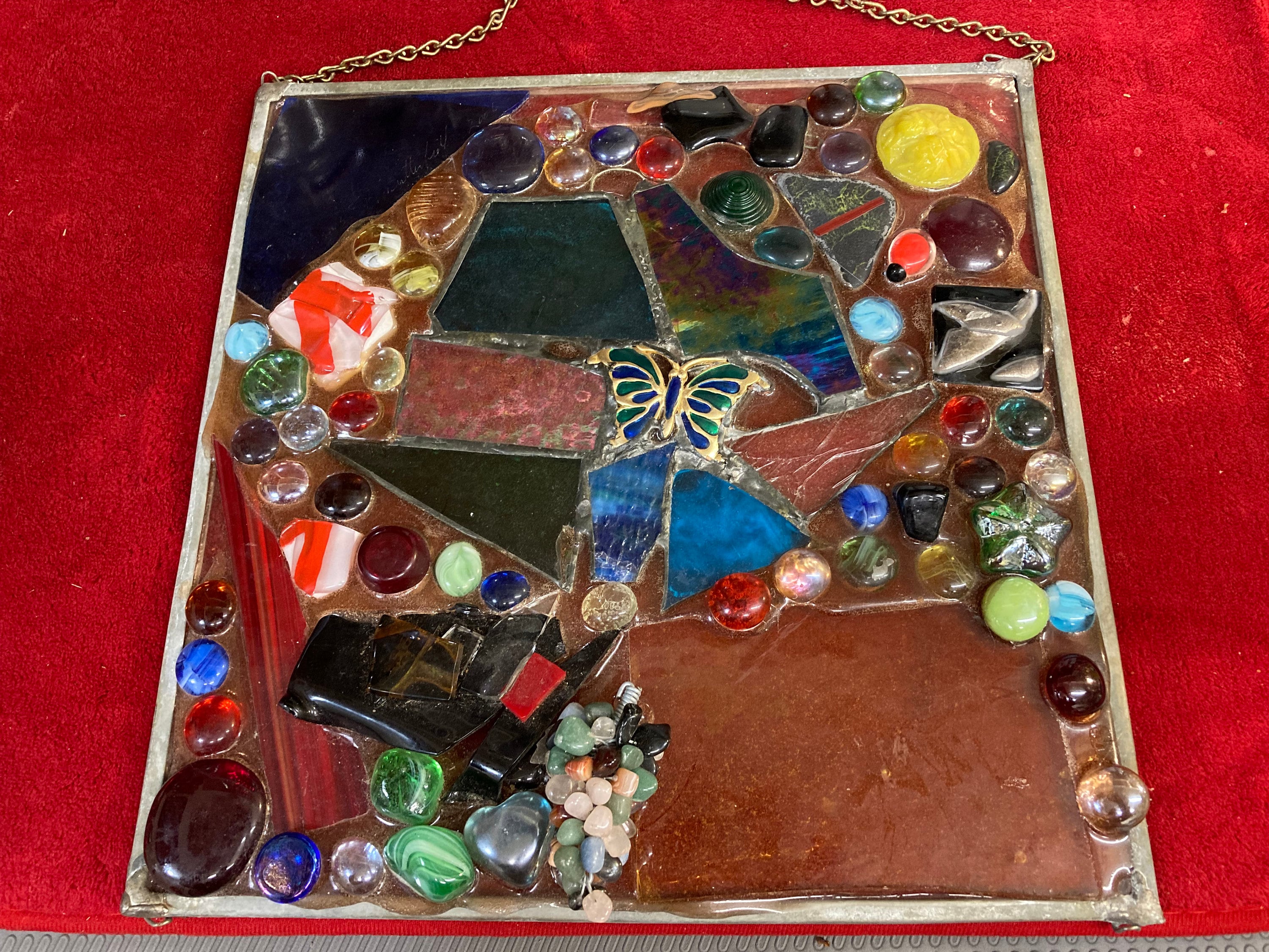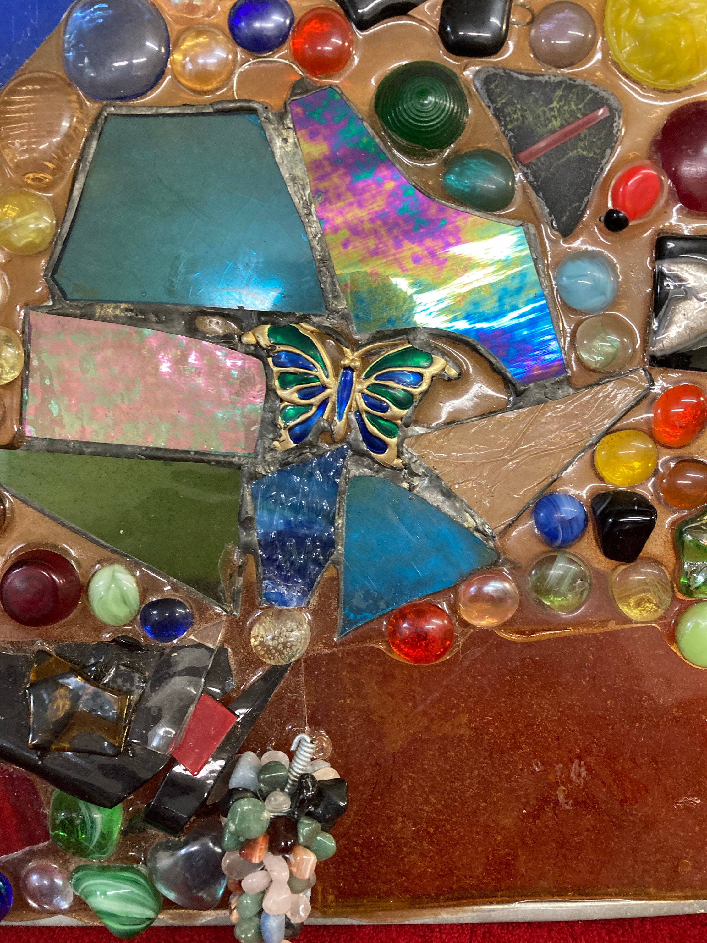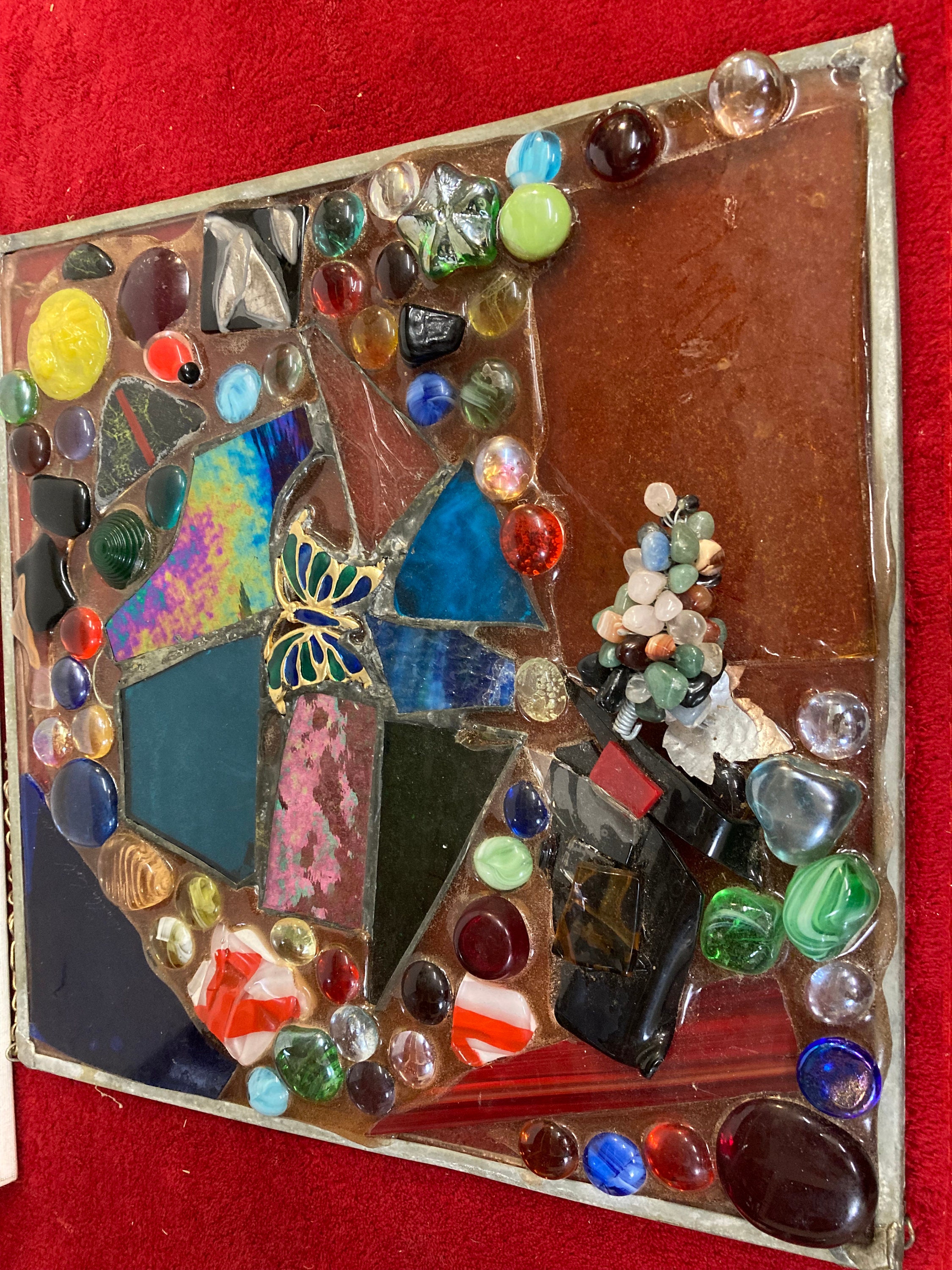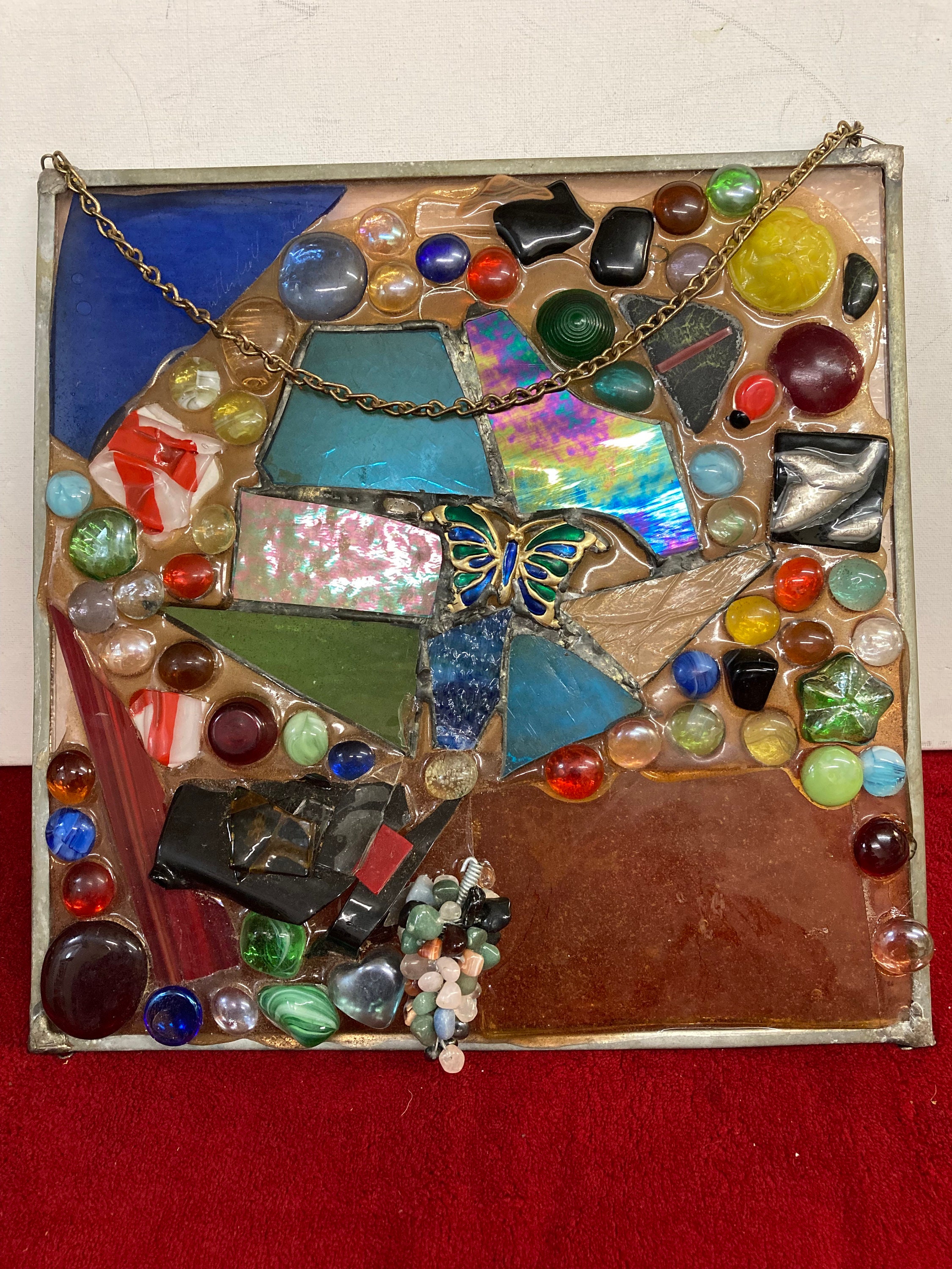 Pieces of glass and metal ornament such as Butterfly and leaf