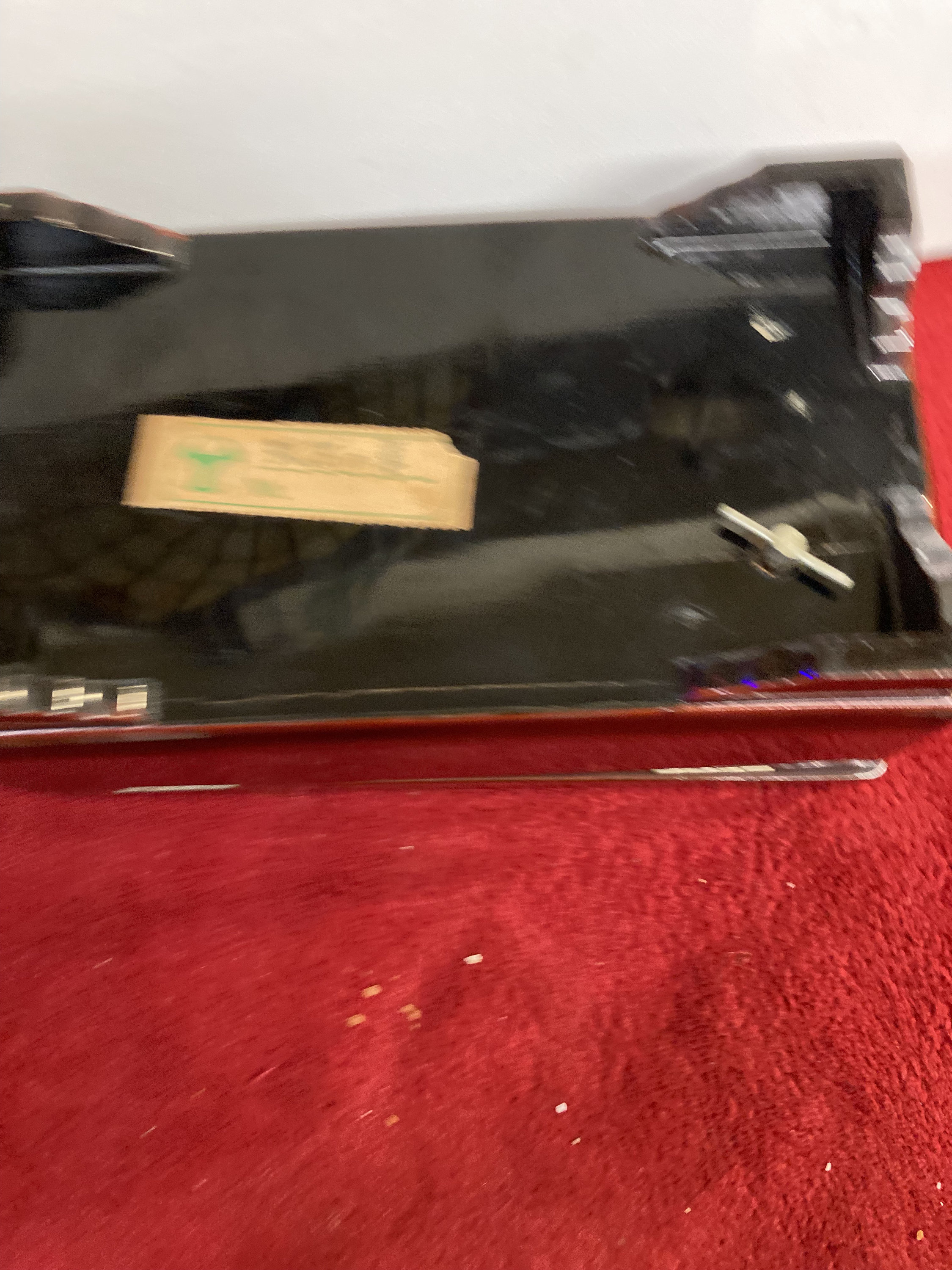 Vintage Japanese Music Jewelry Box Brown Lacqured inside Mirror and Blue Velvet