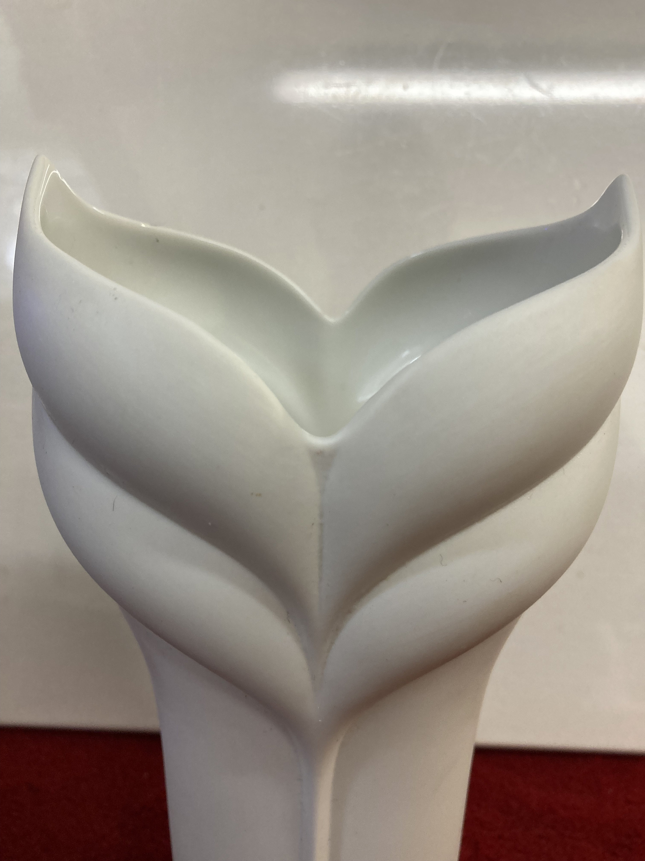 Striking original Rosenthal white Bisque Cala Lily flower vase designed by Uta Feyl and made in Germany for Studio-Linie.