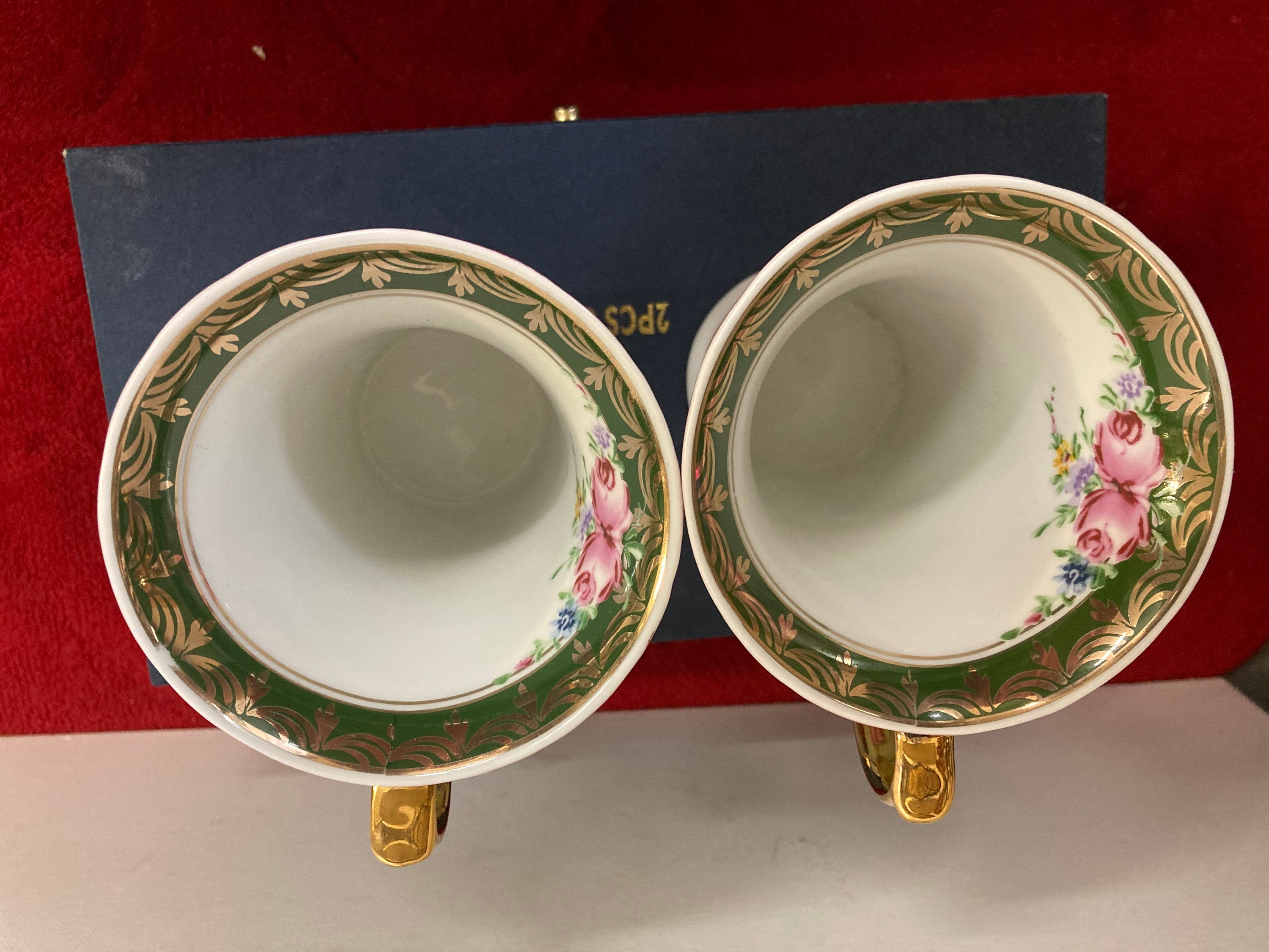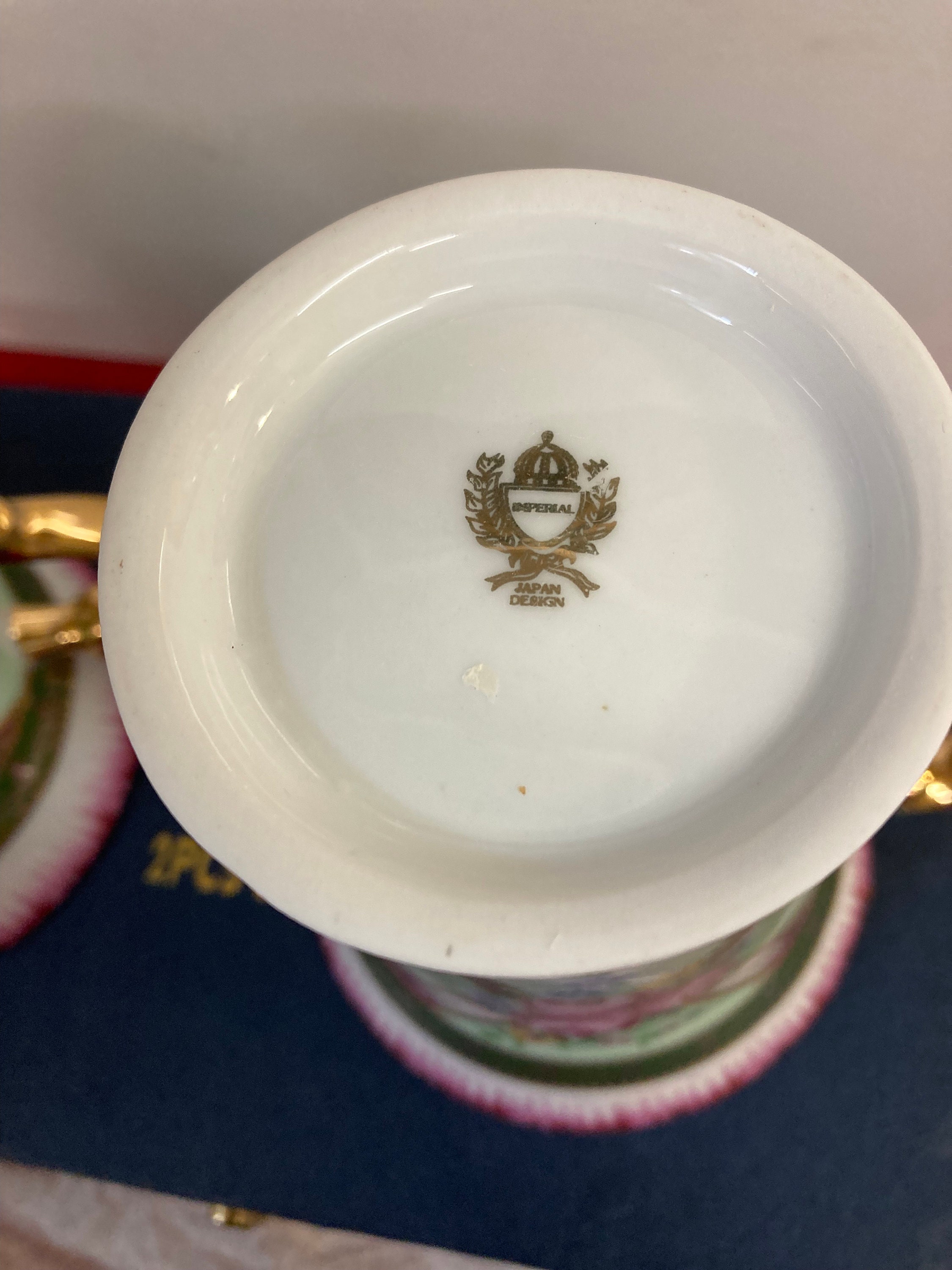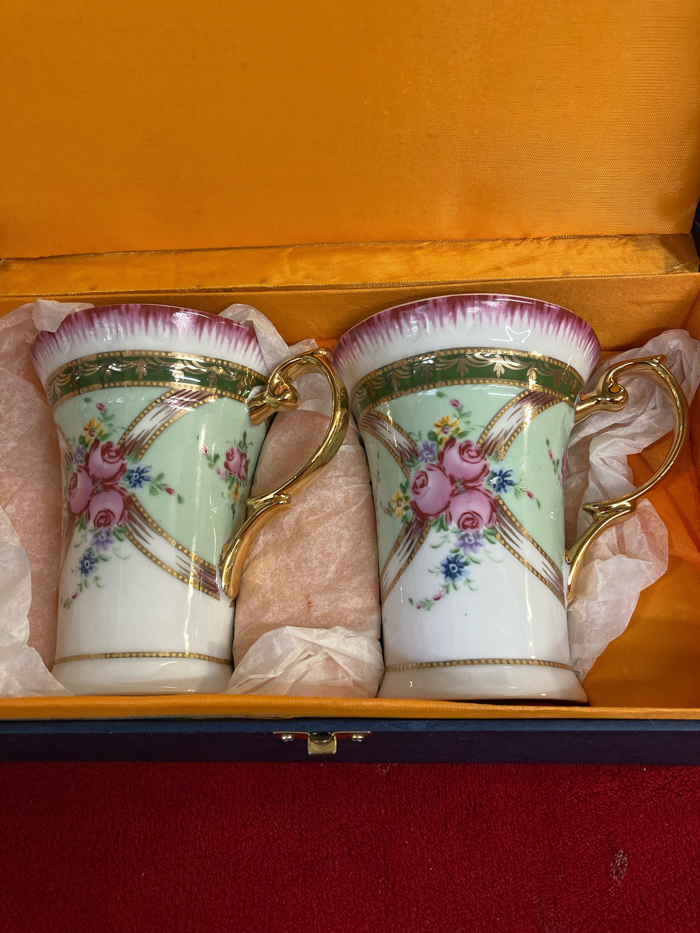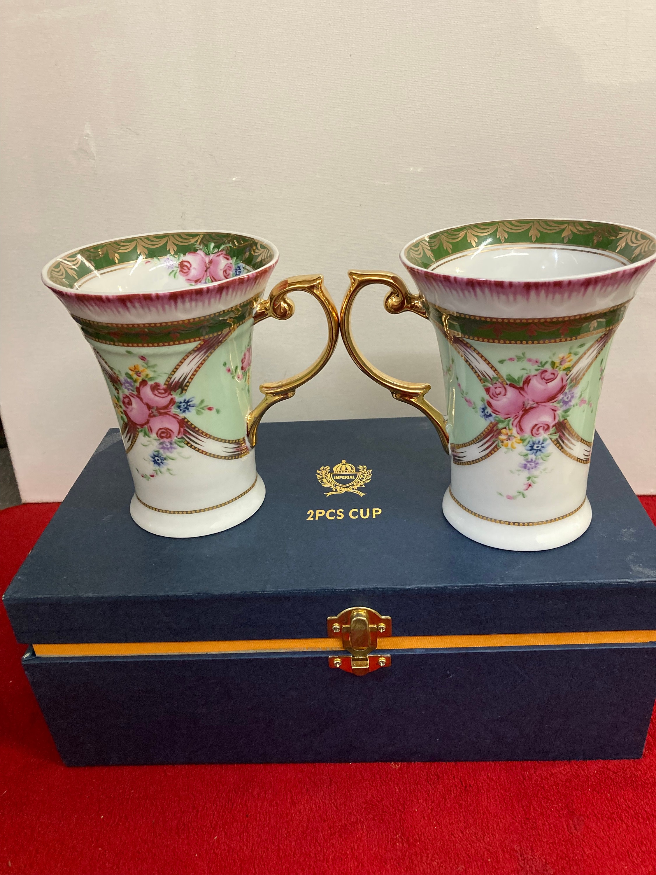 Decorated with sophisticated gold sputtering and lavishly coloured with gorgeous pink/green floral patterns,
