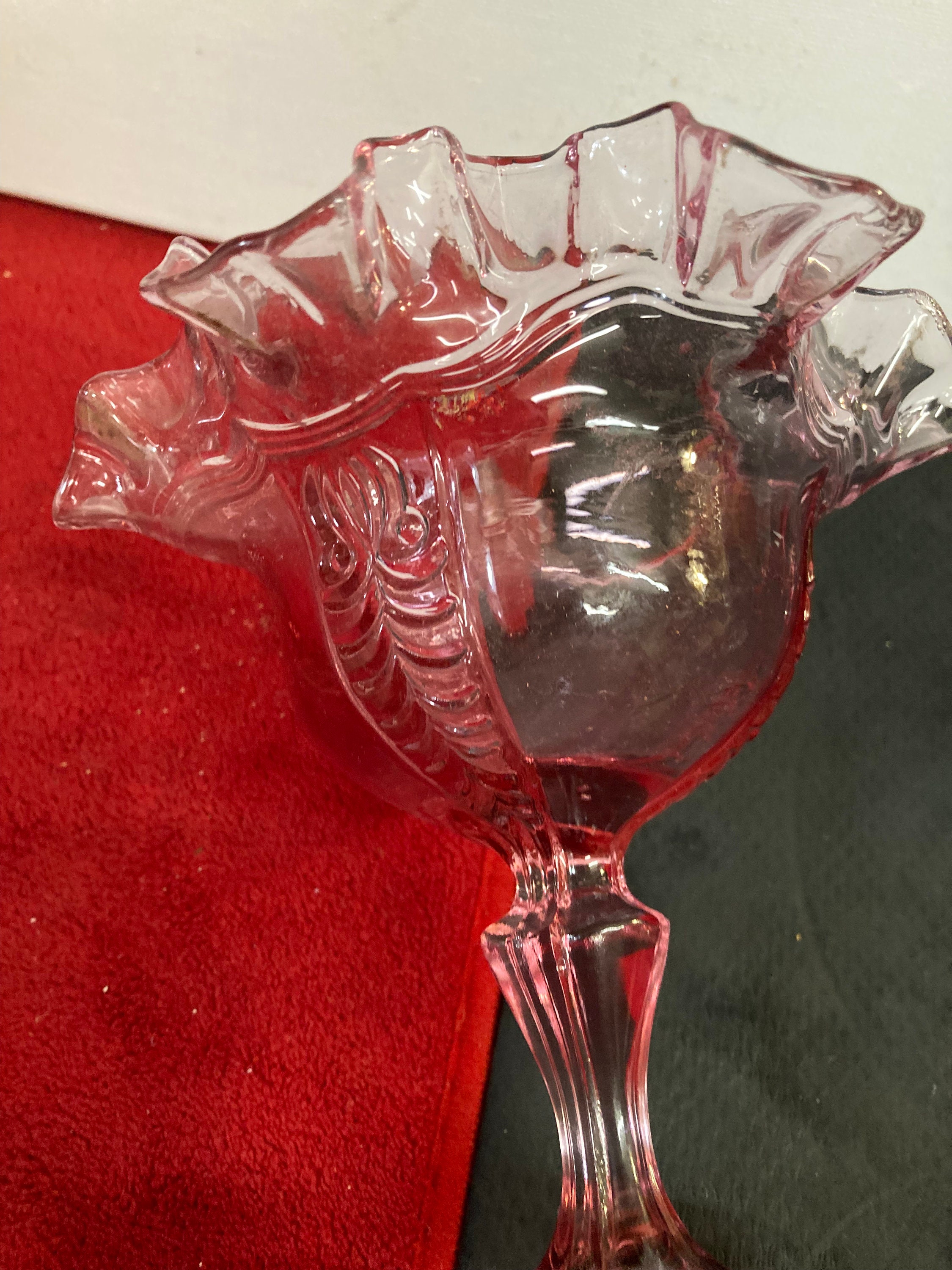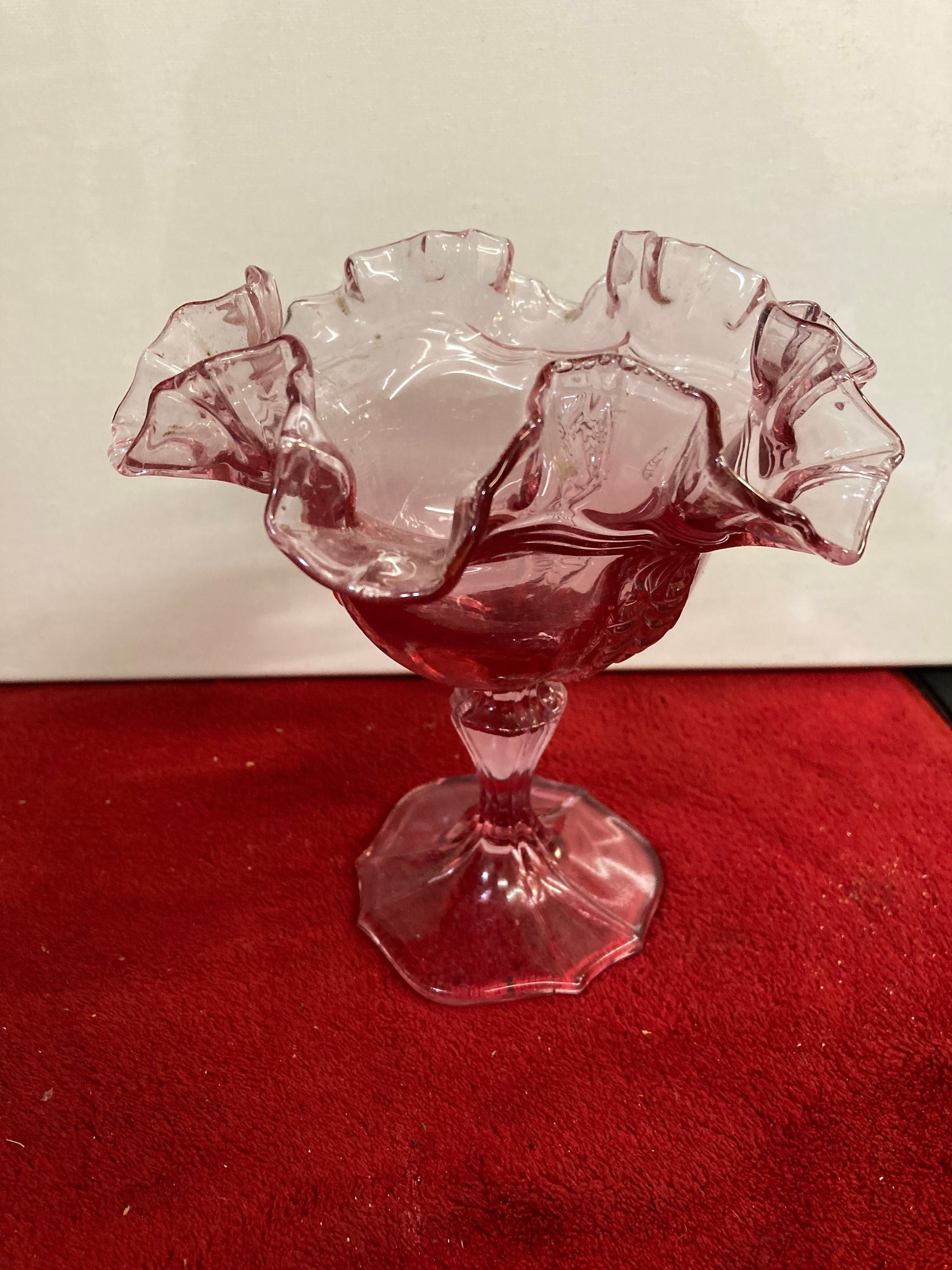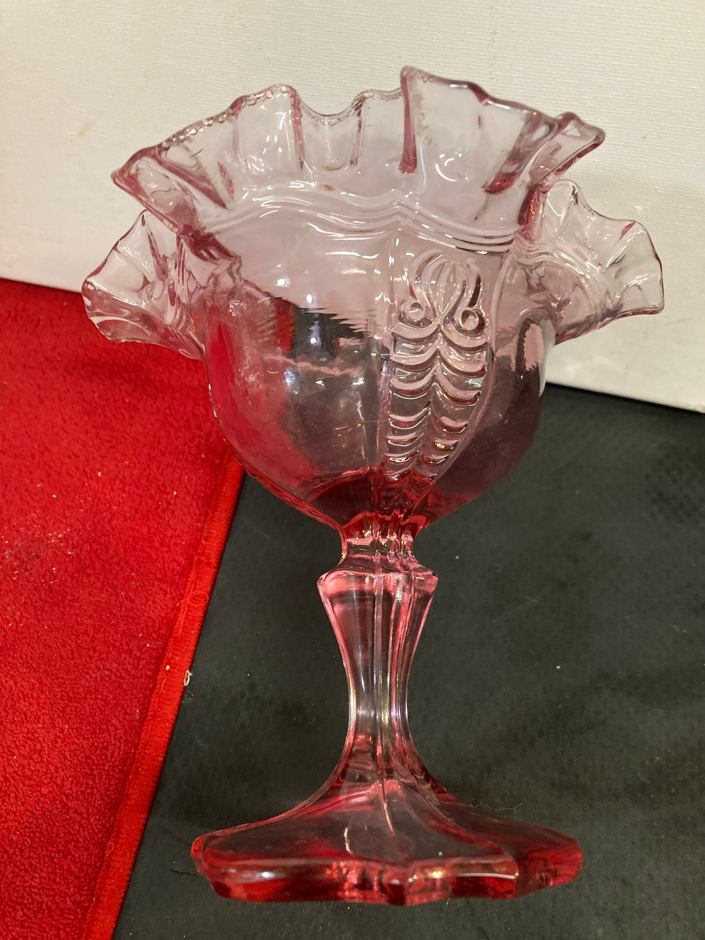 Vintage Glass Fenton Colonial Pink Cranberry Pink Footed Doubled