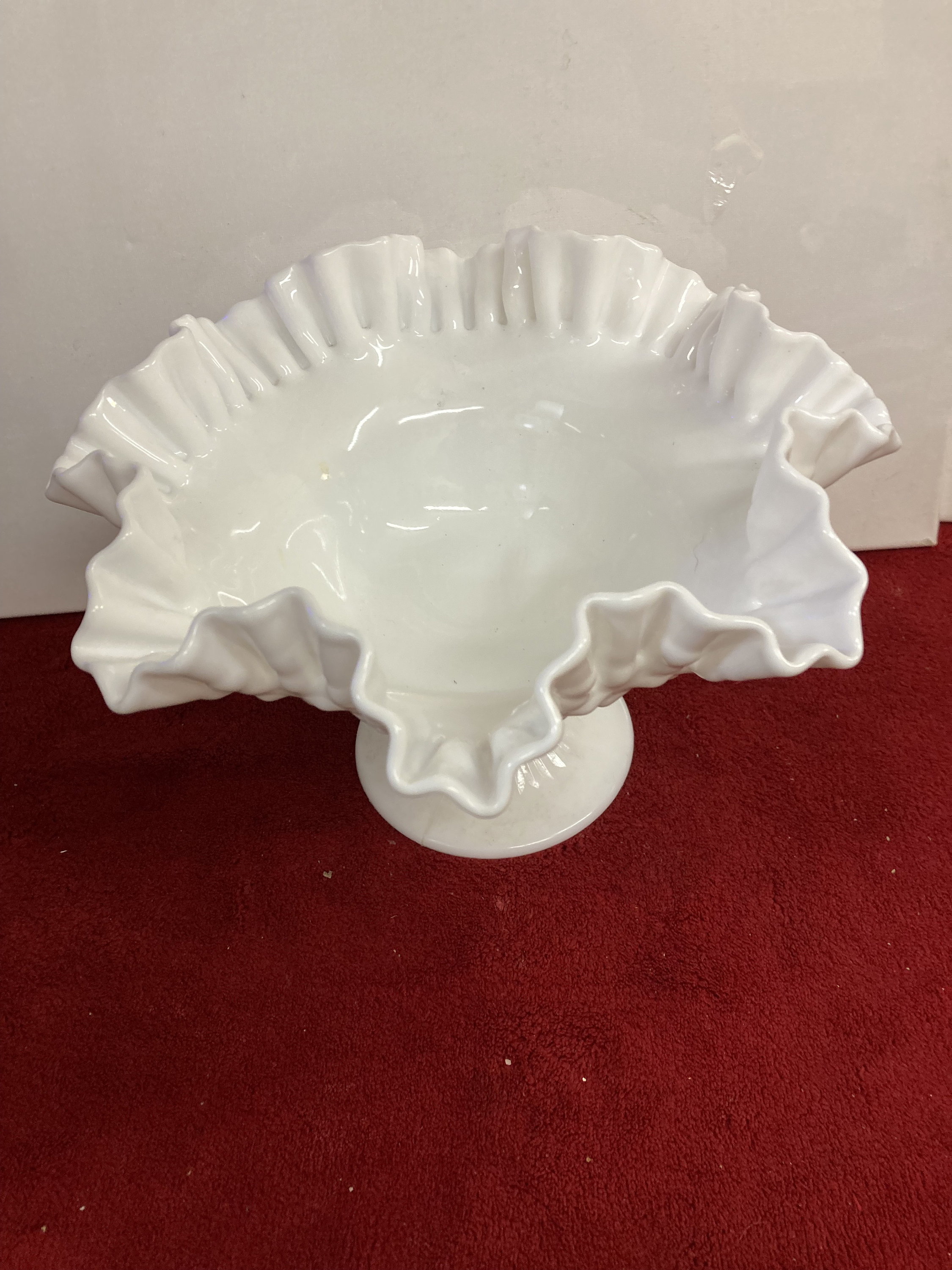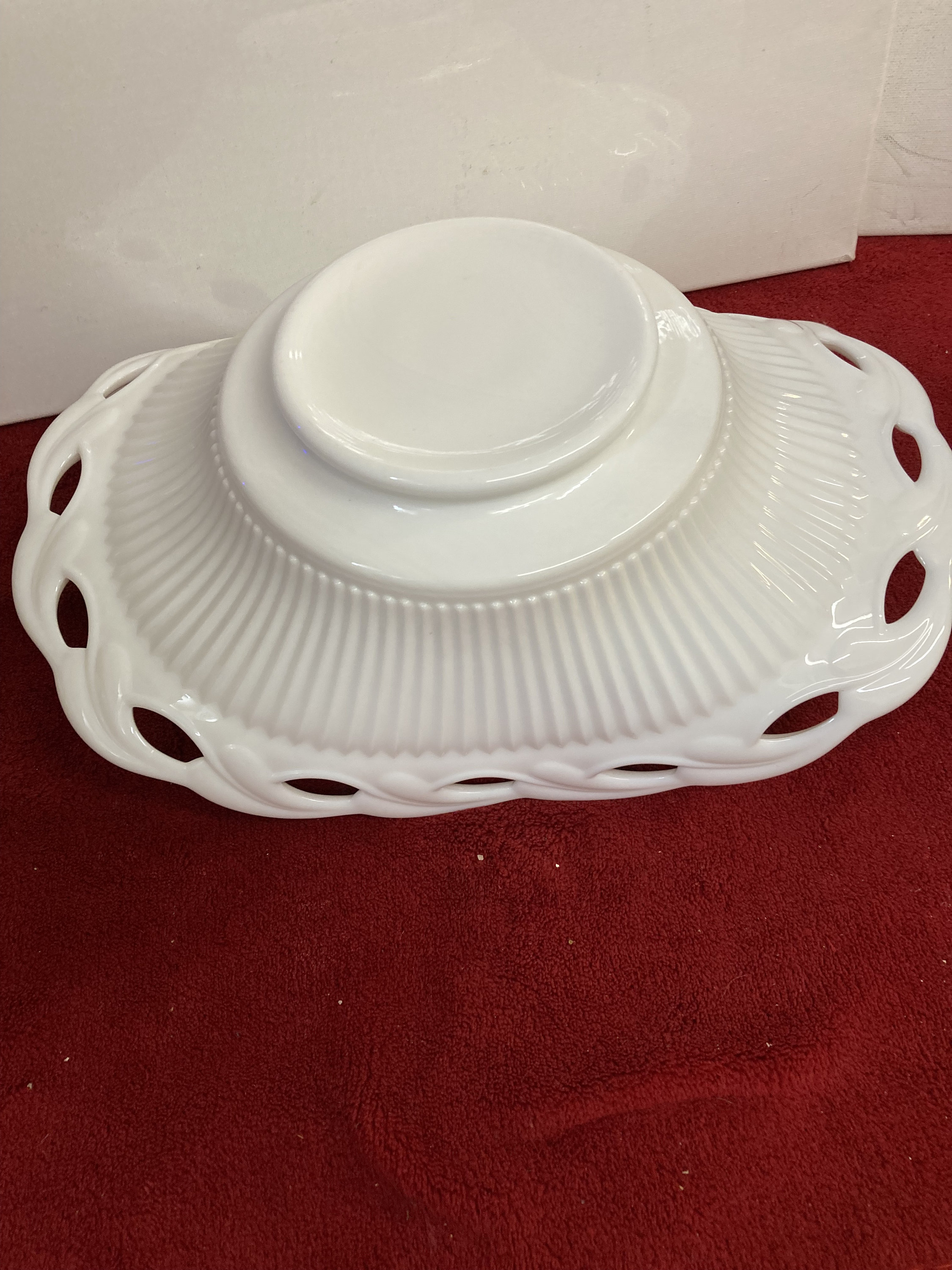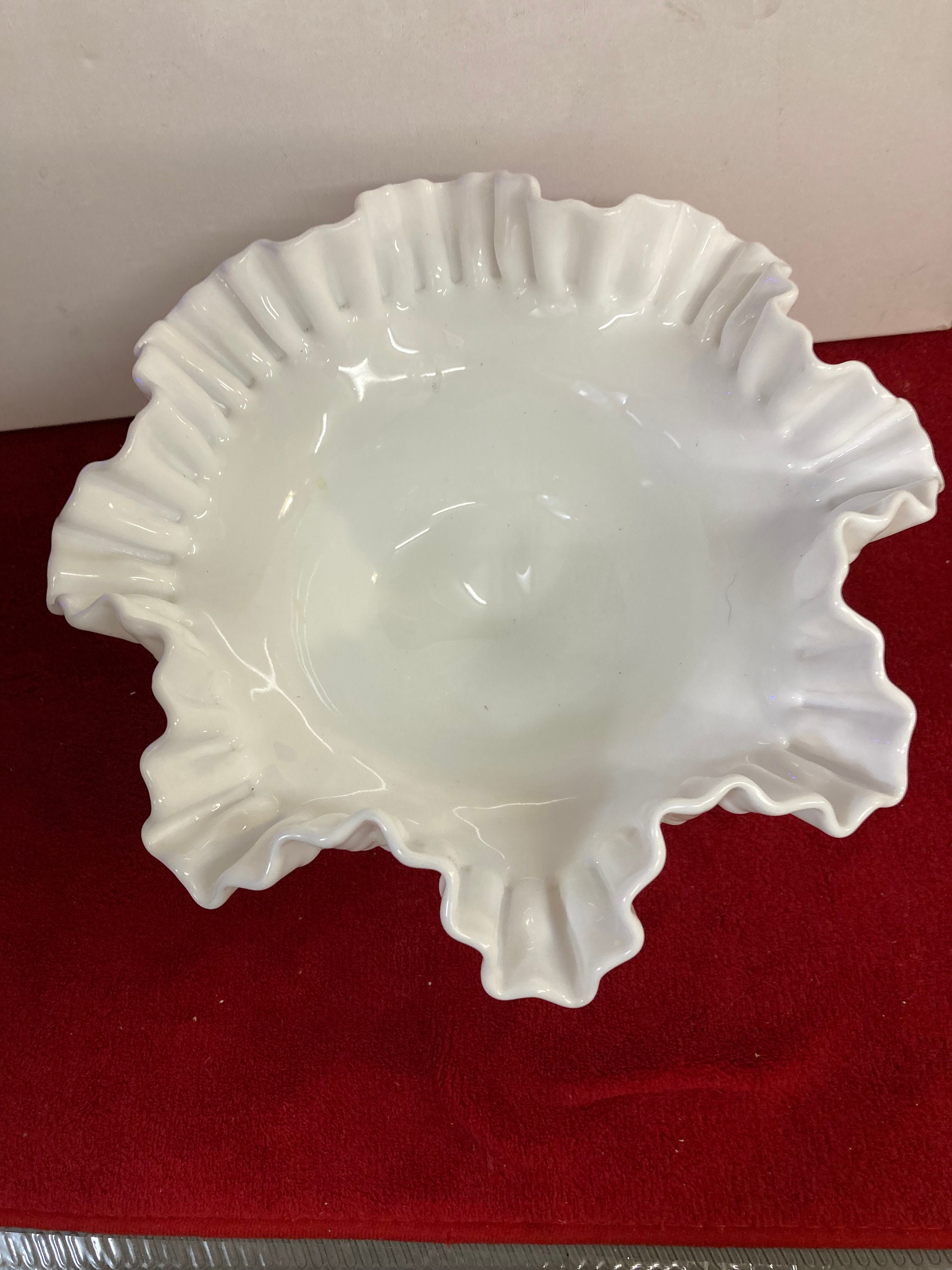TWO Vintage Fostoria Milk Glass Centerpiece Fruit Bowls