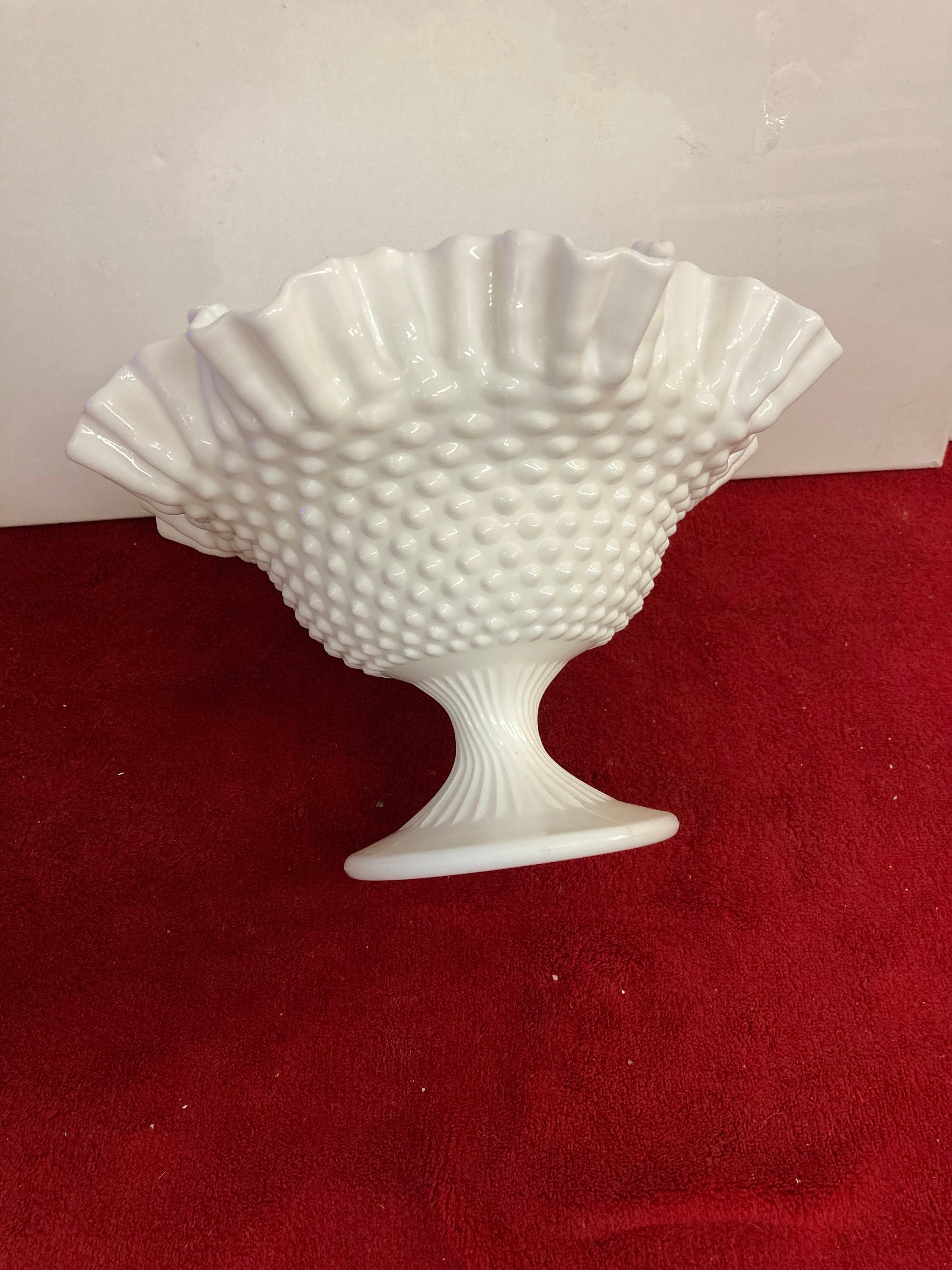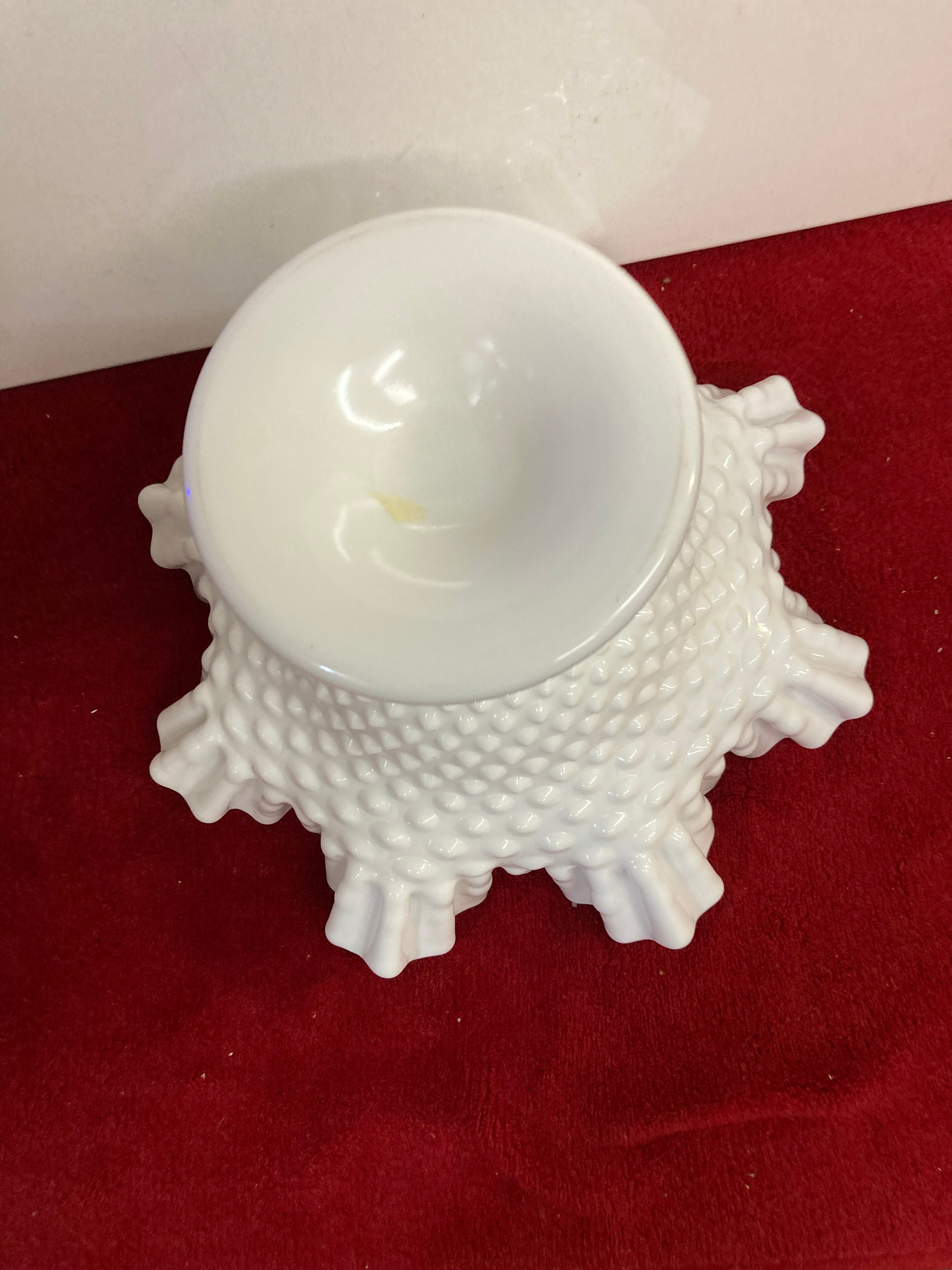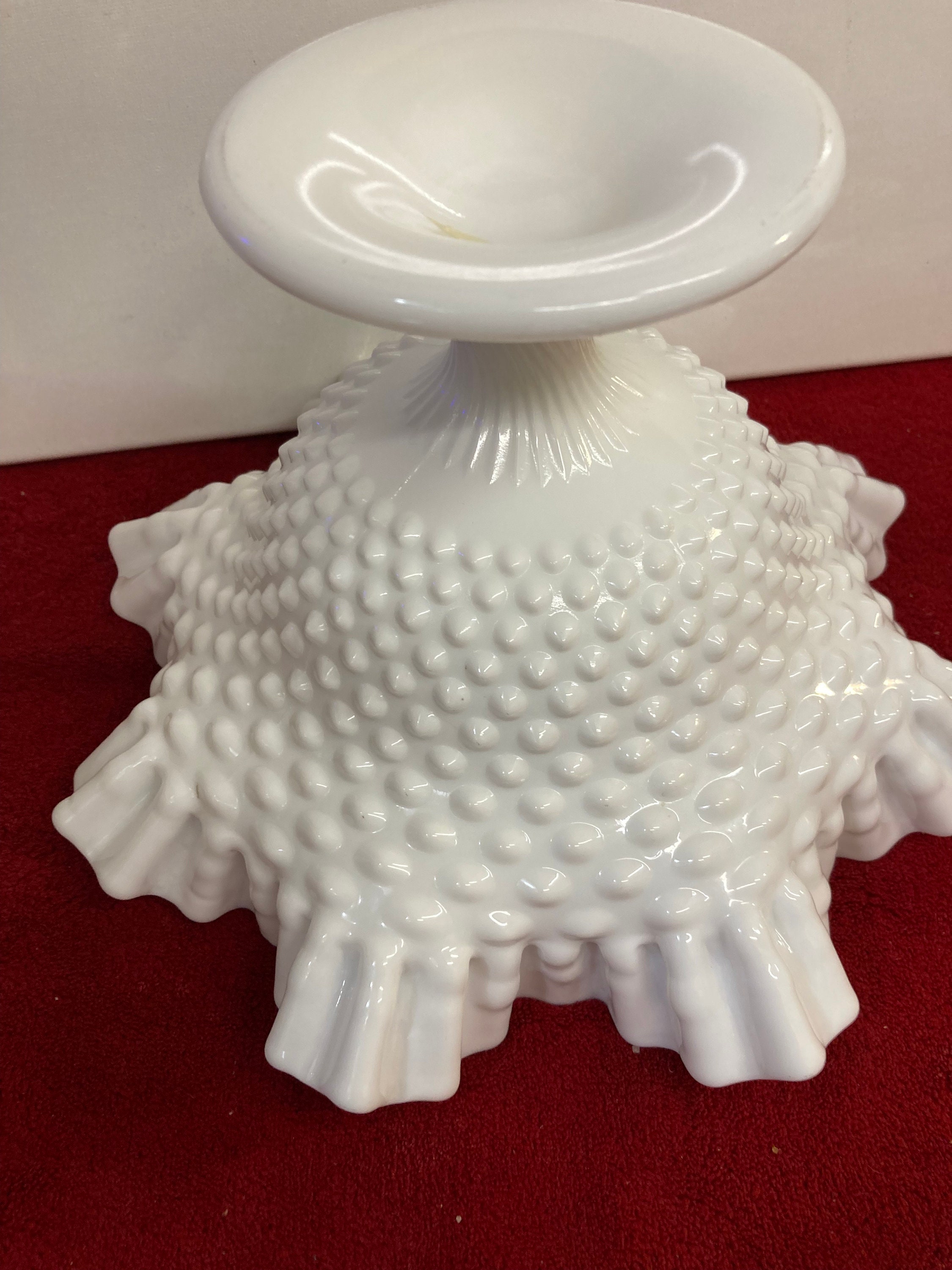 2) Vintage Milk Glass Hobnail Pattern Design Fruit Bowl With A Twisted Pedestal Base