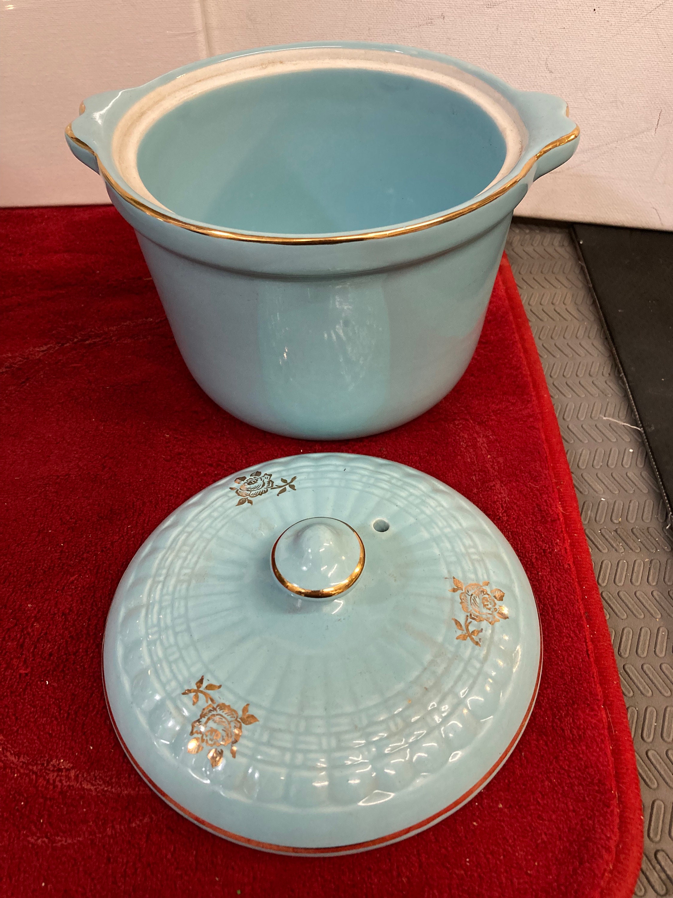 3 Ceramic containers for food with Lid in Beautiful Blue color wil floral motifs and gold trims