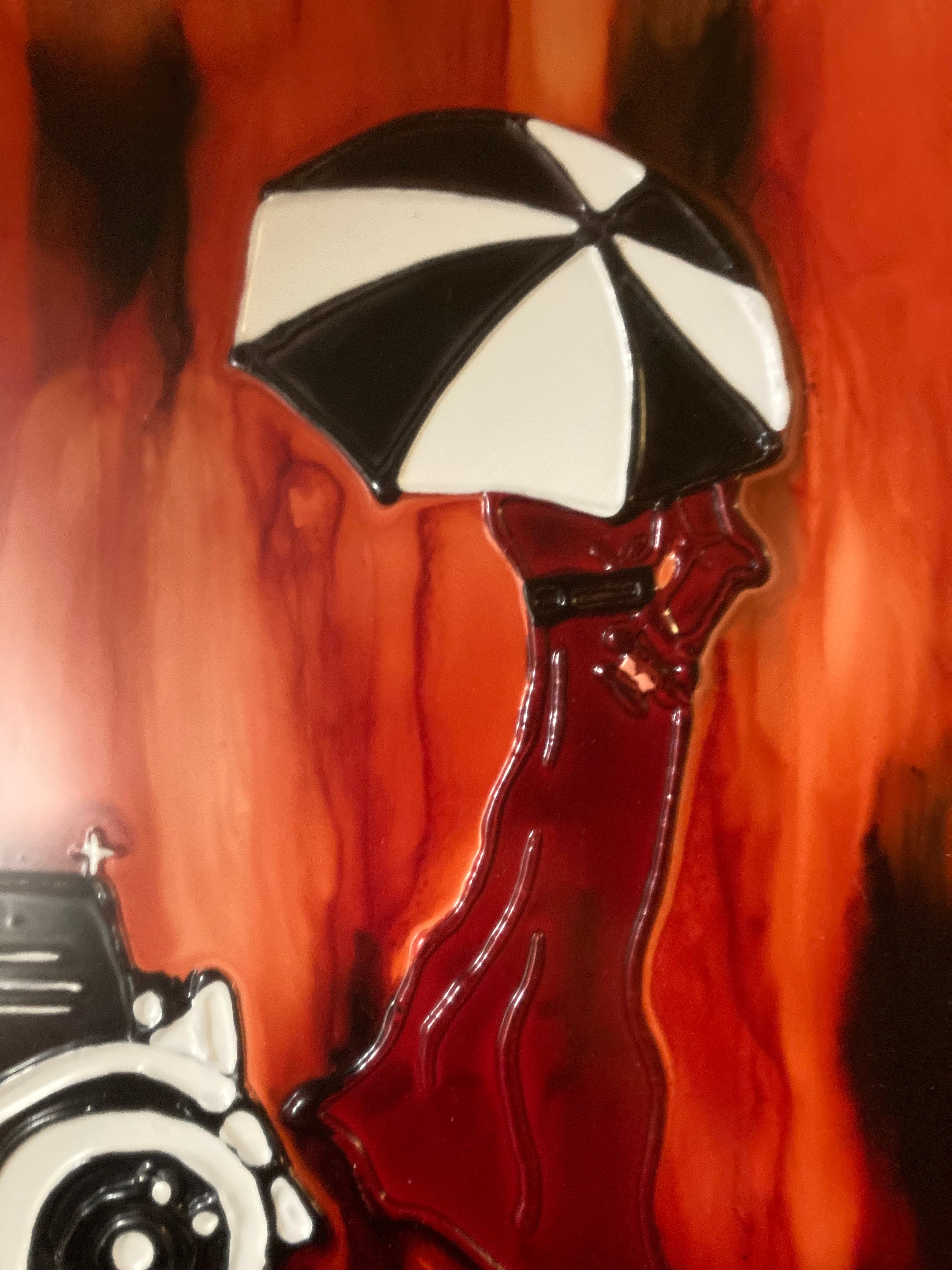 Classic Car & Lady With Umbrella- Original &Signed.Framed Art