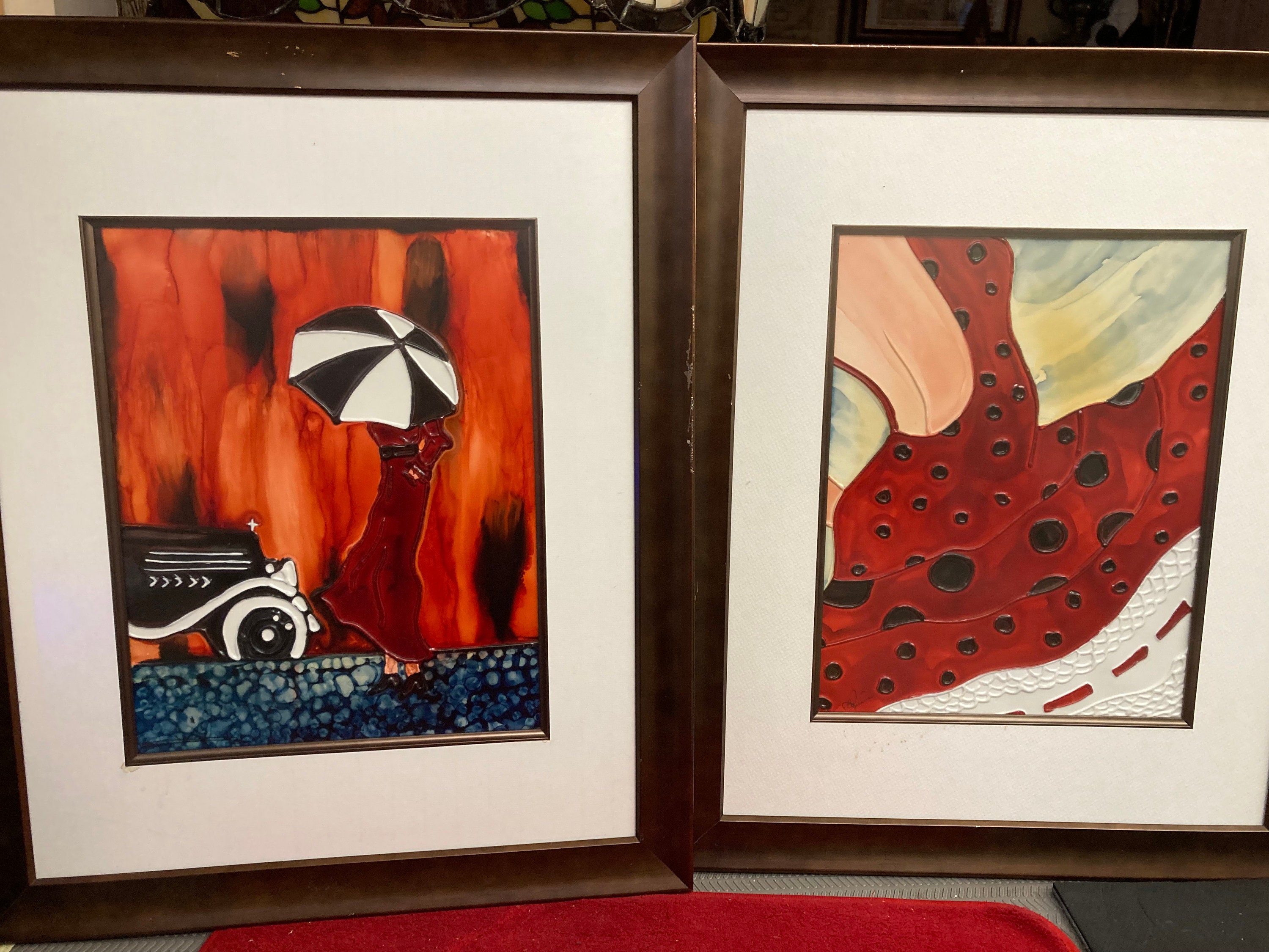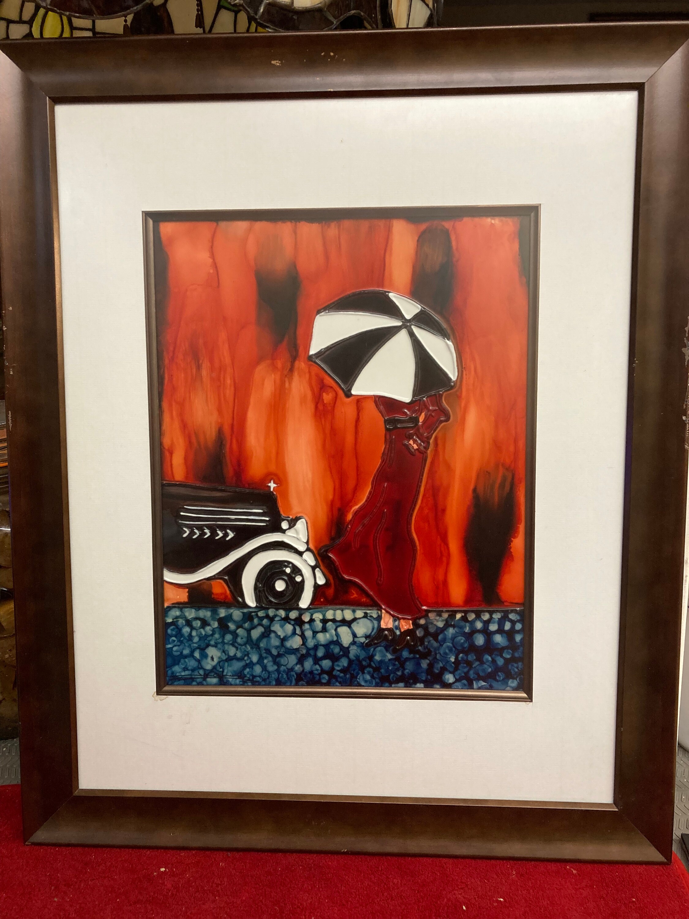 Dancing Red Dress- Original & Signed Matted Glass Framed ART