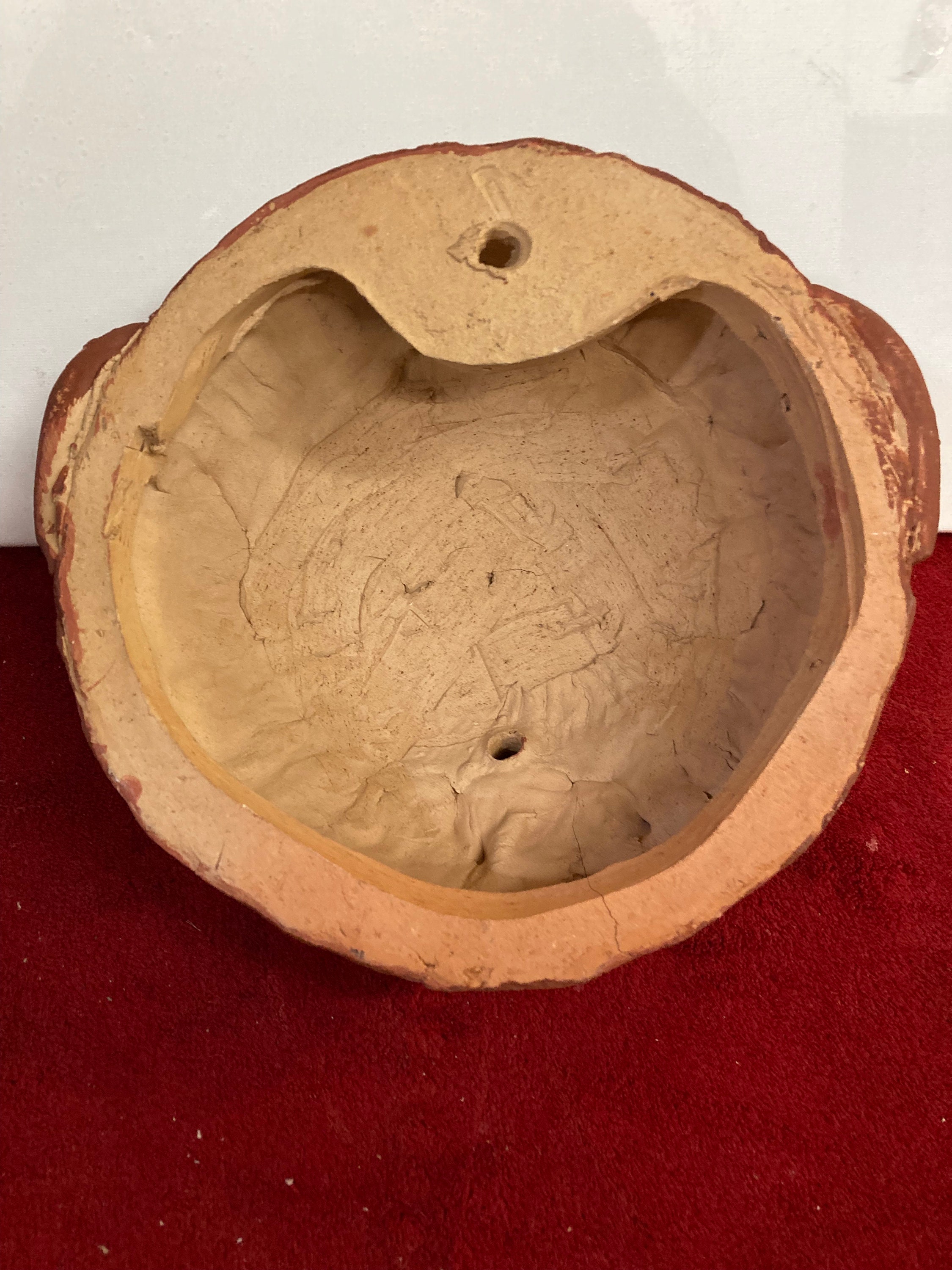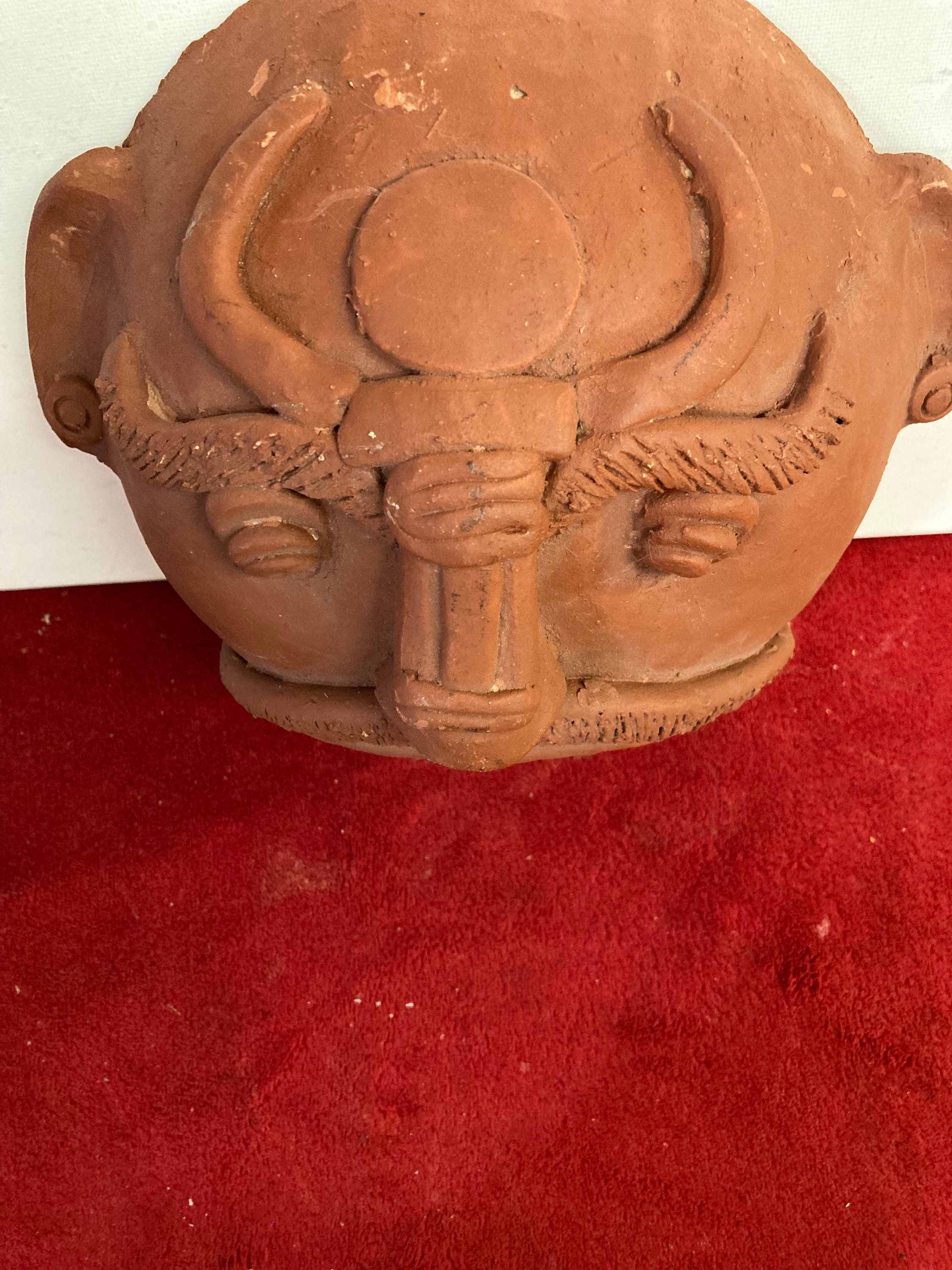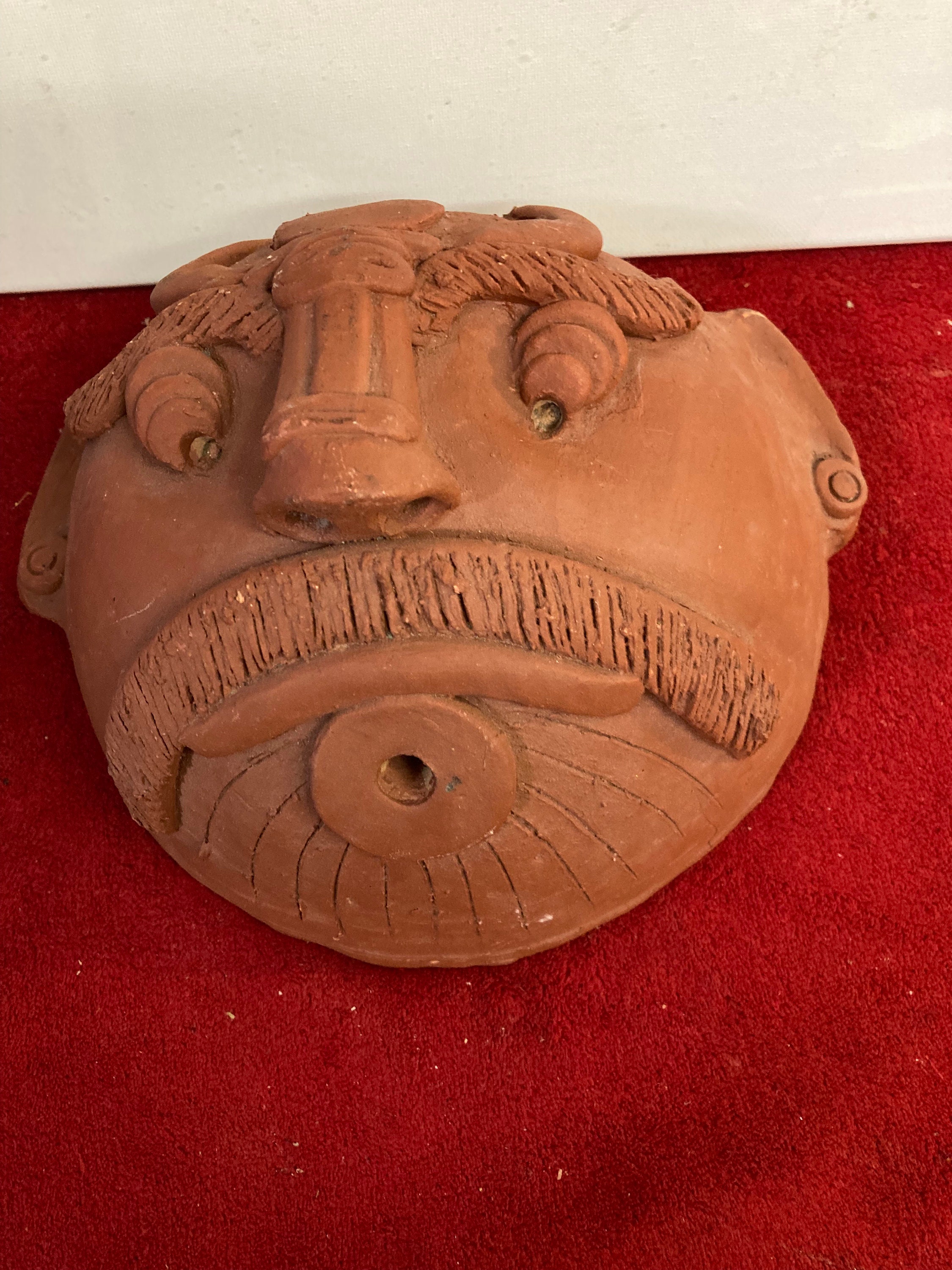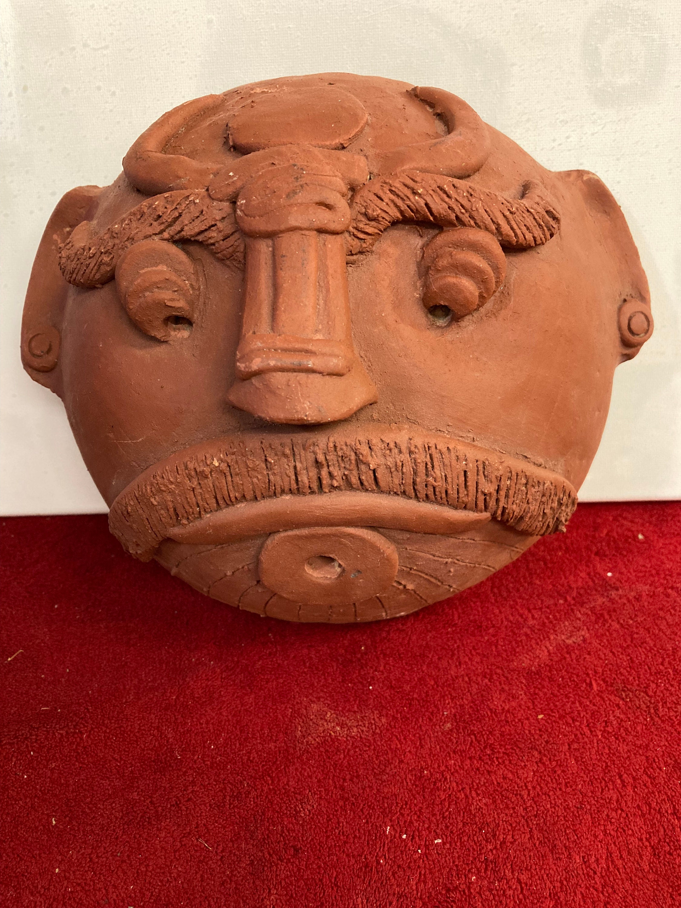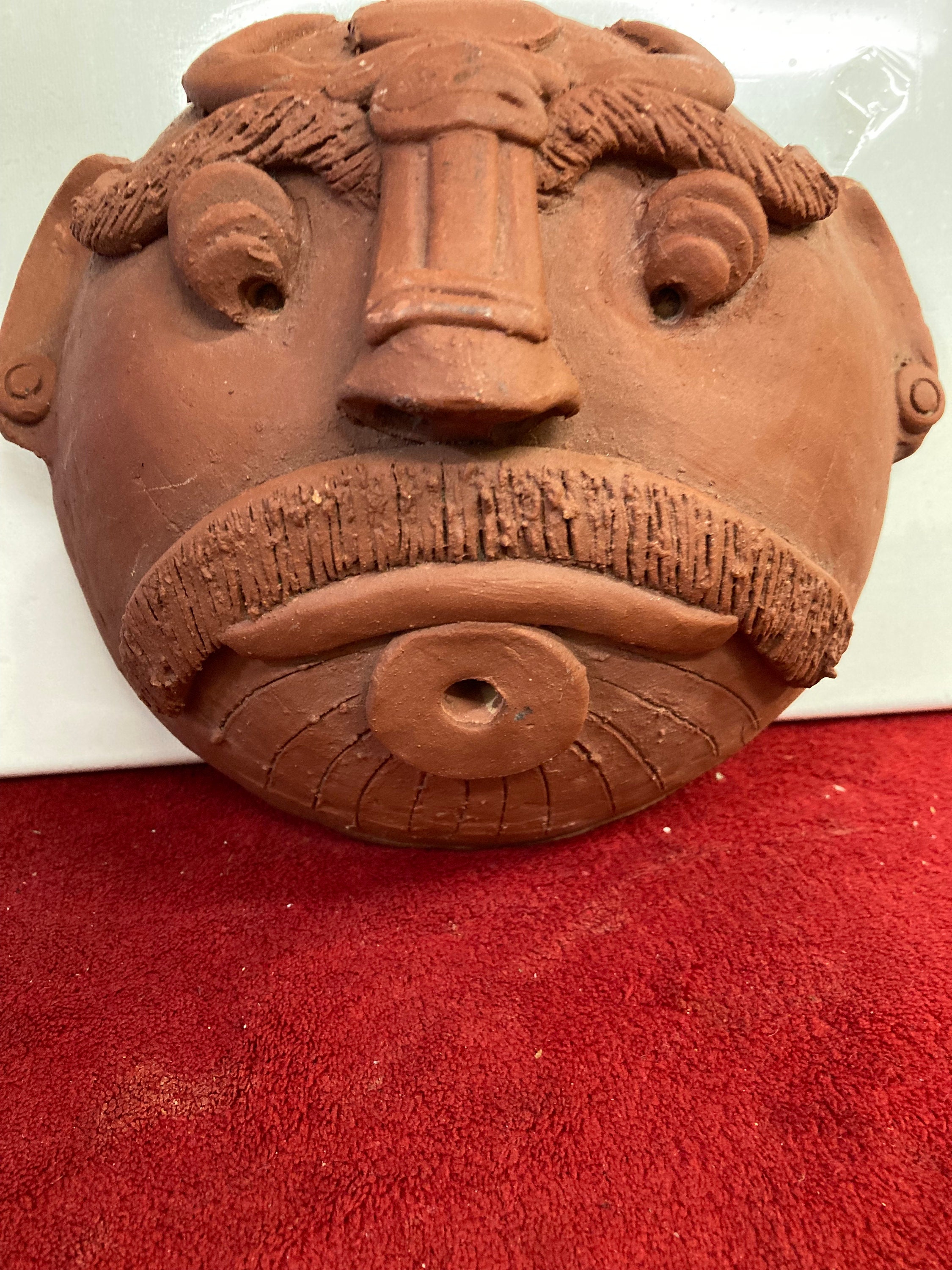 Ceramic clay head Terracota Mask. Masque south AmericaHandmade, Hand Crafted8" tall x 8.75" wide x 4.5" deepWeight: 2.5 lbs
