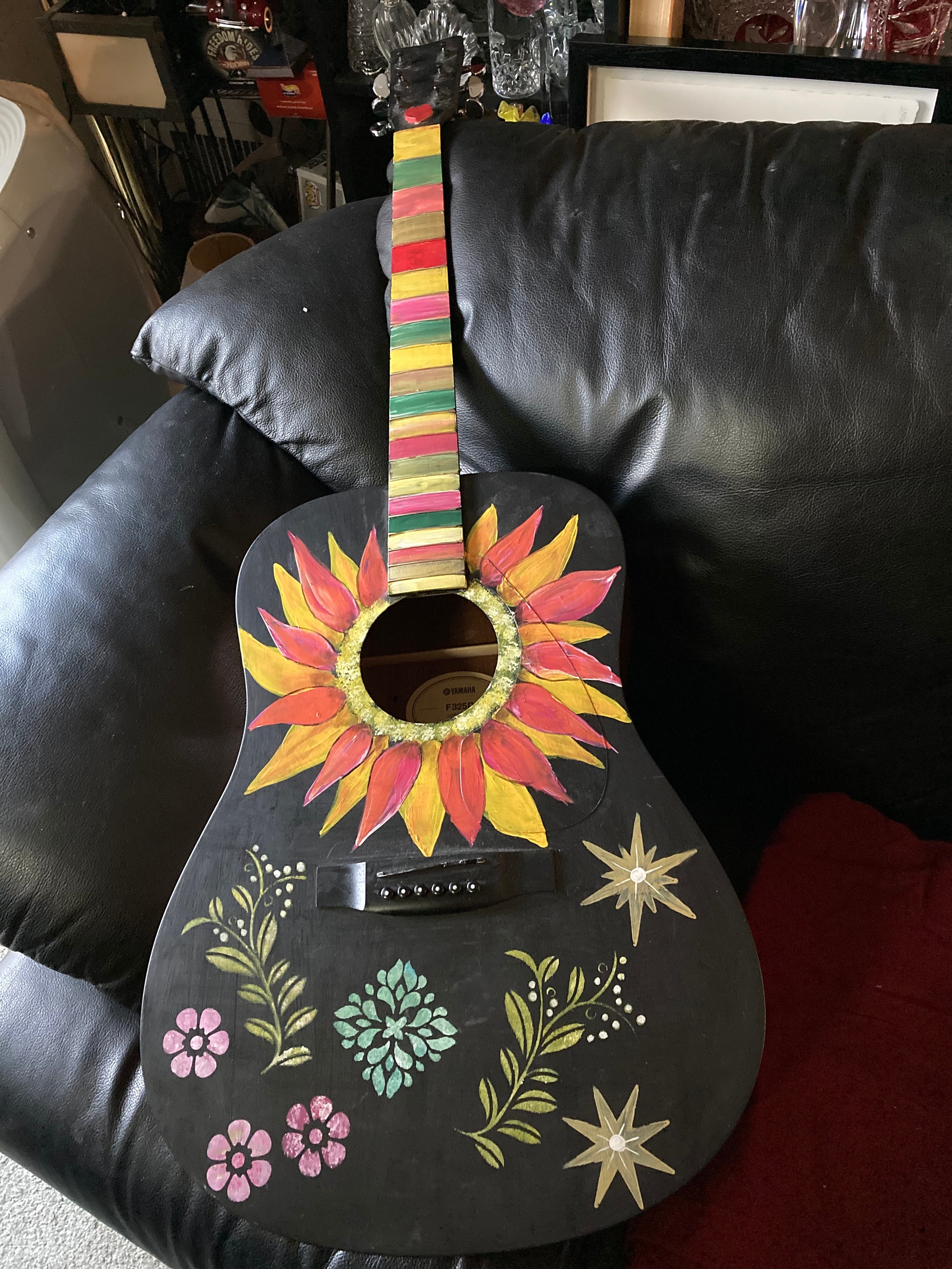 Custom hand-painted Guitar. Rainbow / SunFlower / Star