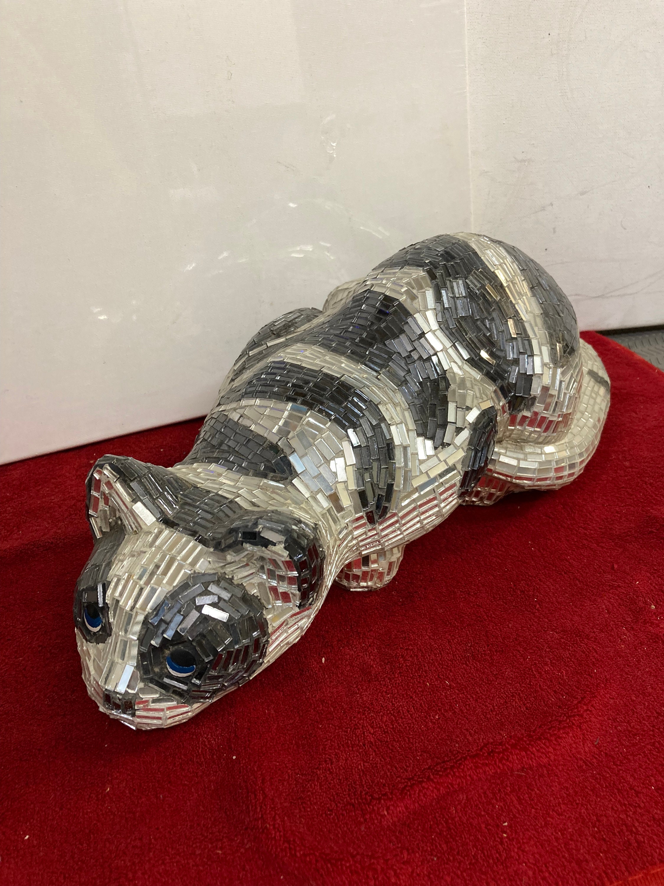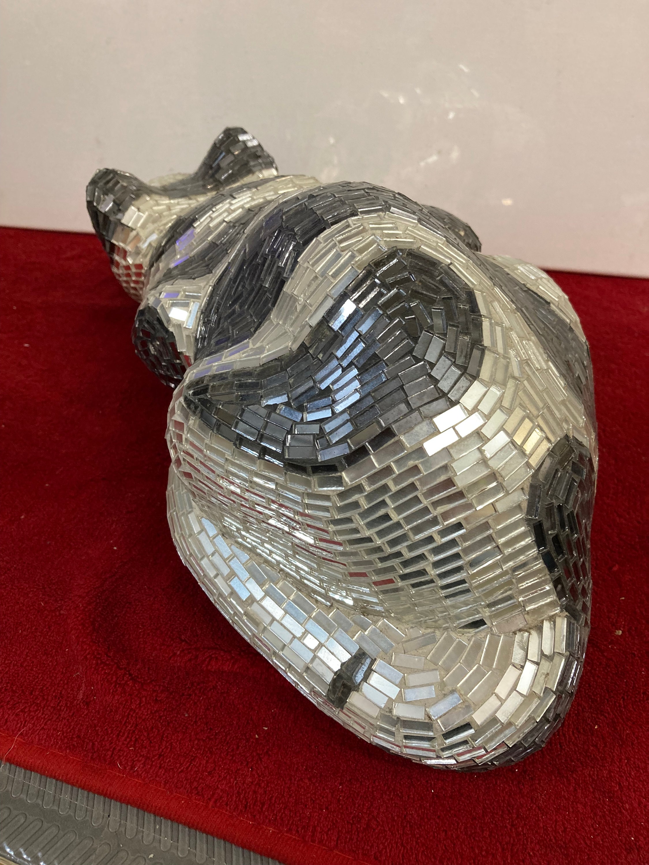 Mirror Mosaic Cat Sculpture , ceramic cat, mosaic cat