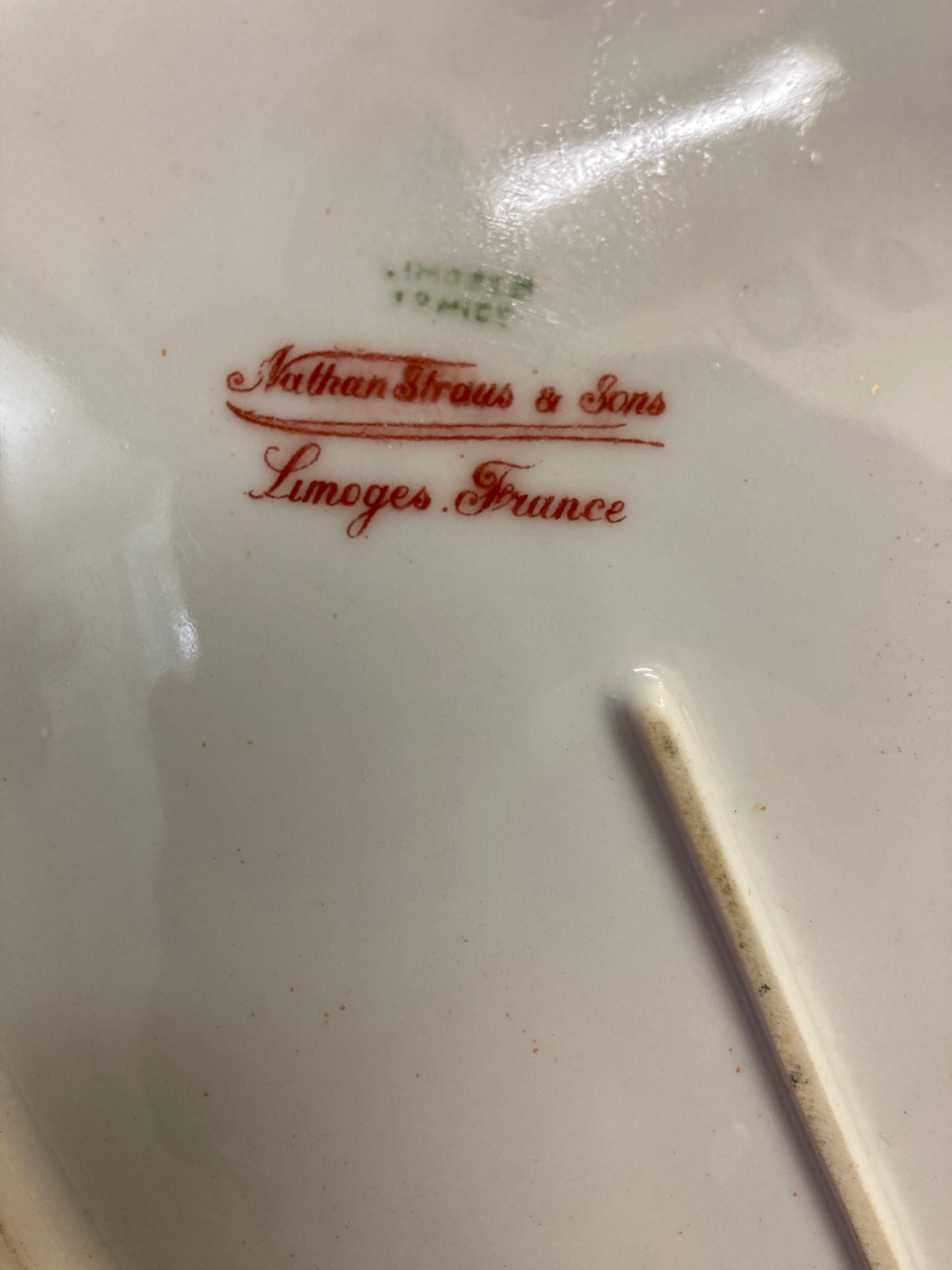 Each stamped "Nathan Straus & Son Limoges France " & Additional stamp stamps "Limoges France".
