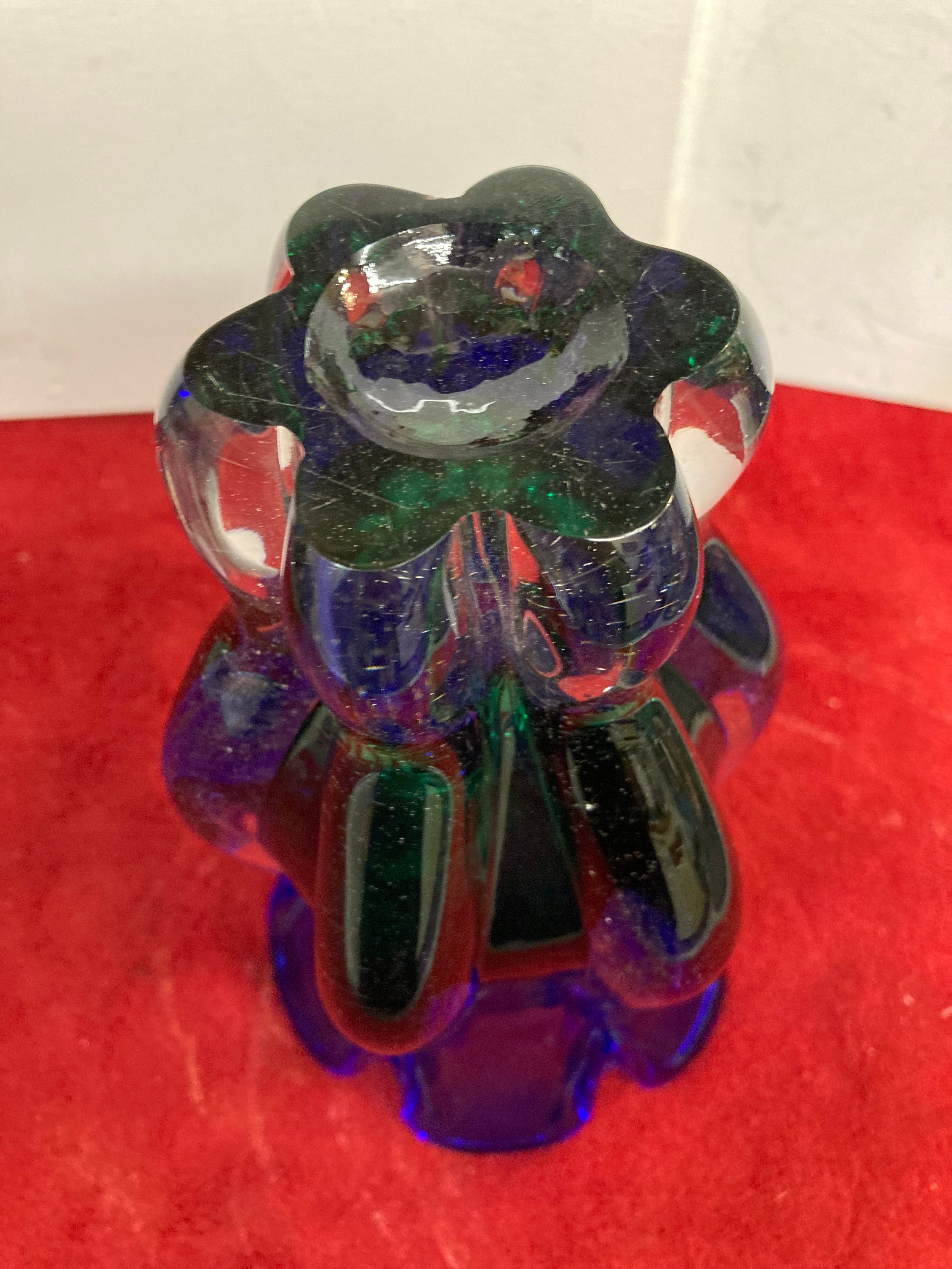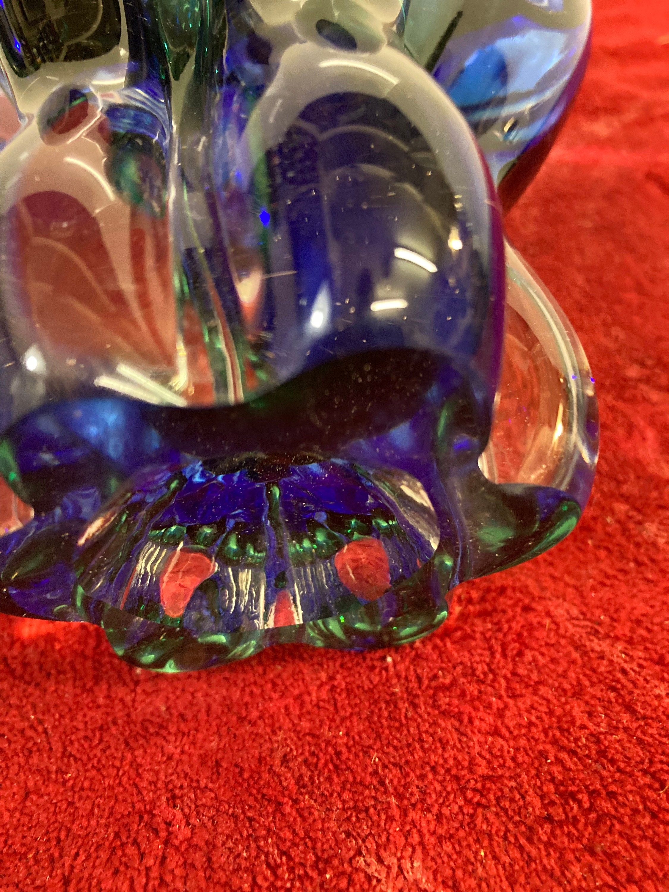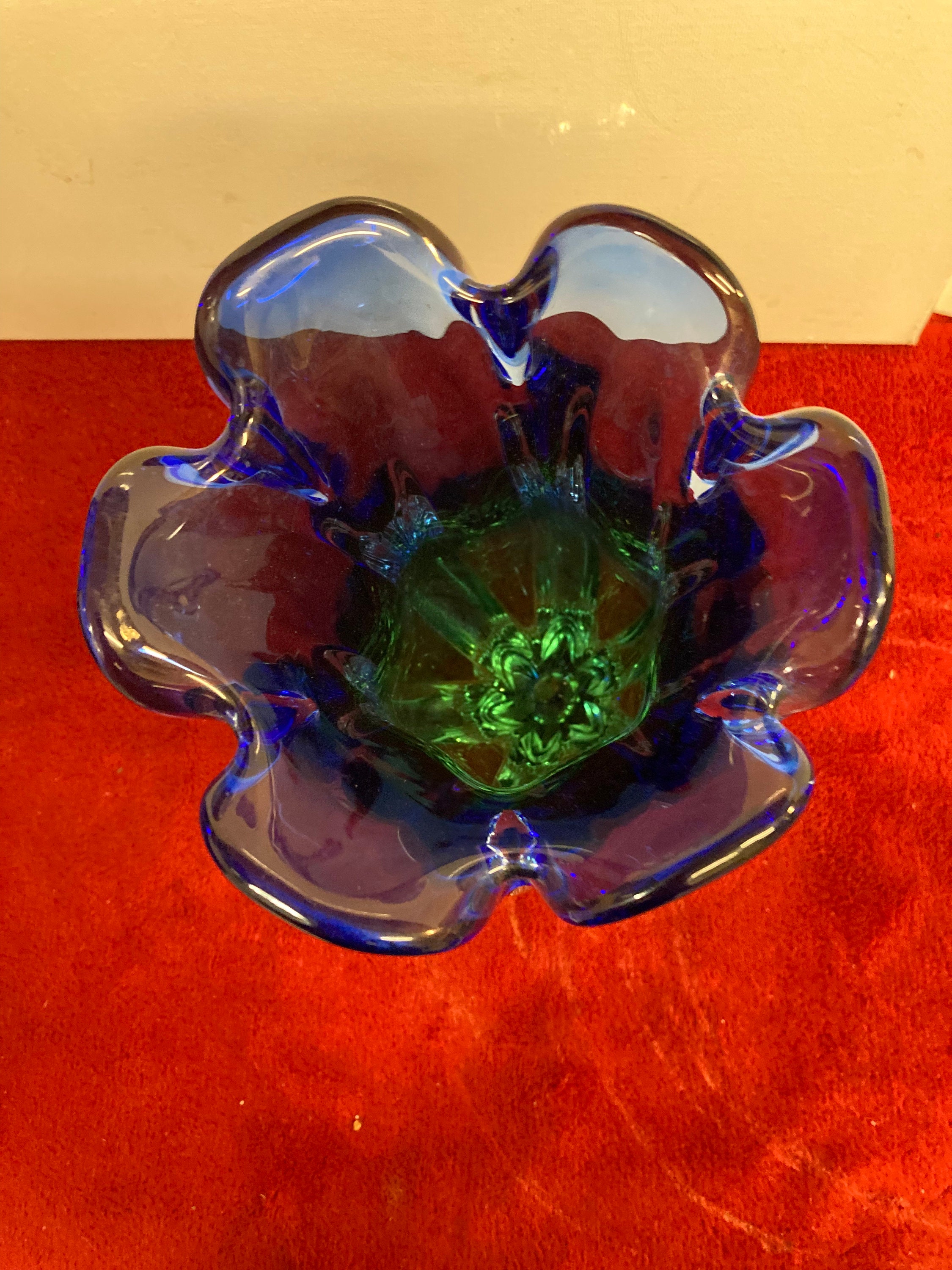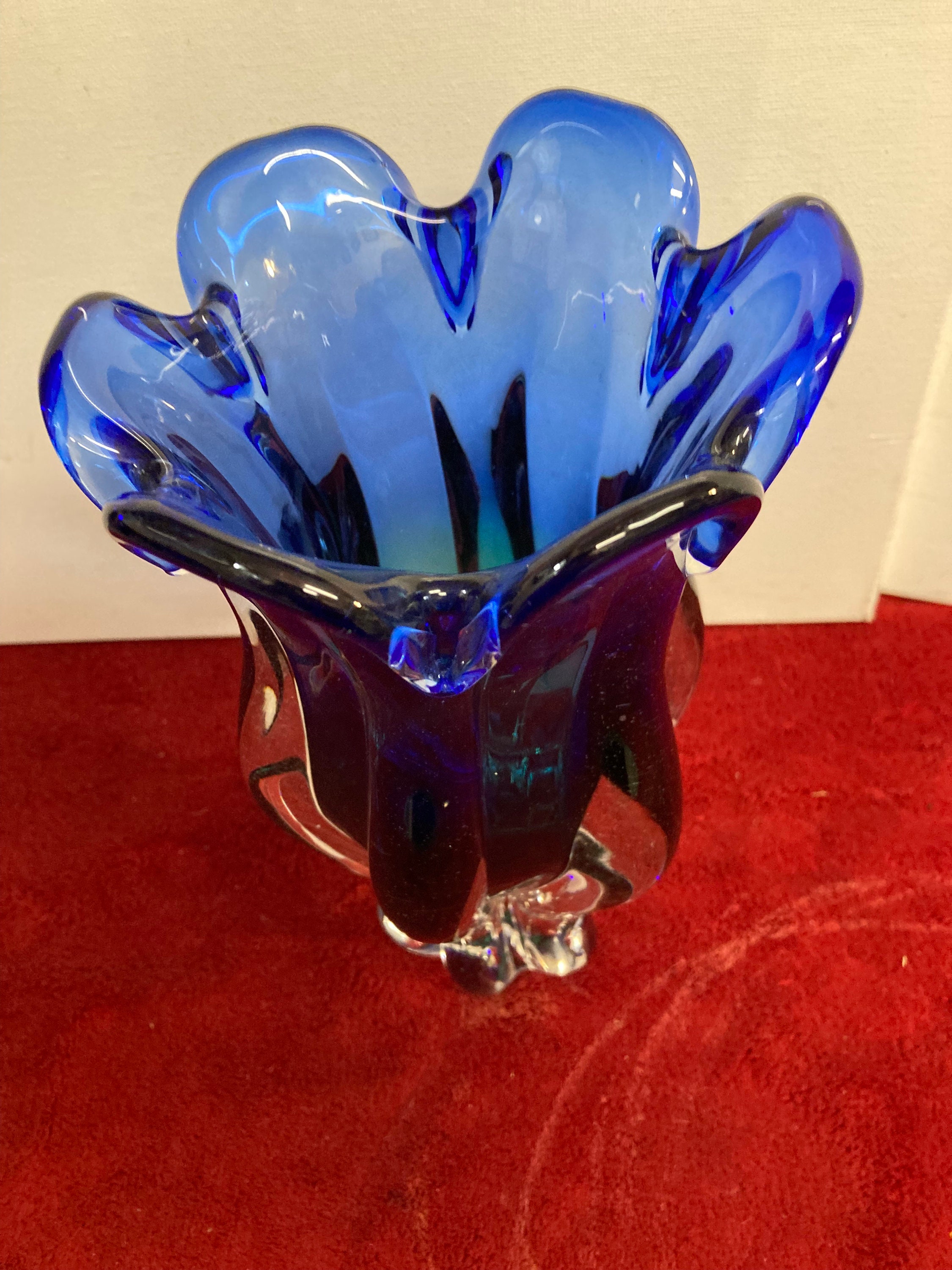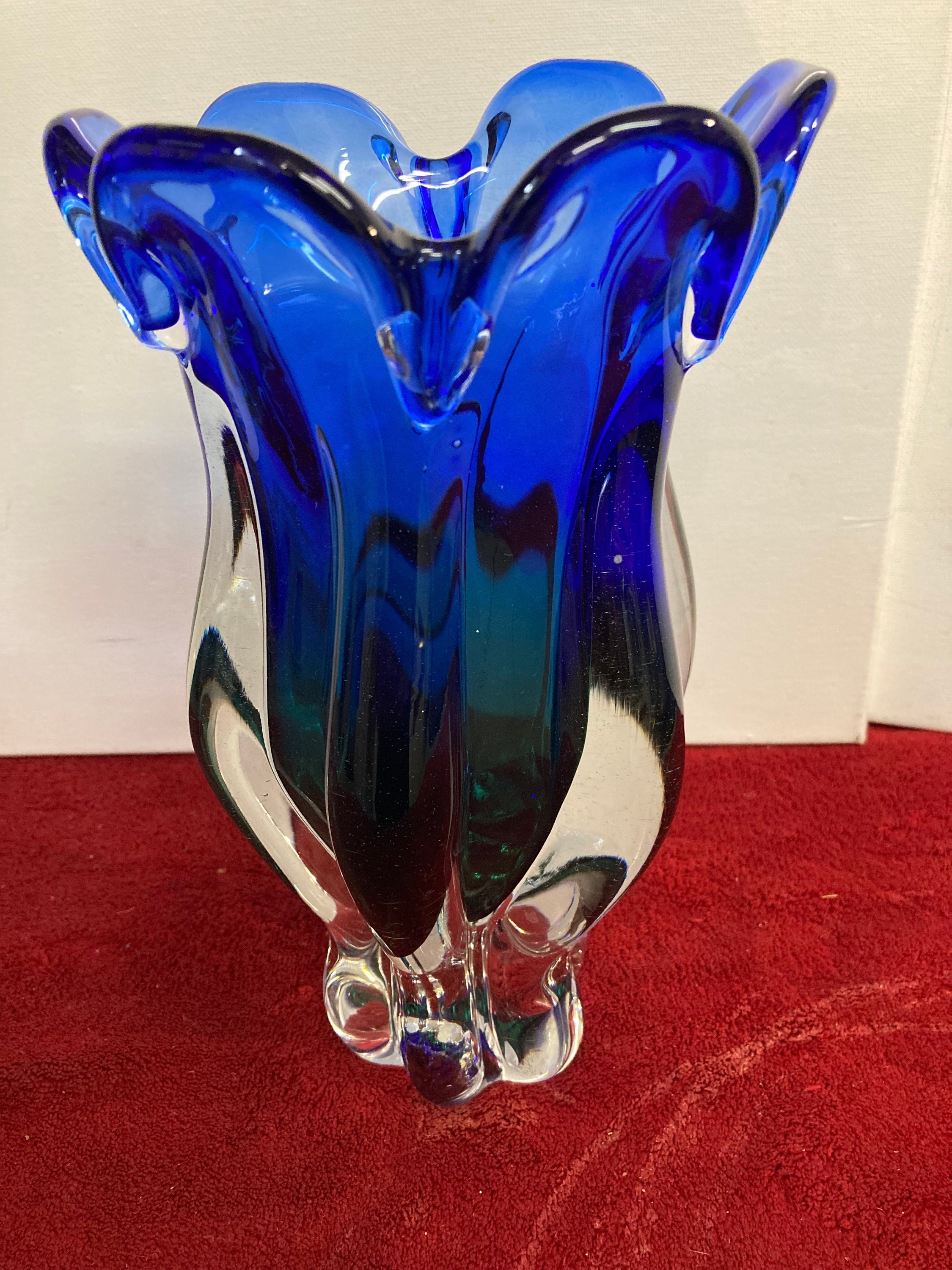 Mid century modern italian art glass vase 9 1/2 " Heavy Clear and Cobalt Blue Stretch.