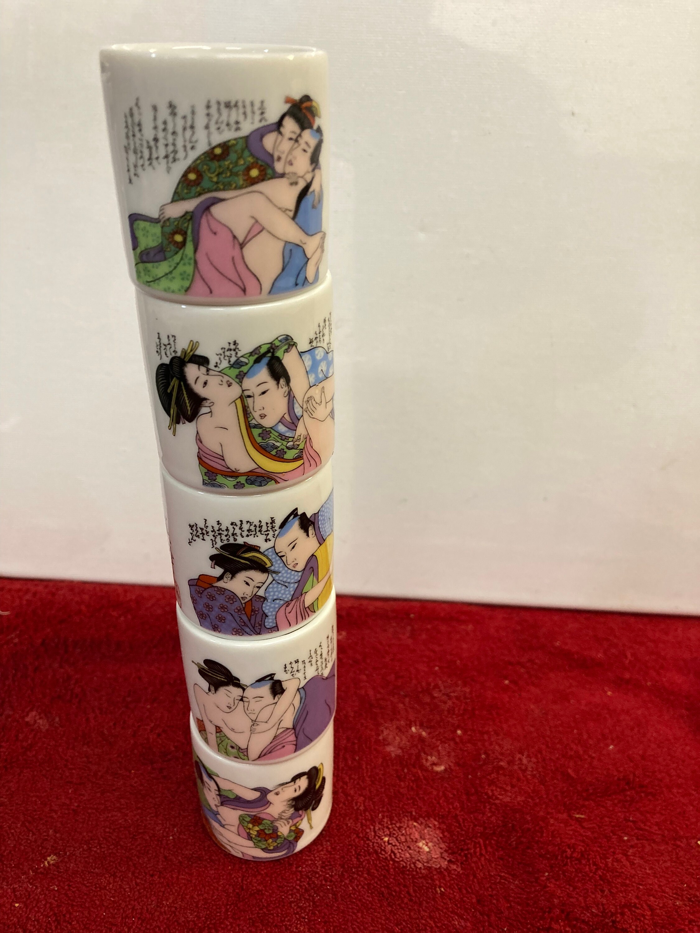Thes sake cups were manufactured and sold in Kyoto, They were made in the mid to late nineties making them sort of, kinda, almost vintage.