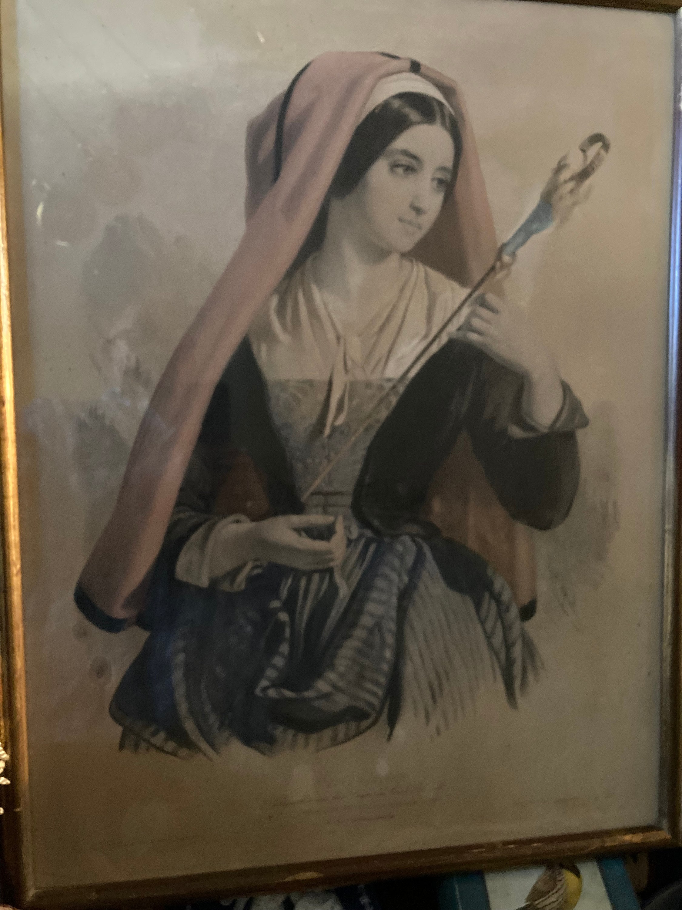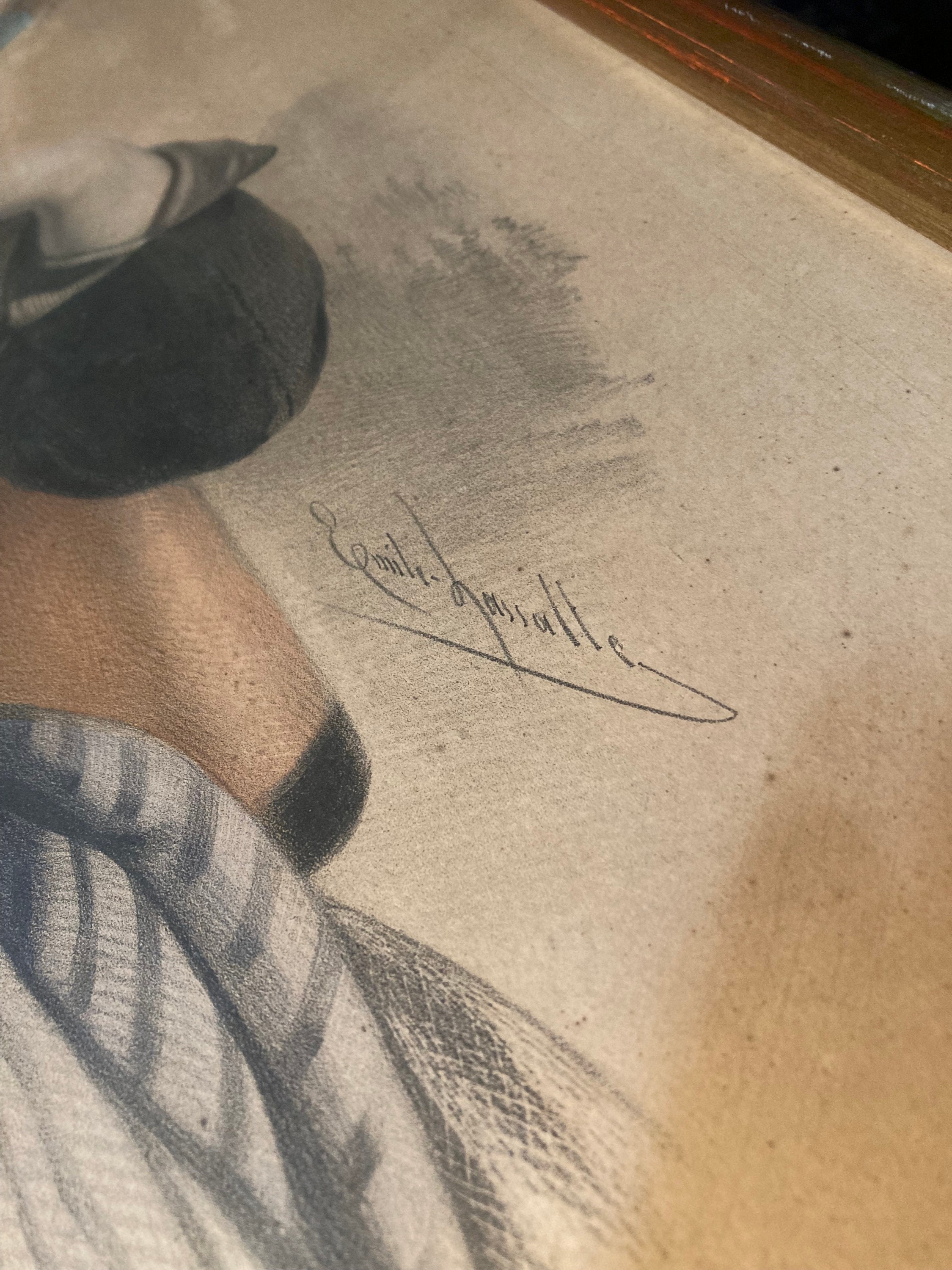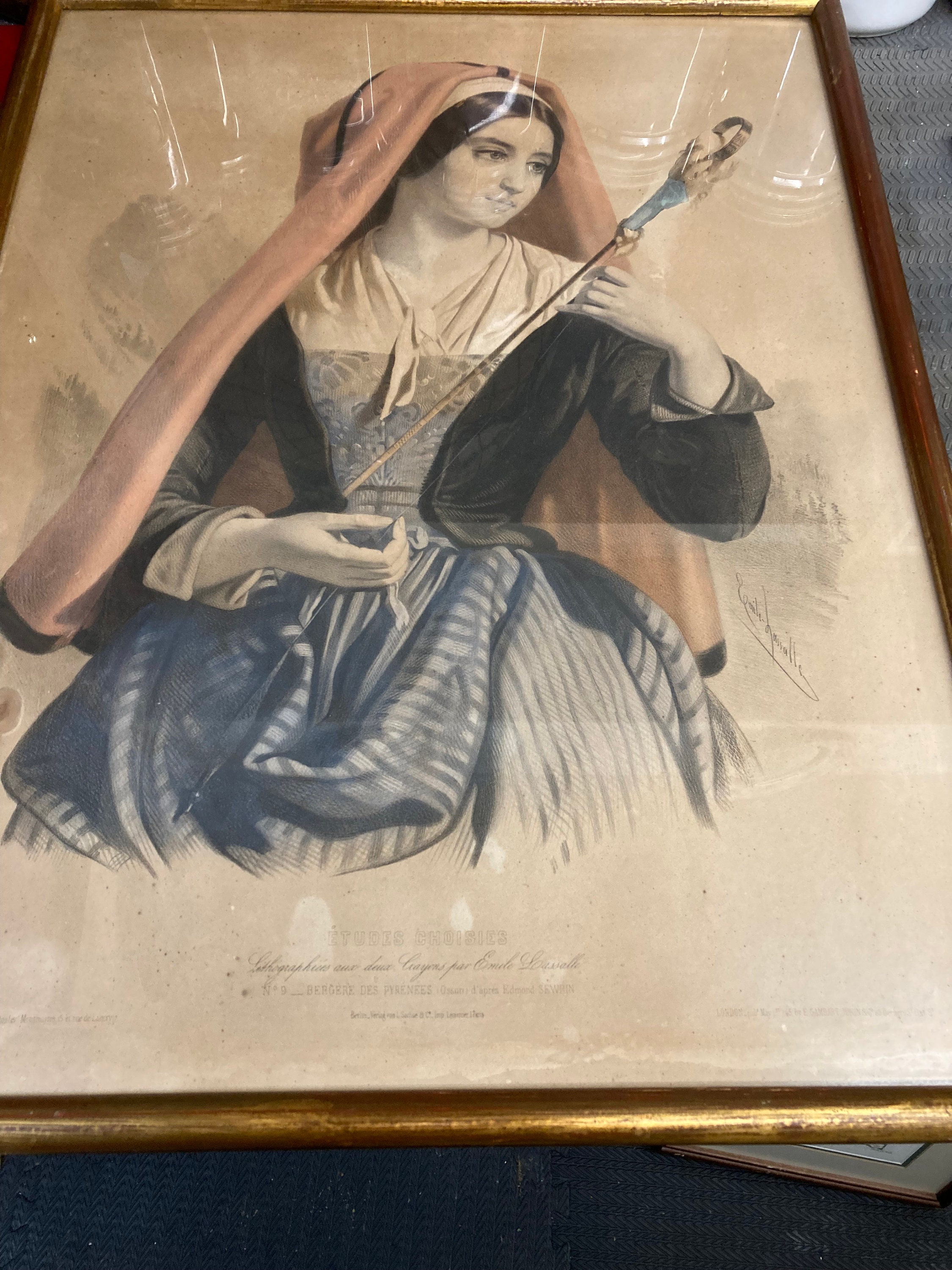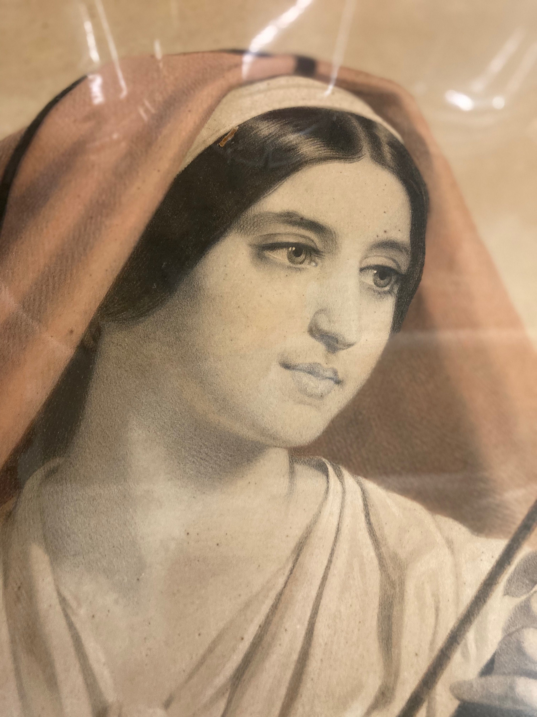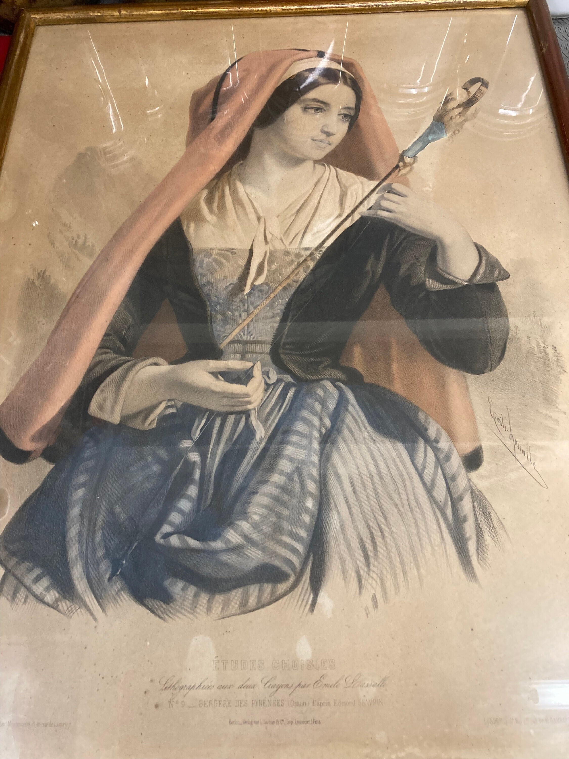 Antique Watercolored Lithographie Victorian Portrait of a woman by Emile Lassalle.