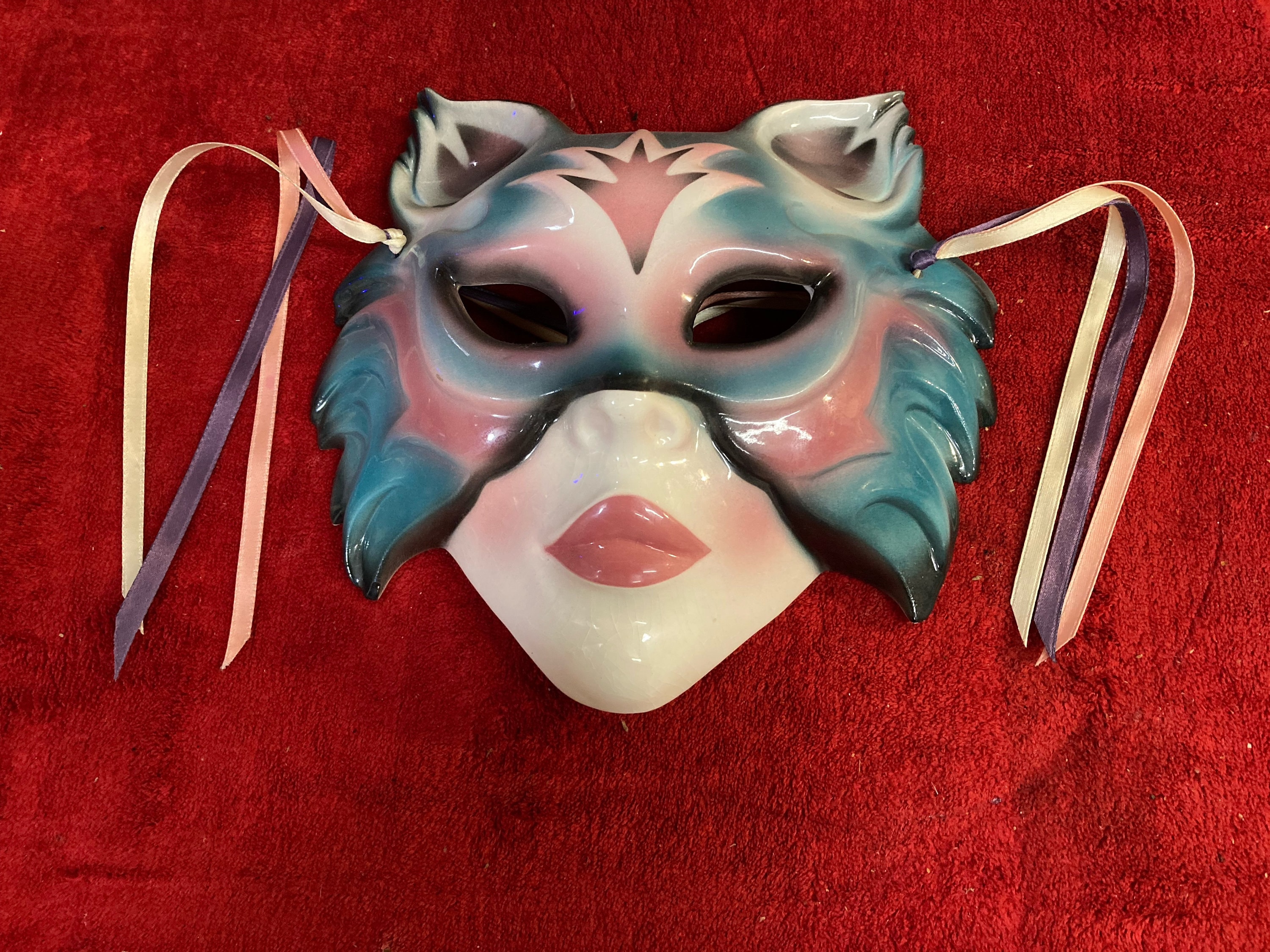 Vintage Ceramic Cat Mask Wall Hanging About Face Clay Art San Francisco8.5" wide x 8 " tall x 3 " deepin perfect conditionNo damage , chips or cracks
