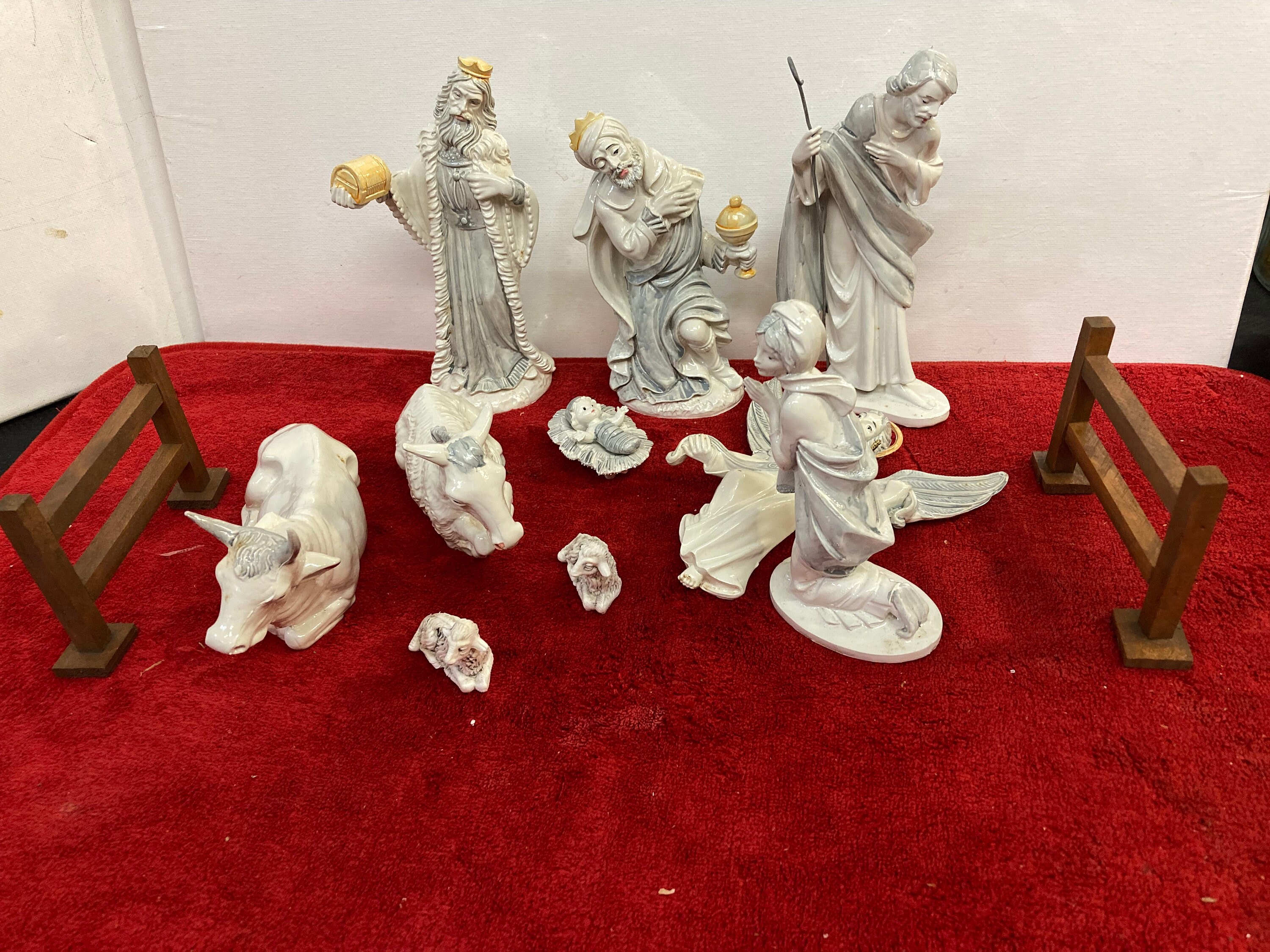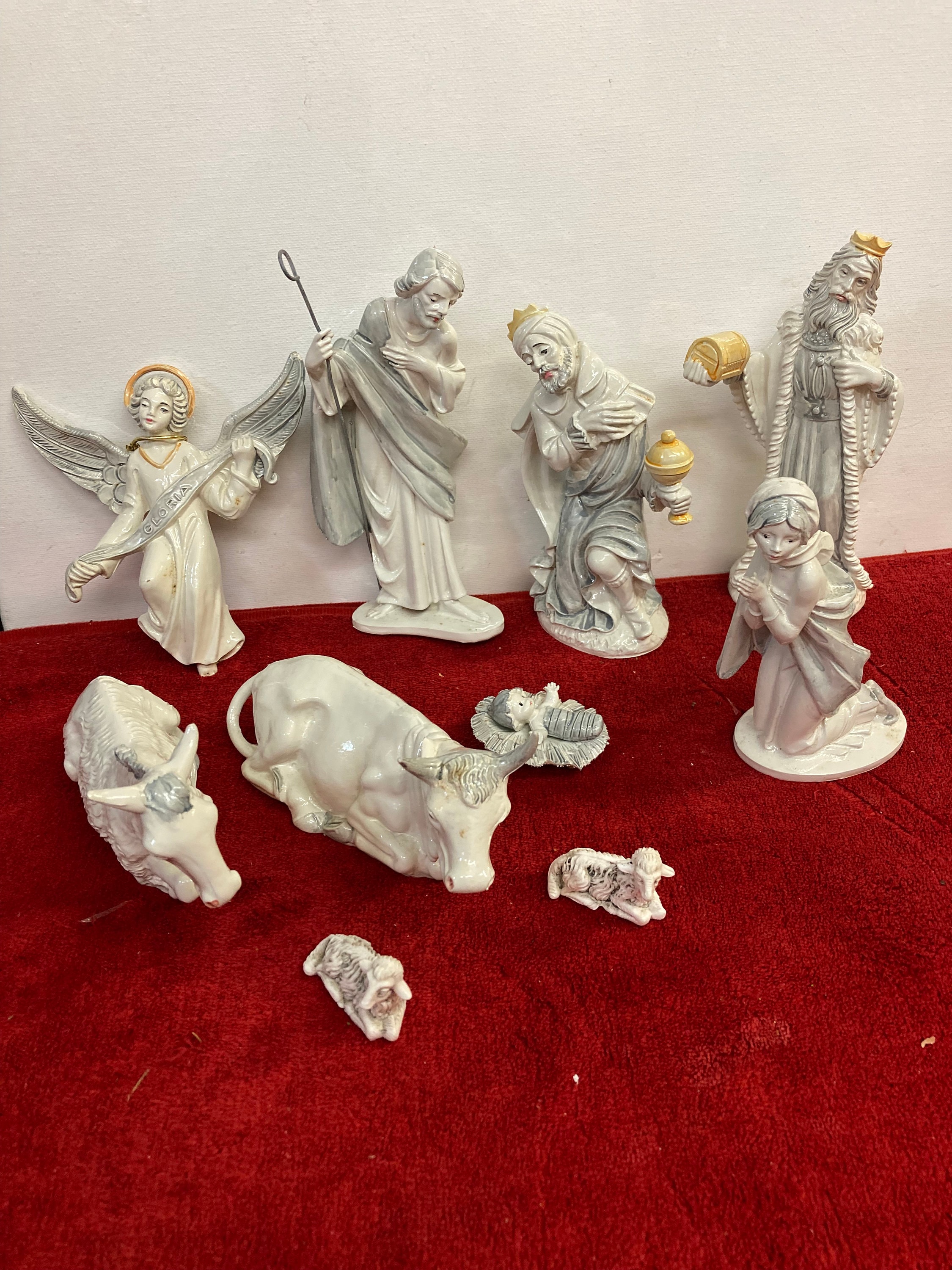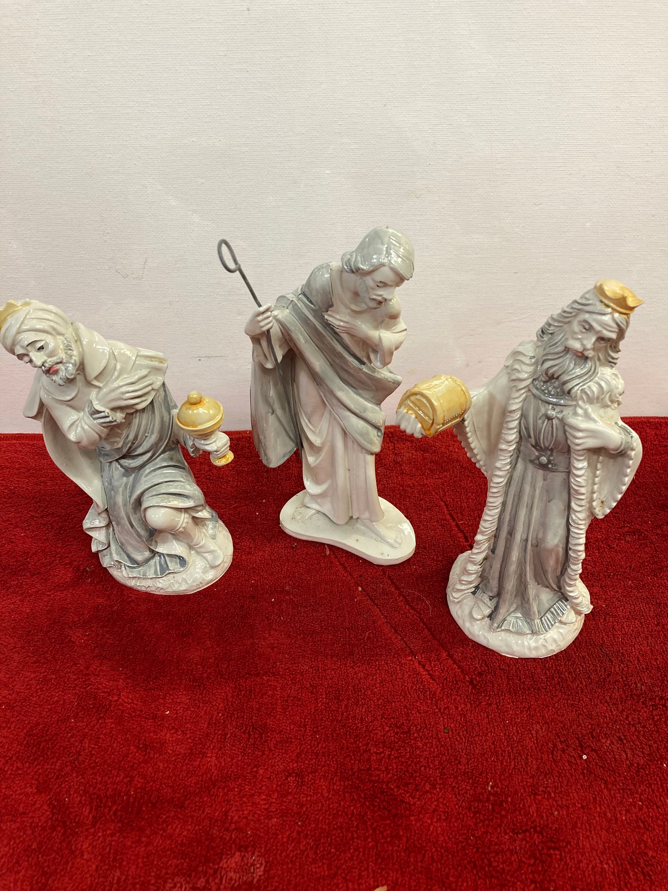 Vintage Rare 10 Pcs Porcelain Nativity ,3 wise men1 Angel1 Mother Mery1 Baby Jesus (2 pcs)2 Cows. 2 SheepsAll are in Excellent ConditionMade In ITALY