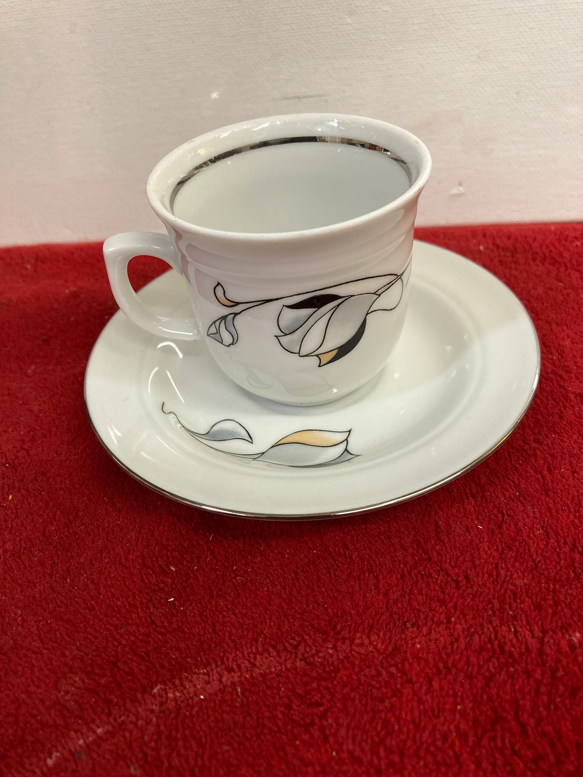 JLMENAU Graf Von Henneberg Vintage Porcelain 17 Piece Tea/Espresso/Chocolate Set 1777 White /Pink & Black