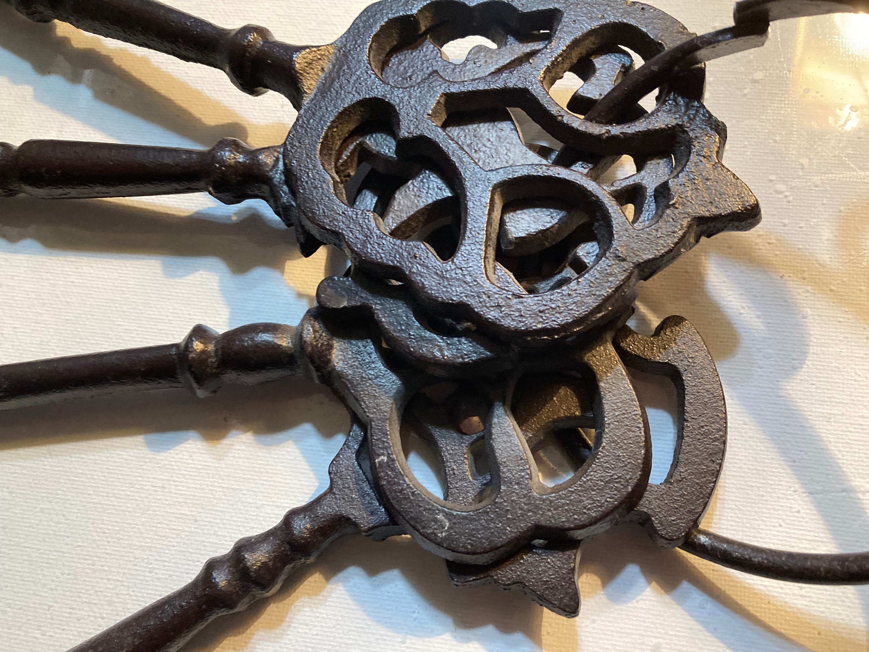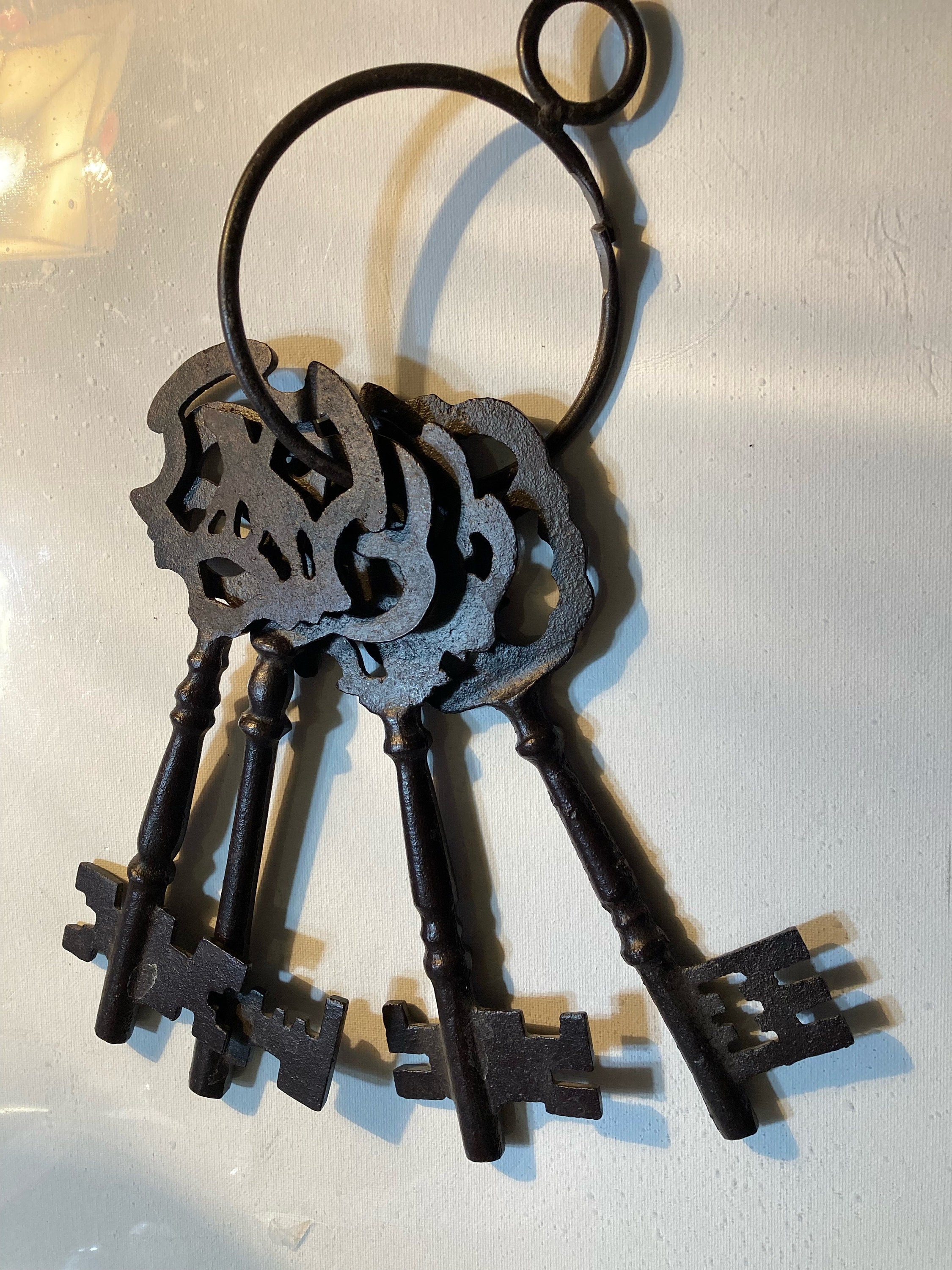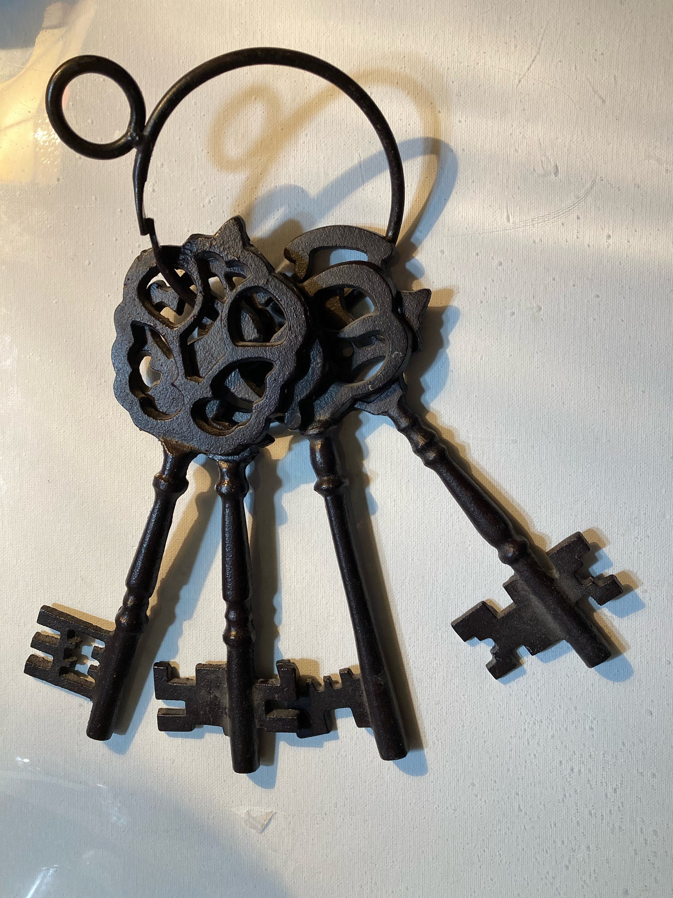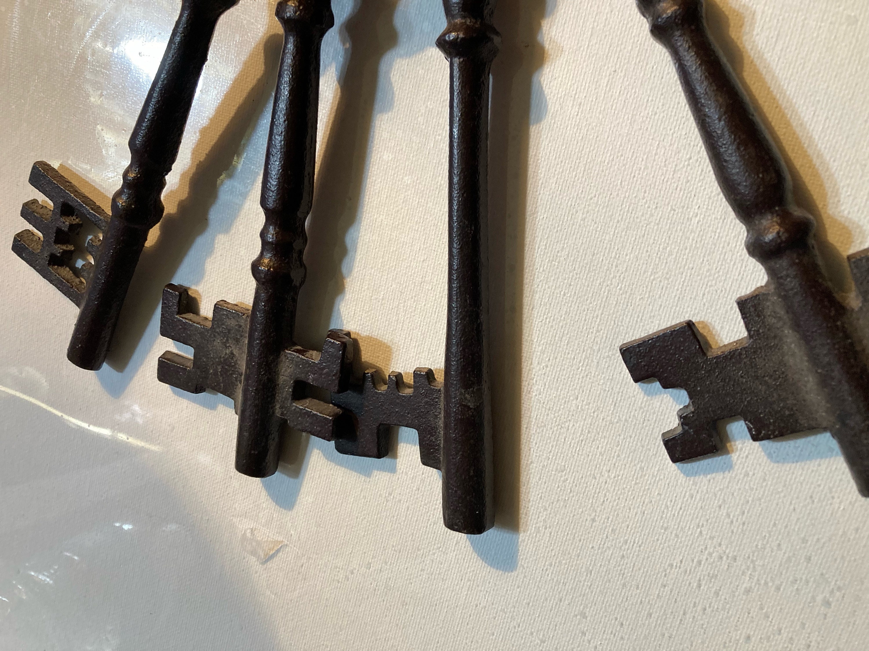 Four Large Metal Keys In A Loop To HangEach Key is approximatley 3 " wide and 10 " longAll are in good condition with no damages