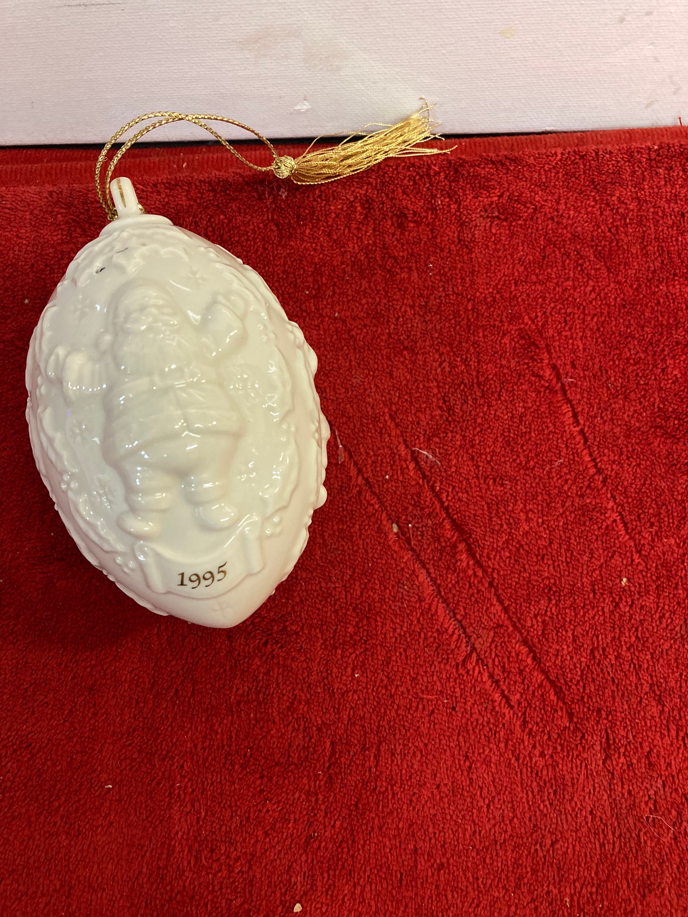 1995: Decorated with Santa Claus Hanging ornament 4.5 " tall and 3" in Diameter