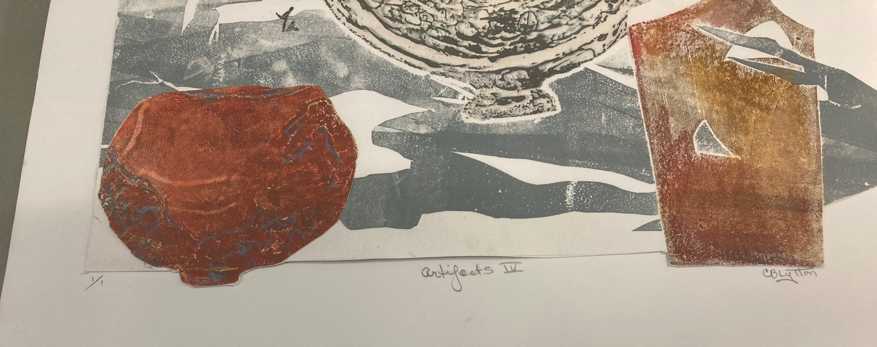 C.B.Claytton Signed and Numbered Artifacts IV PrintSigned: C.B.ClaytonSubject :Artifacts IVNumnber 1 / 1Framed Size:34.5" tall x 26.5' WIDE x 1" deepPrint Size: 25" tall x 16 1/4 " wide