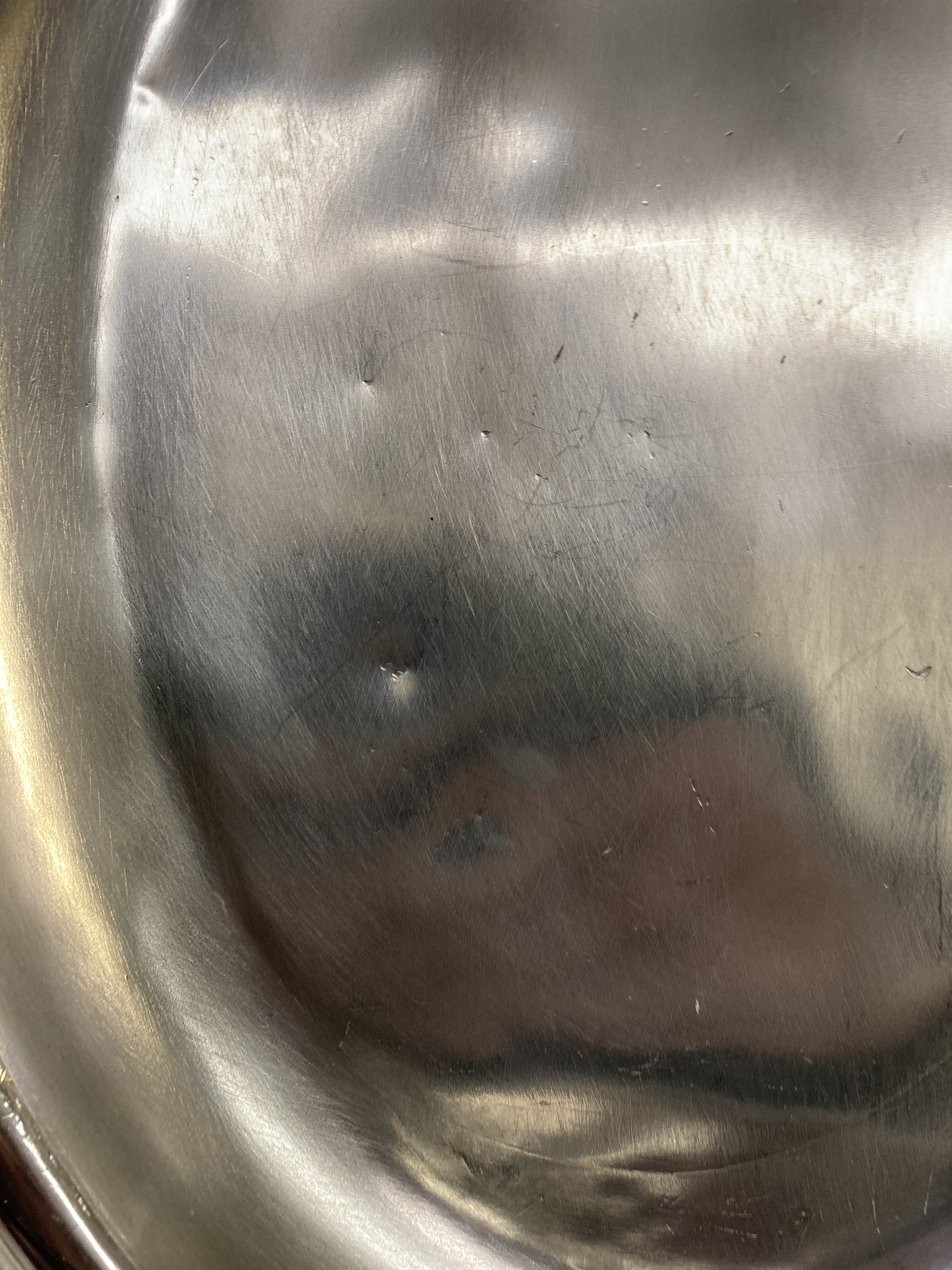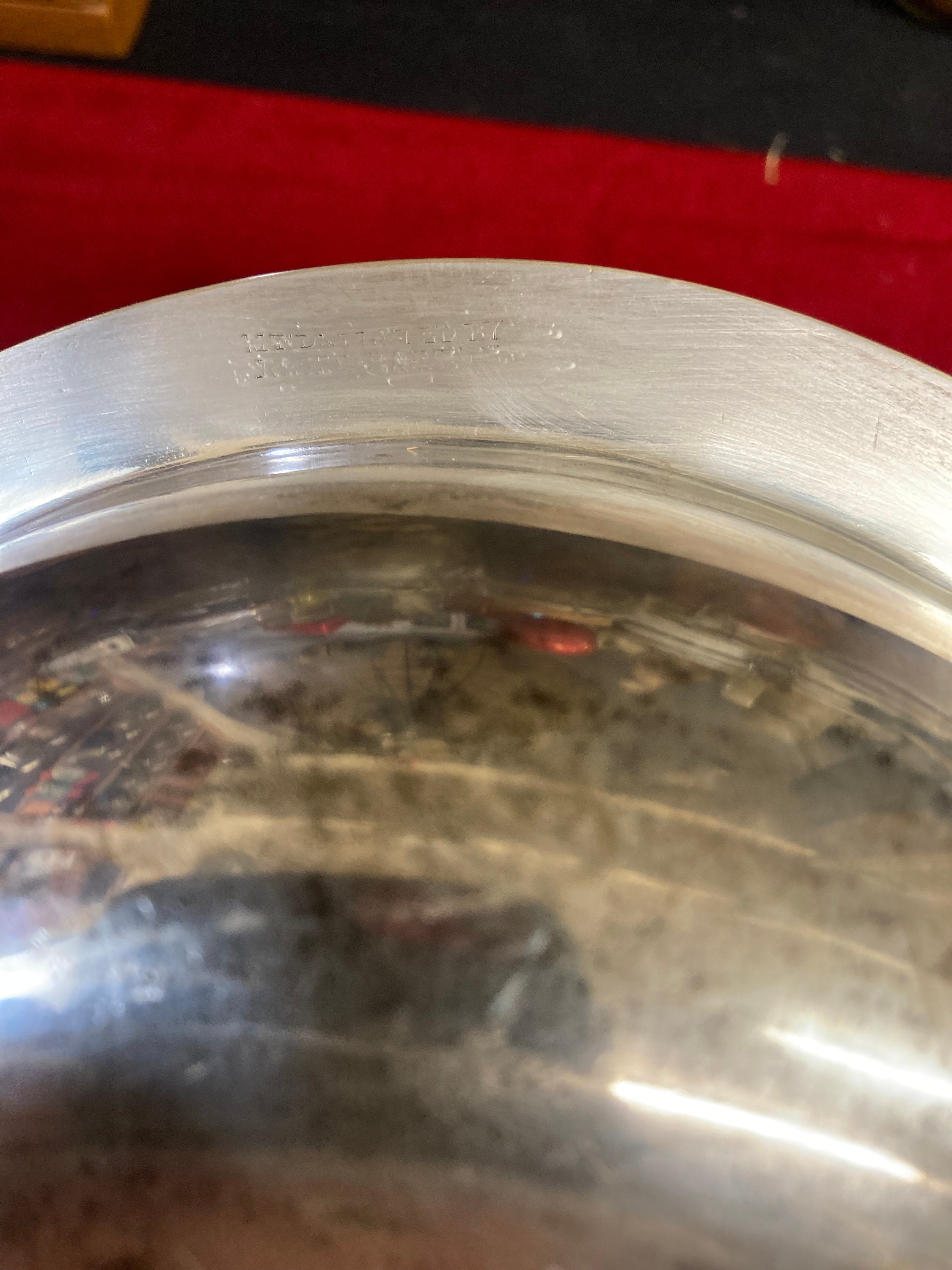 Wear consistent with age and use. Minor losses. Some plating wear to base metal overall to the higher spots of the cover and sides from years of use and polishing, and some scratches as presented in the photos and consistent with age and use.