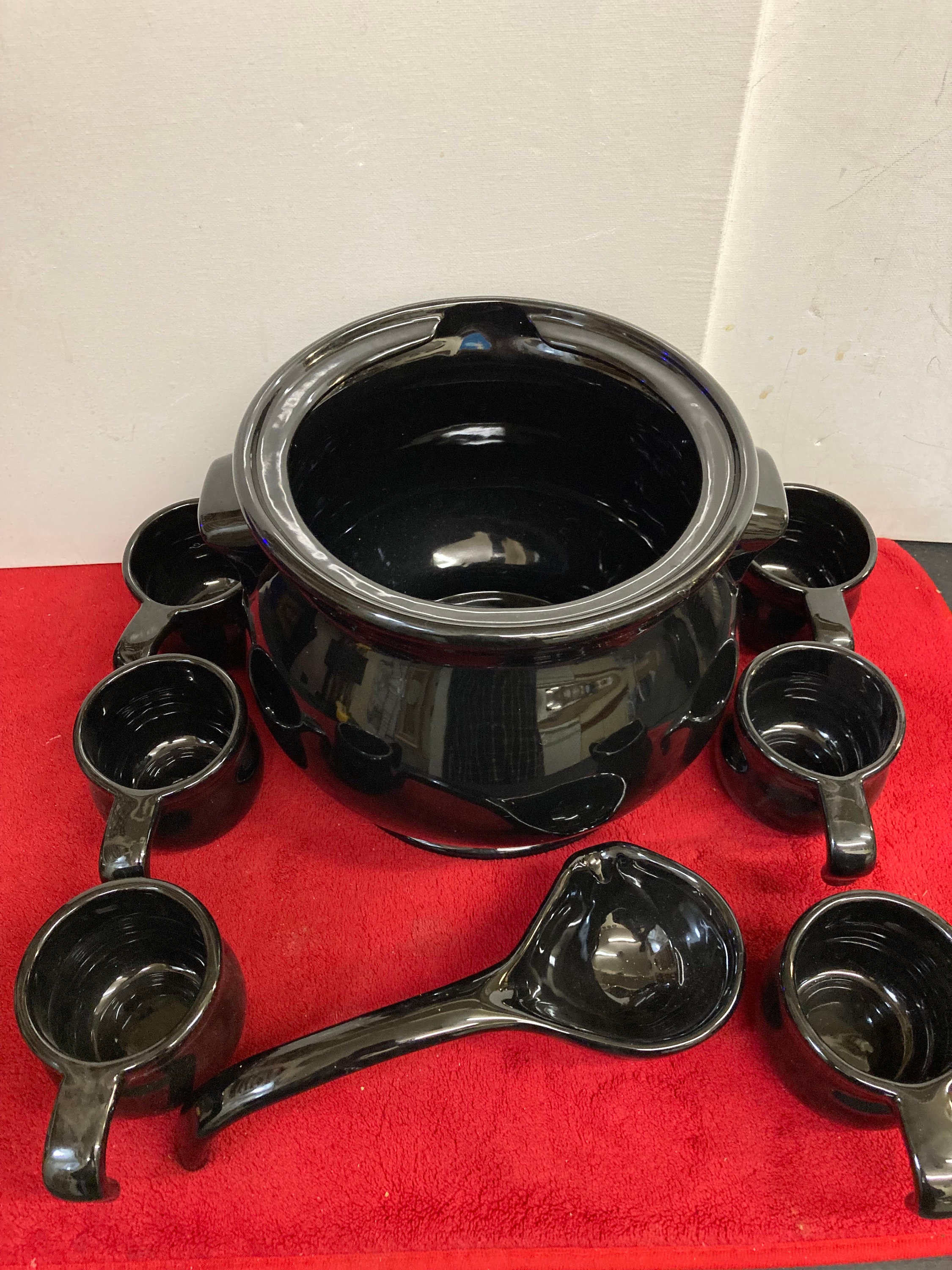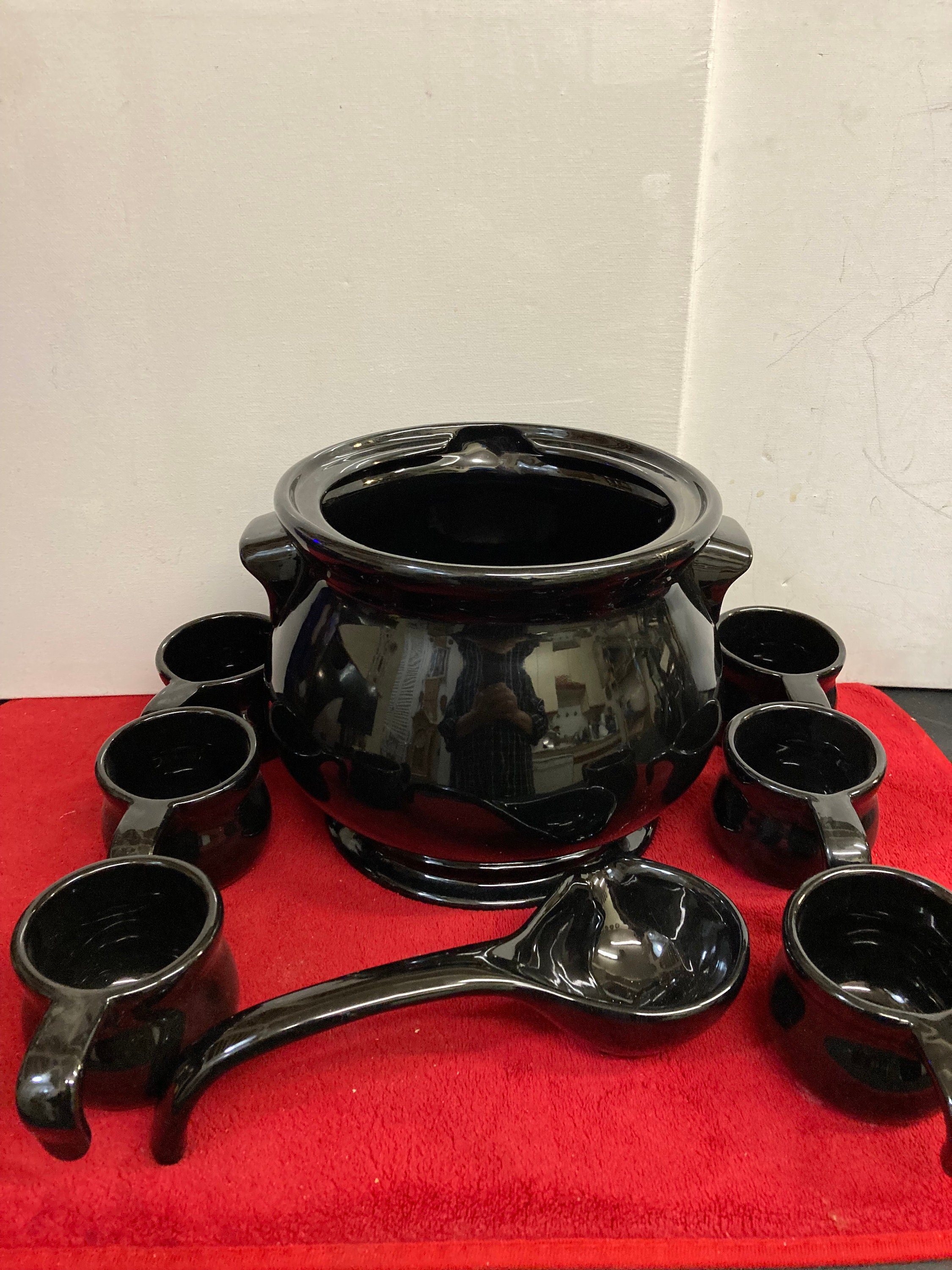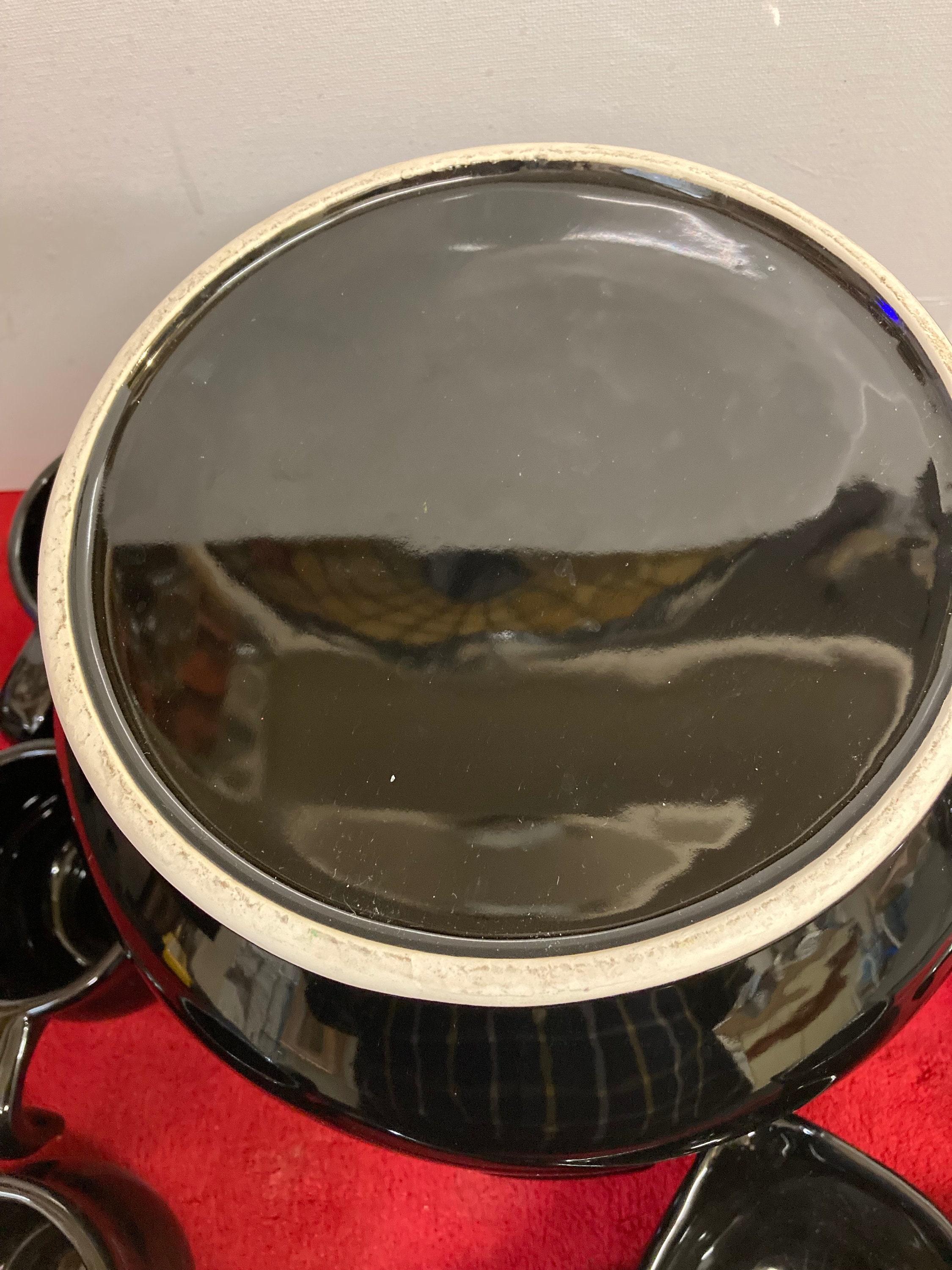 Ceramic Black Soup Pot With Tureen & 6 Cups