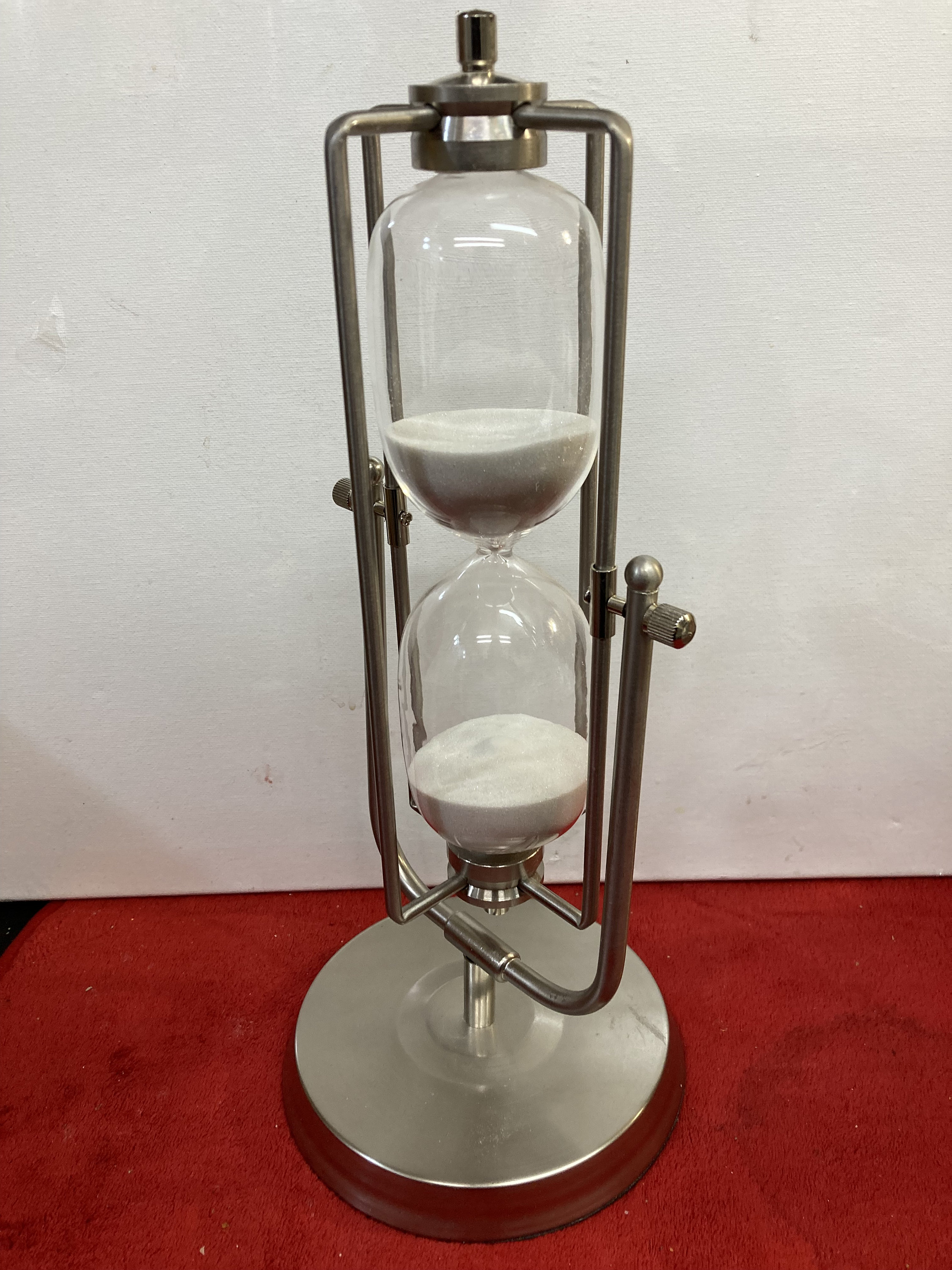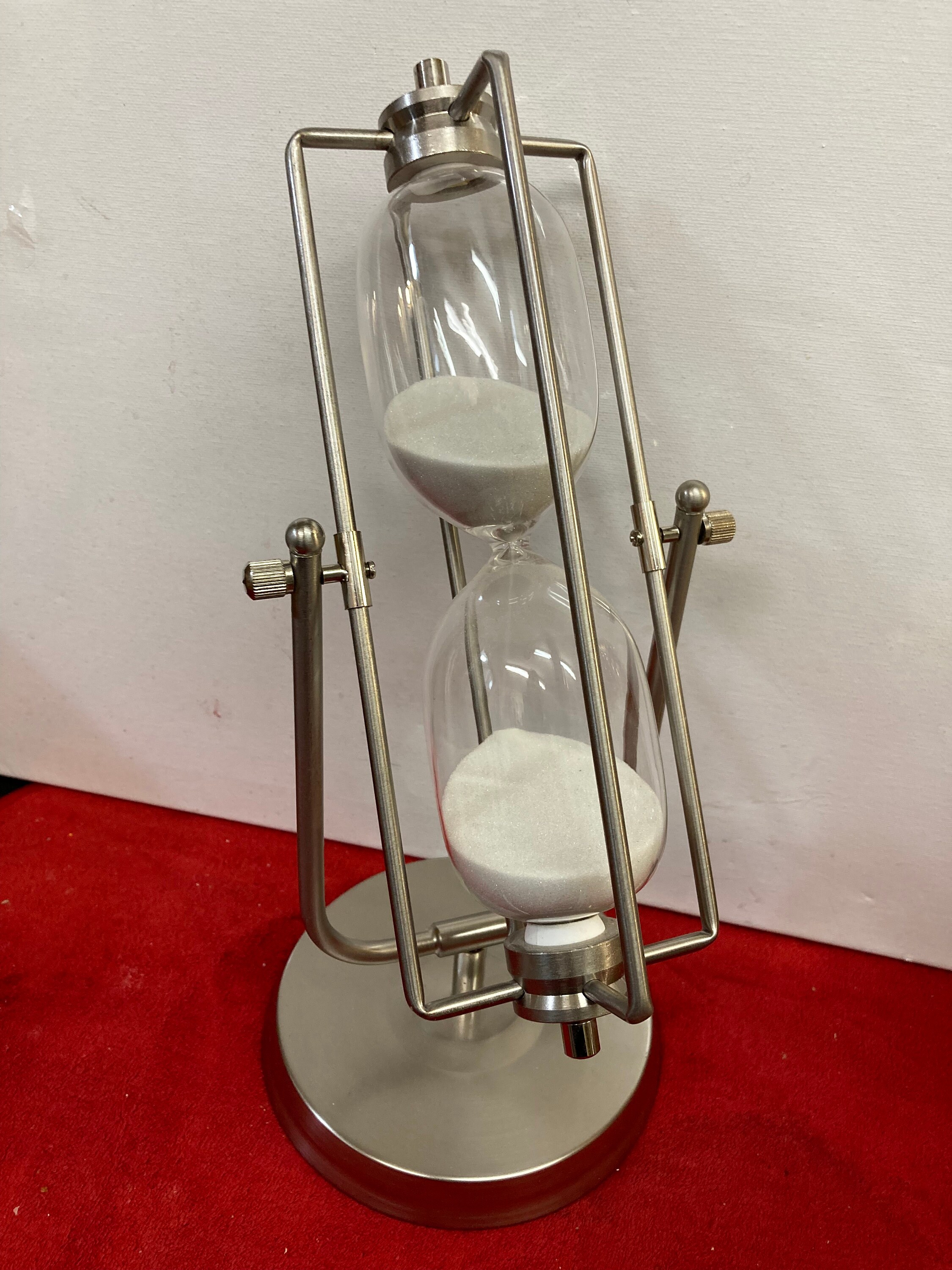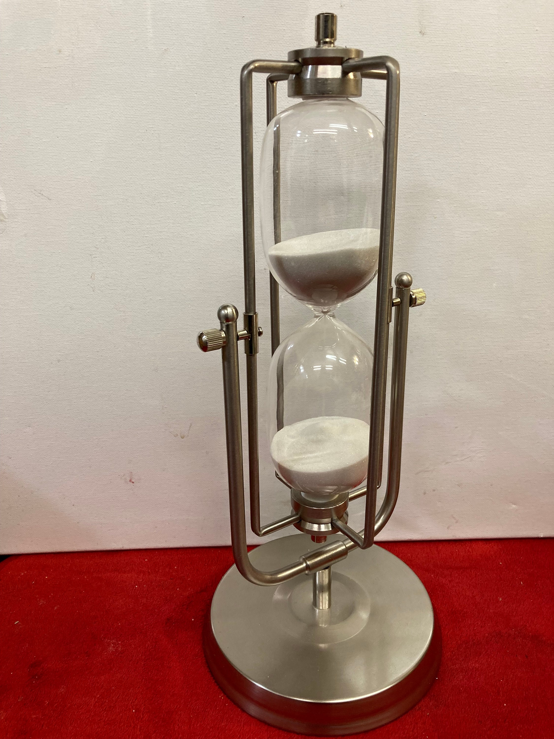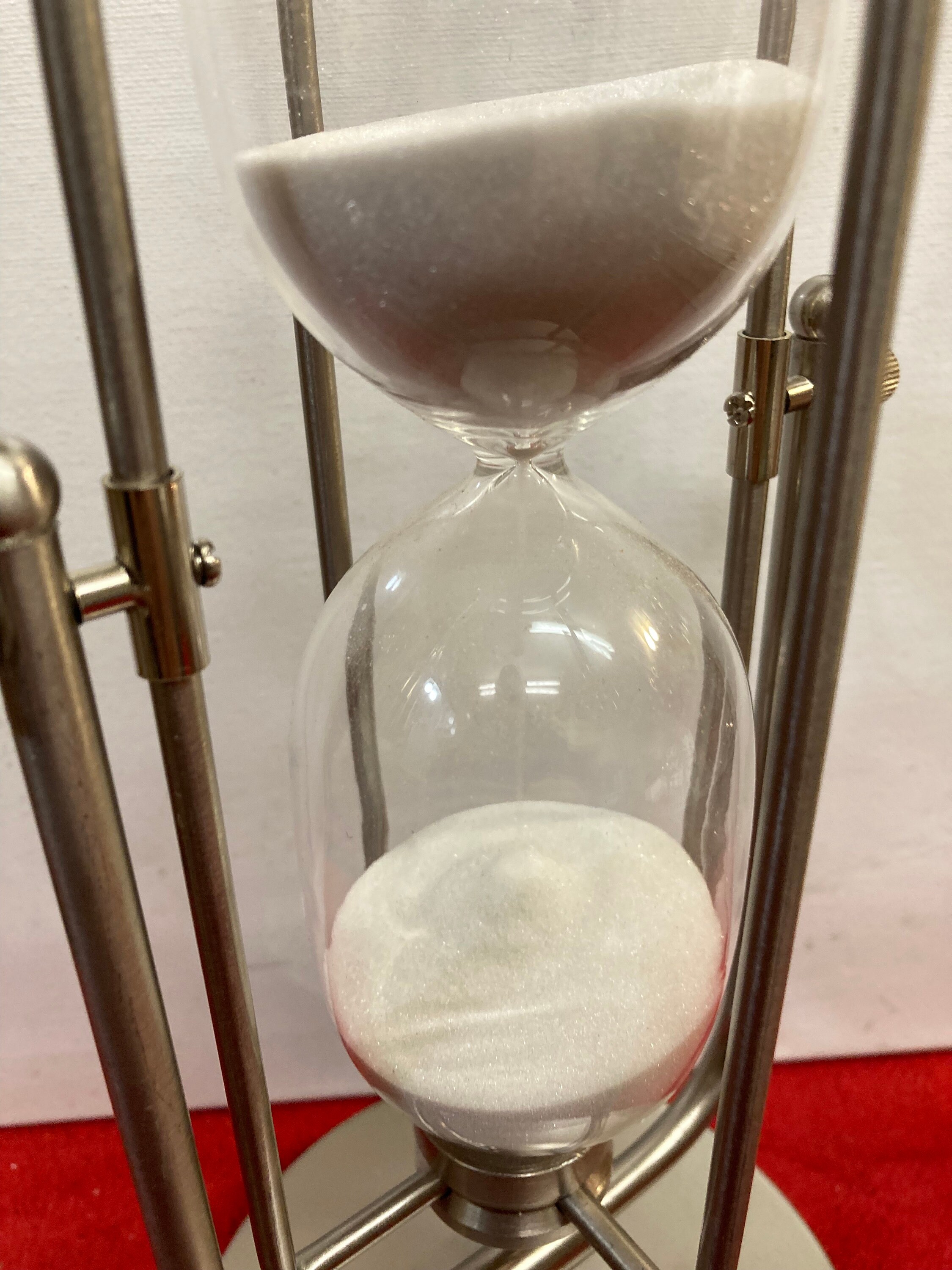Decorative Silver Metal and Glass Sand Timer 13.5 inch High