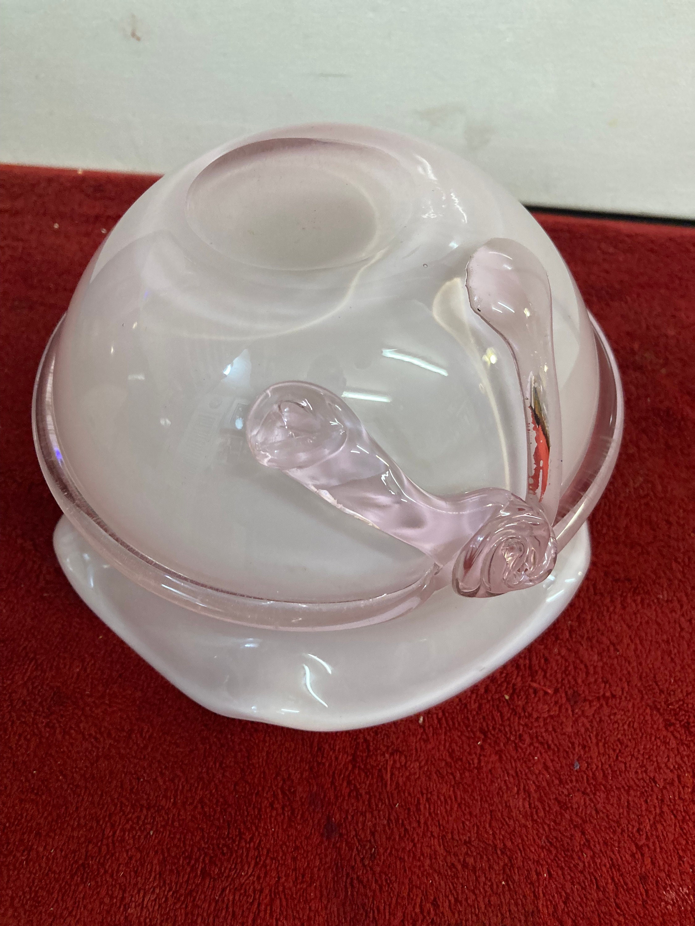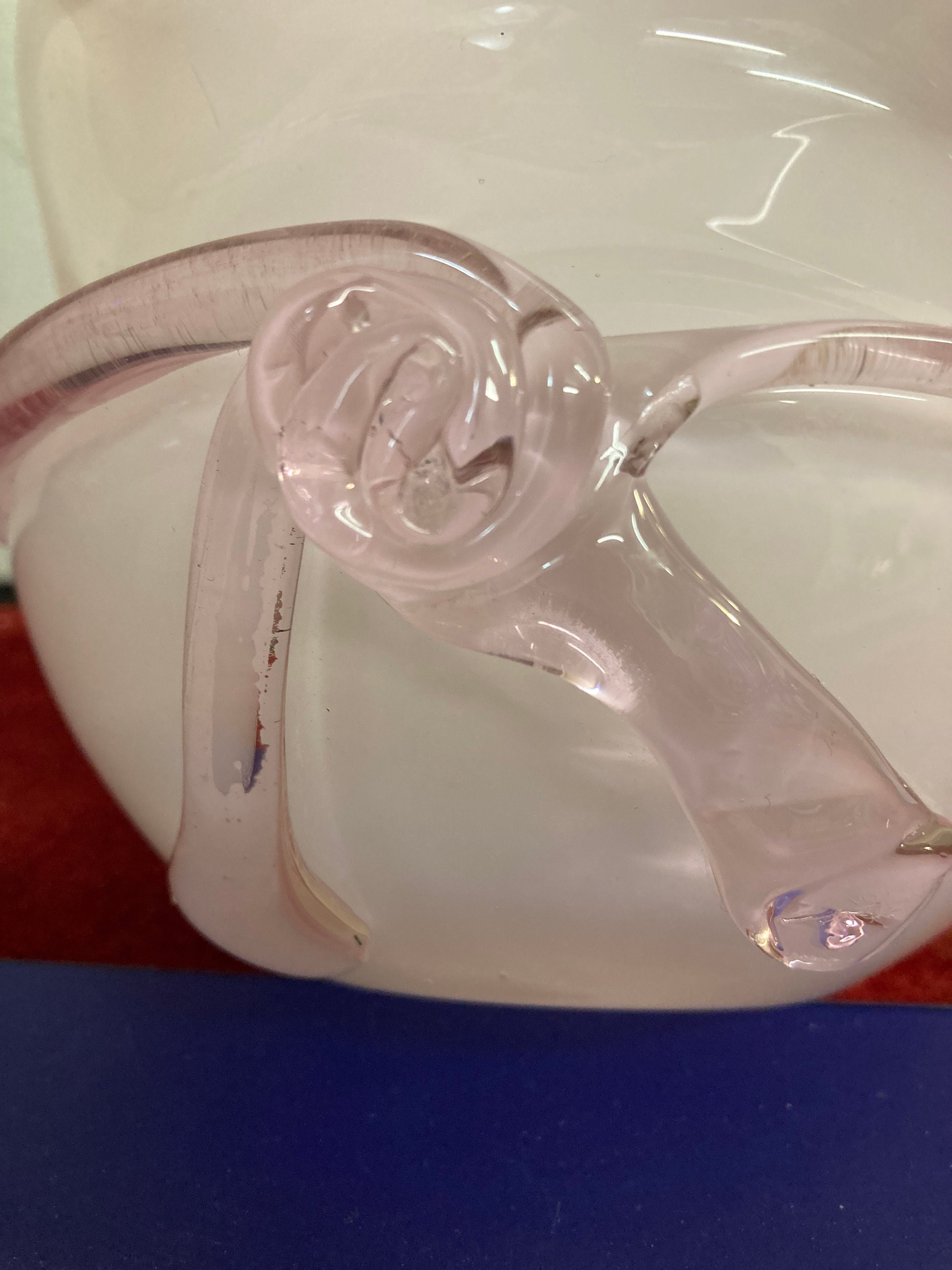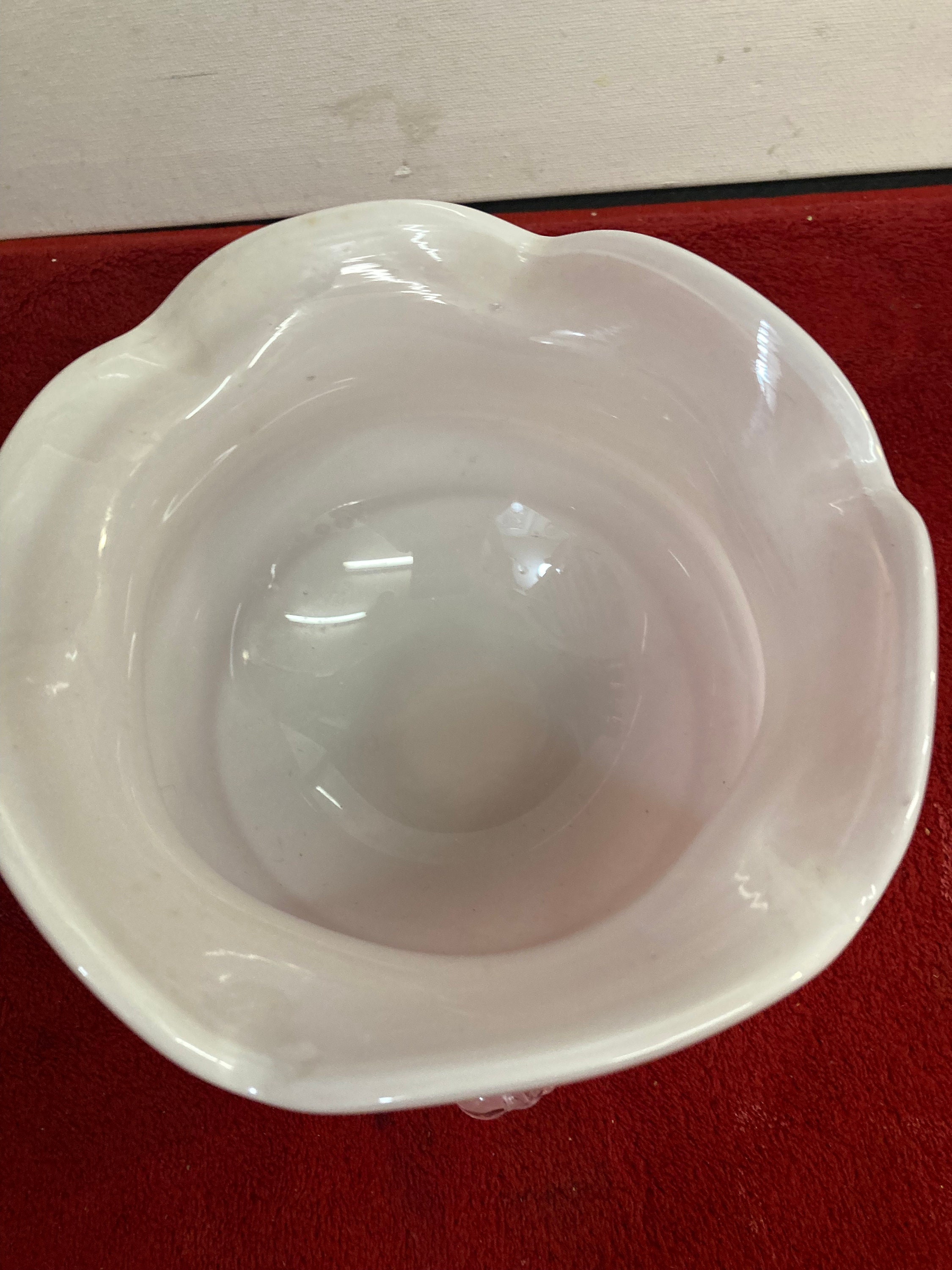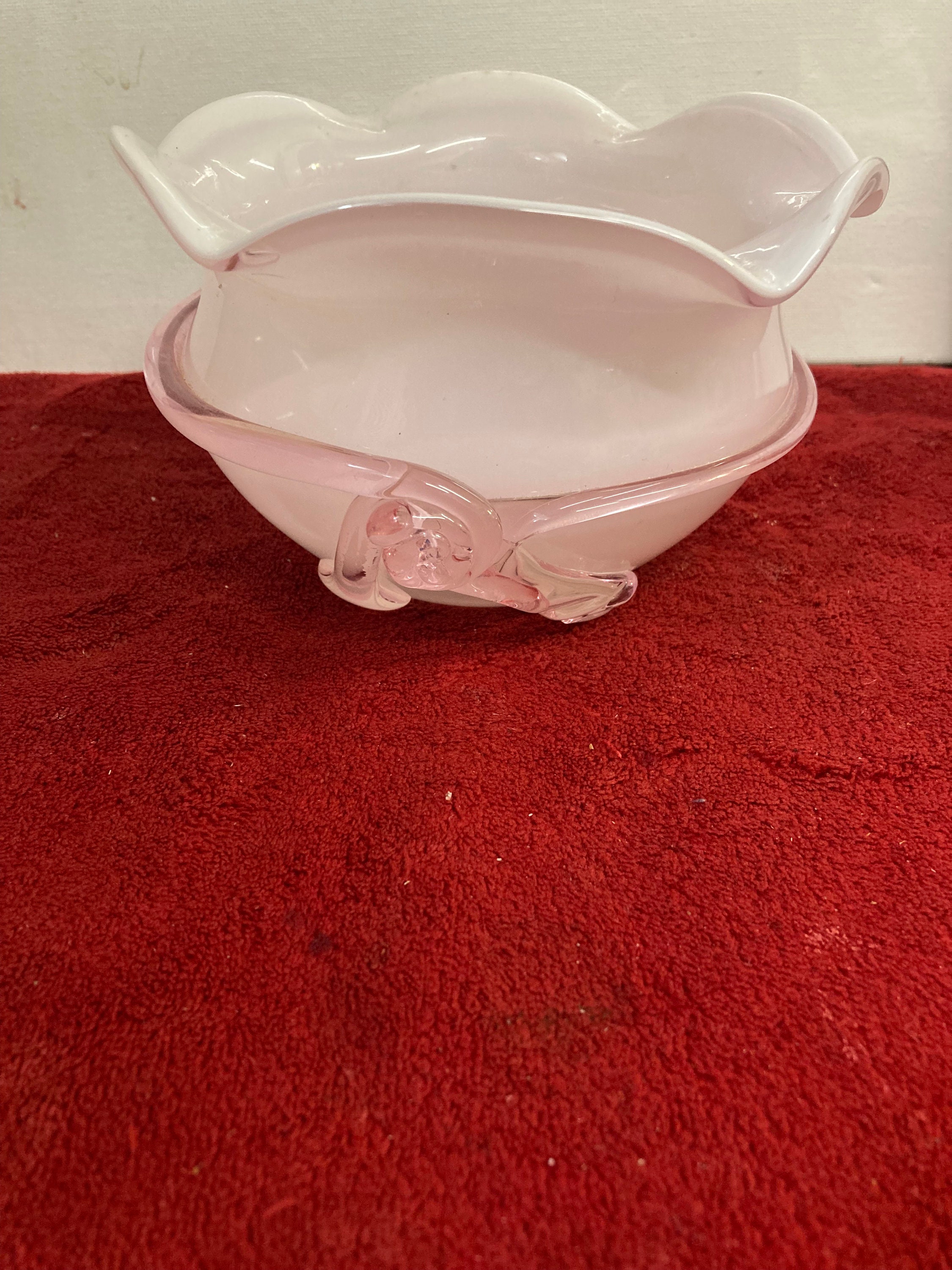 Pink Ruffled White Cased Vase / Bowl / Planter with Glass Knot Bow