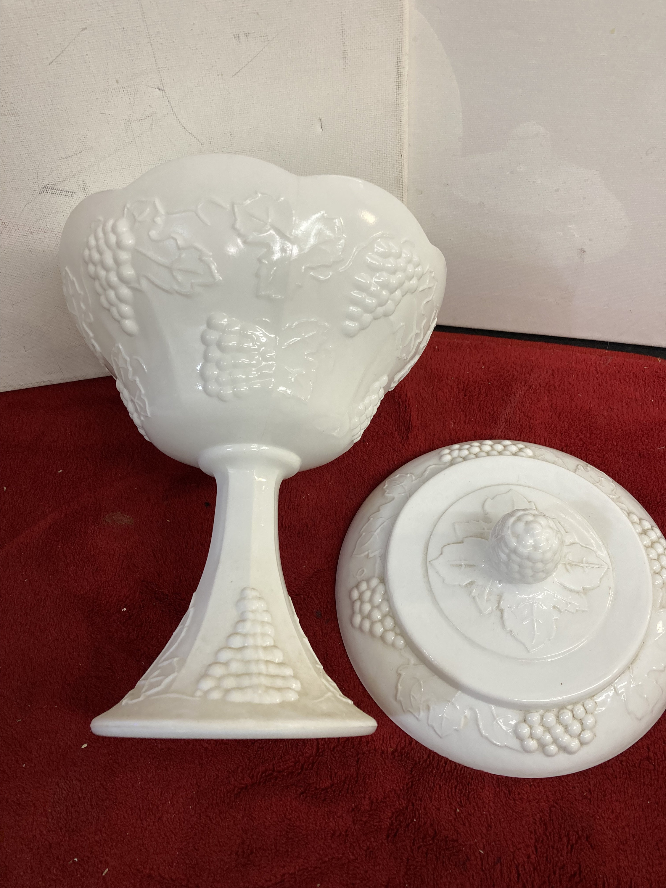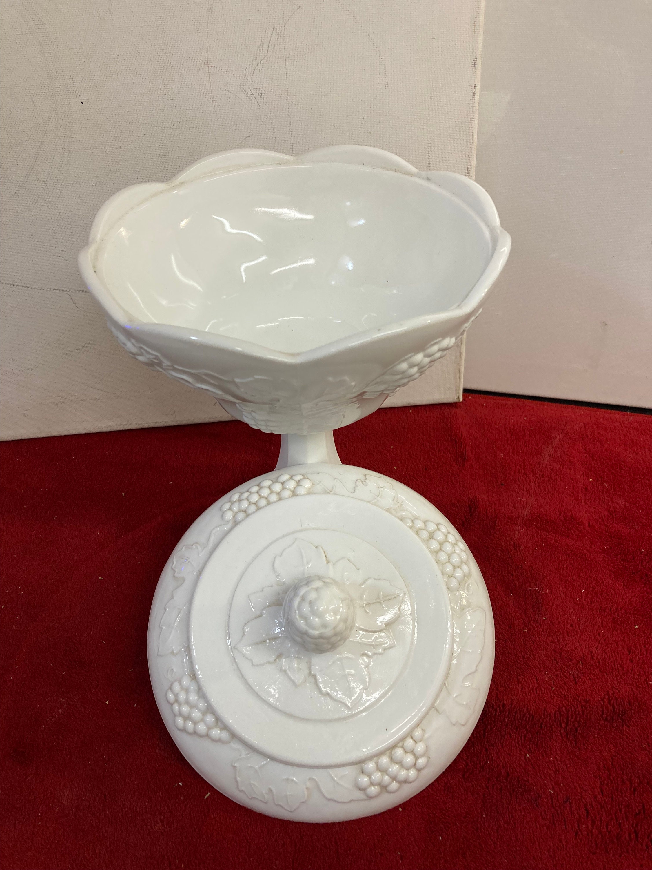 Vintage Westmoreland Paneled Grape Pedestal Candy Dish-Vase With Grape Pattern Cover