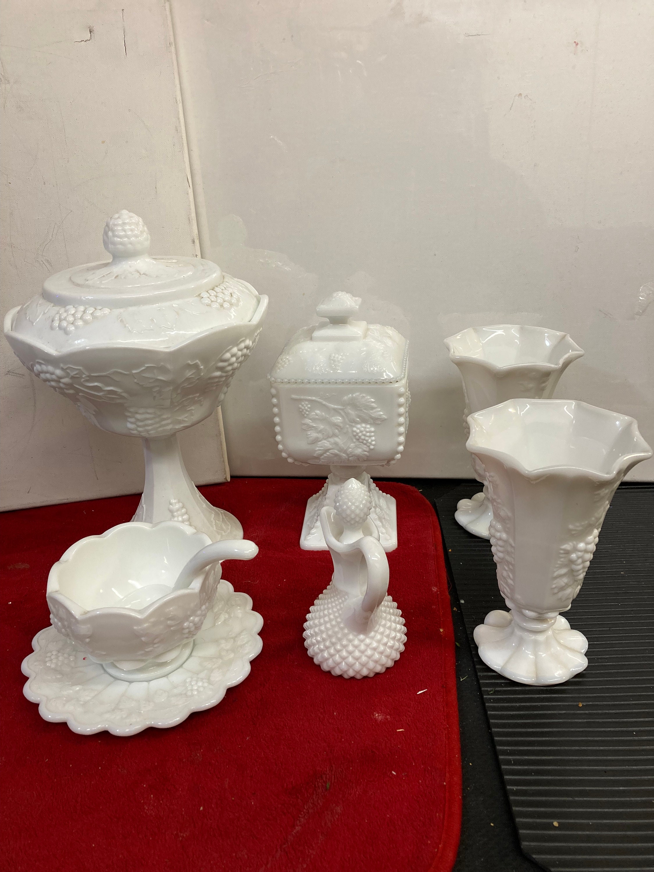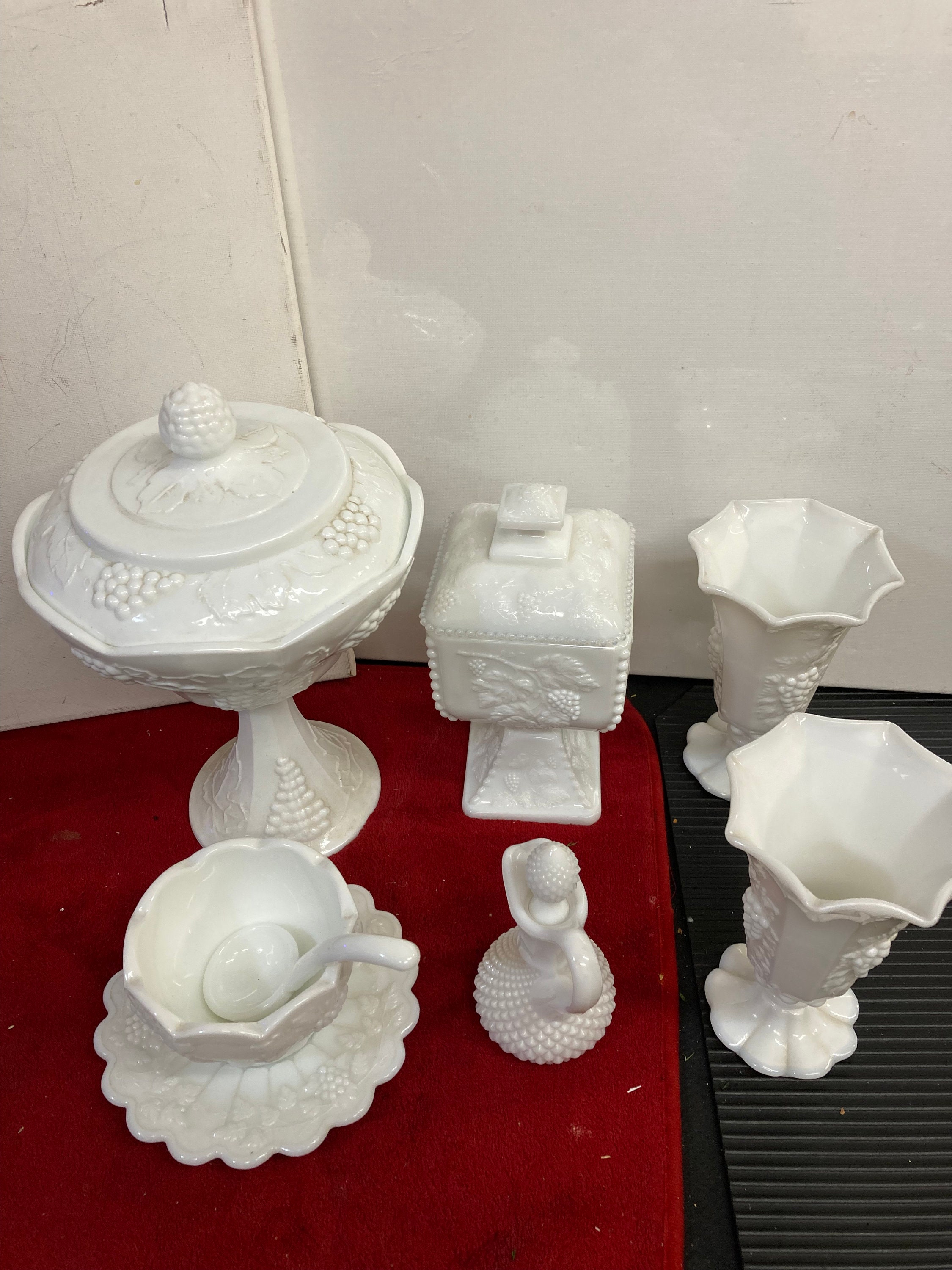 2 Westmoland Belled Belled Vase,Paneled Grape Milk Glassses