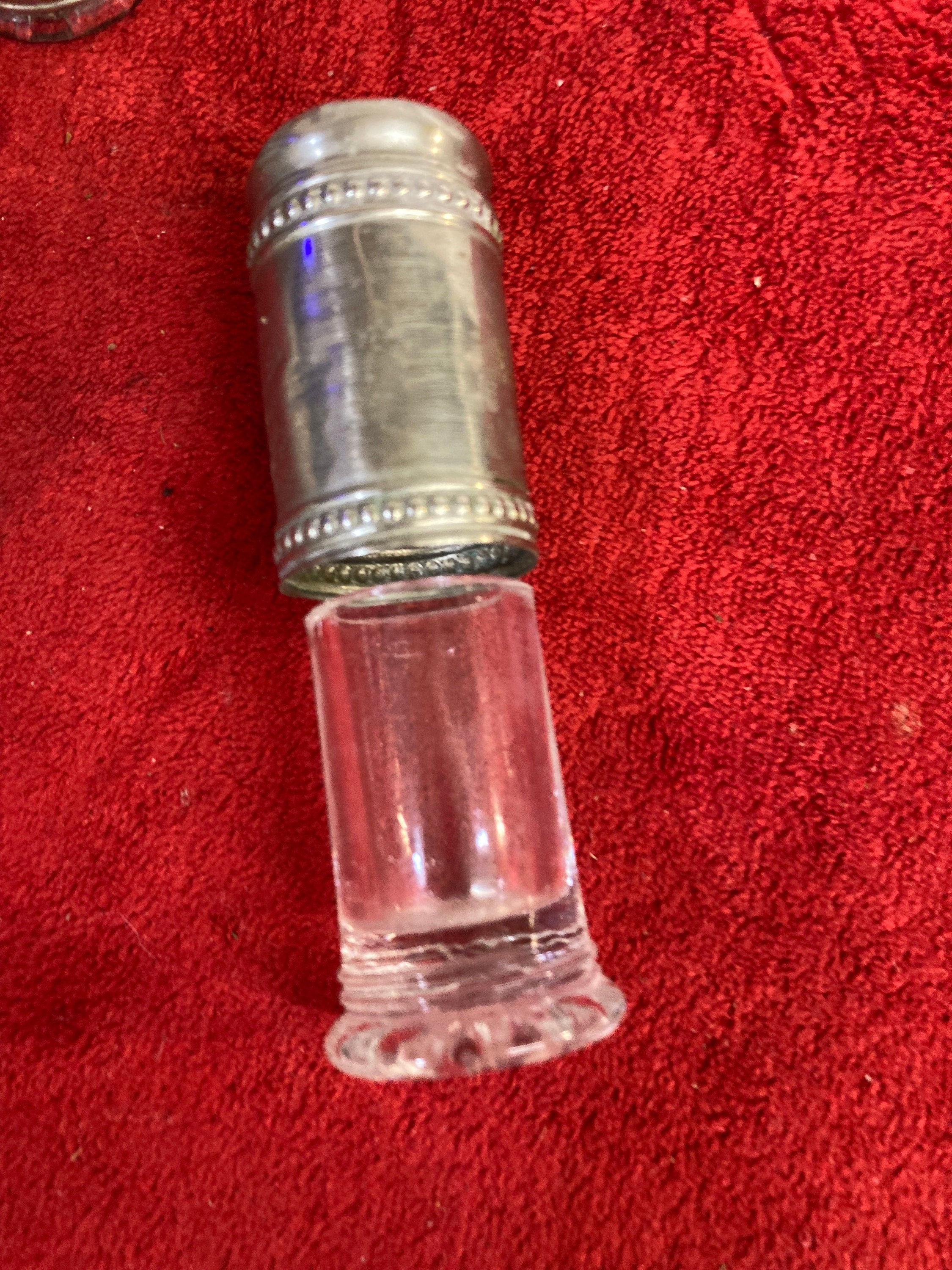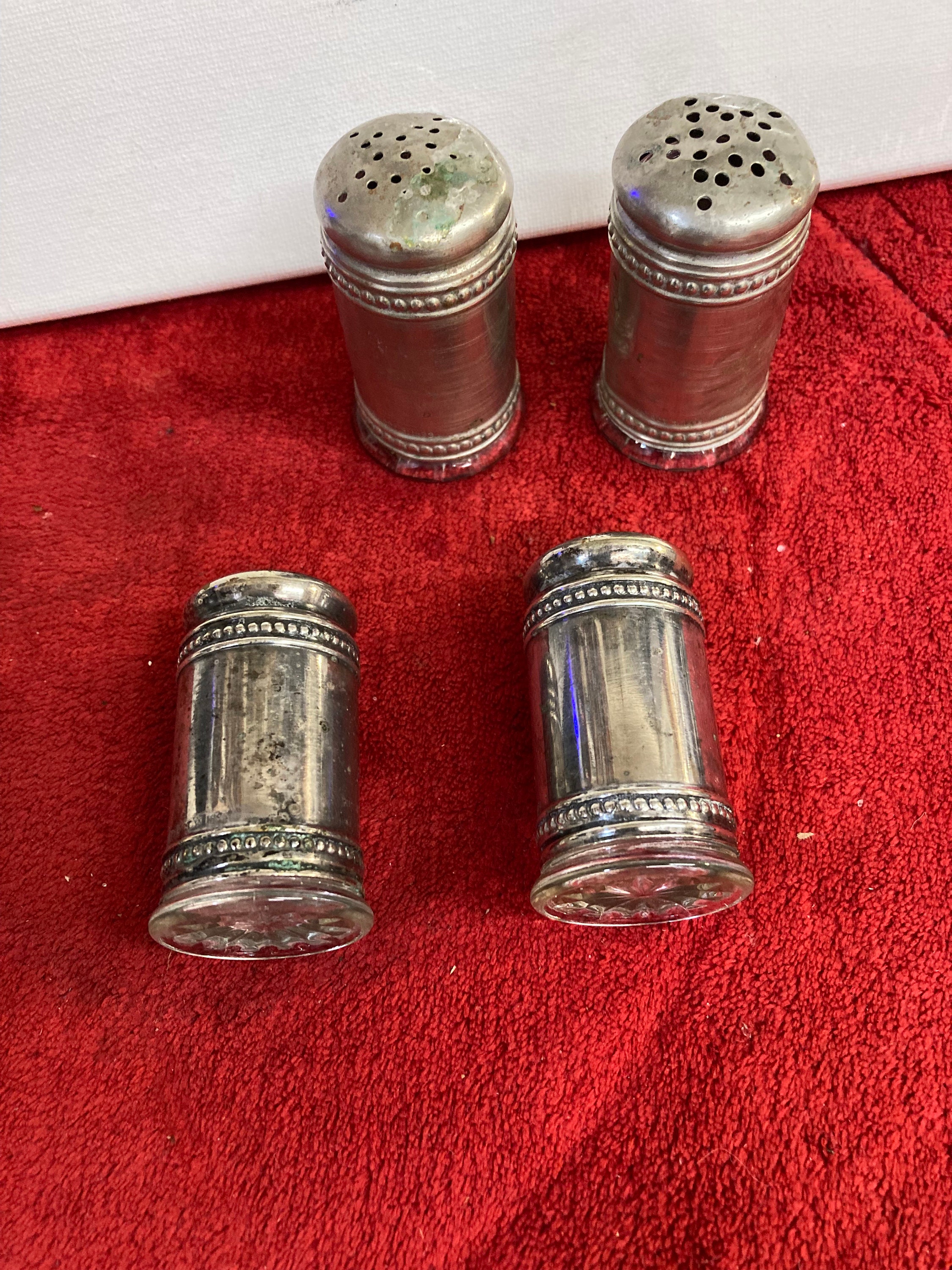 1800s silver plated and crystal salt and pepper shaker collectible glass collectible vintage antique silver dish ware fine dinning Victorian
