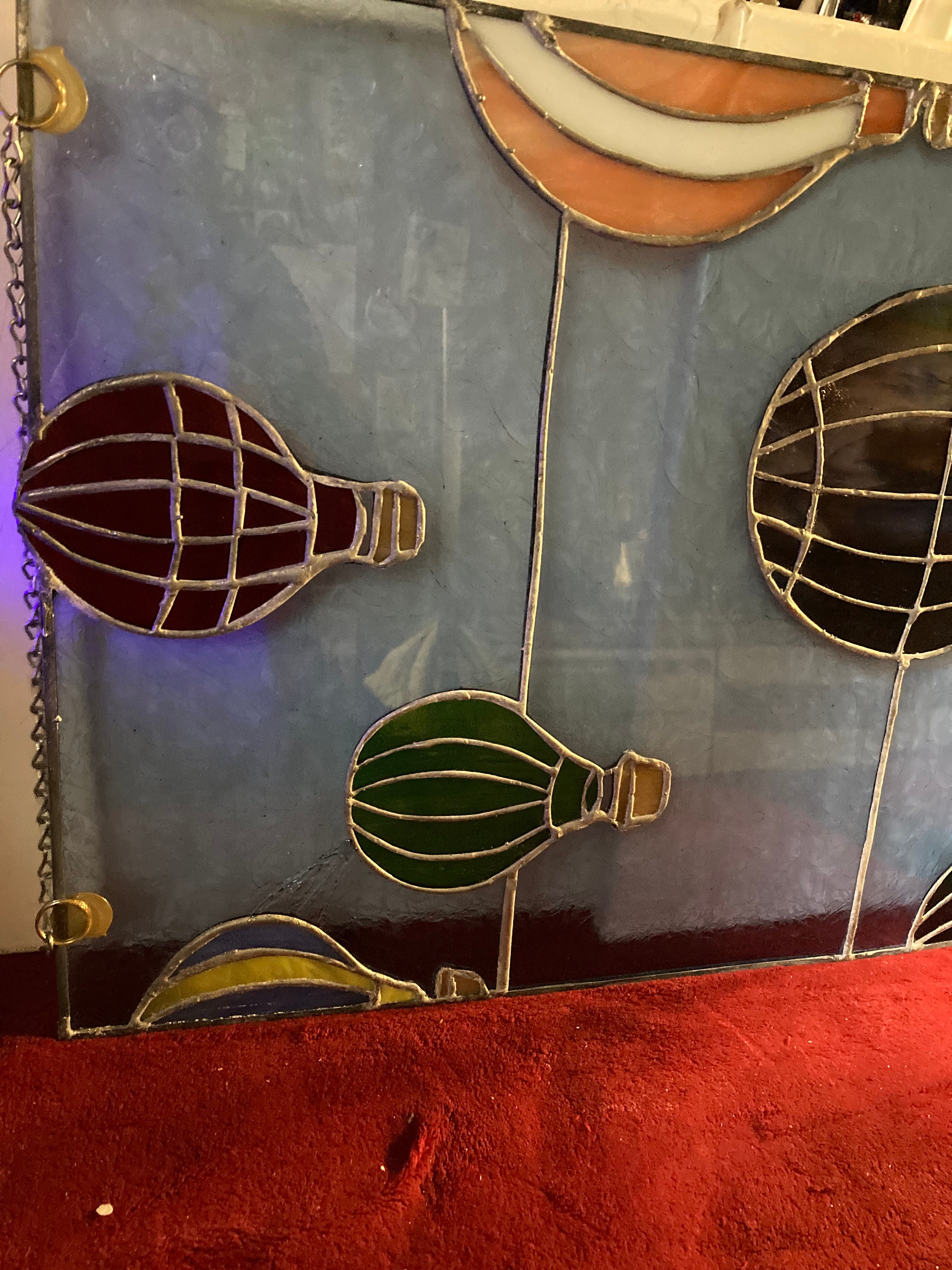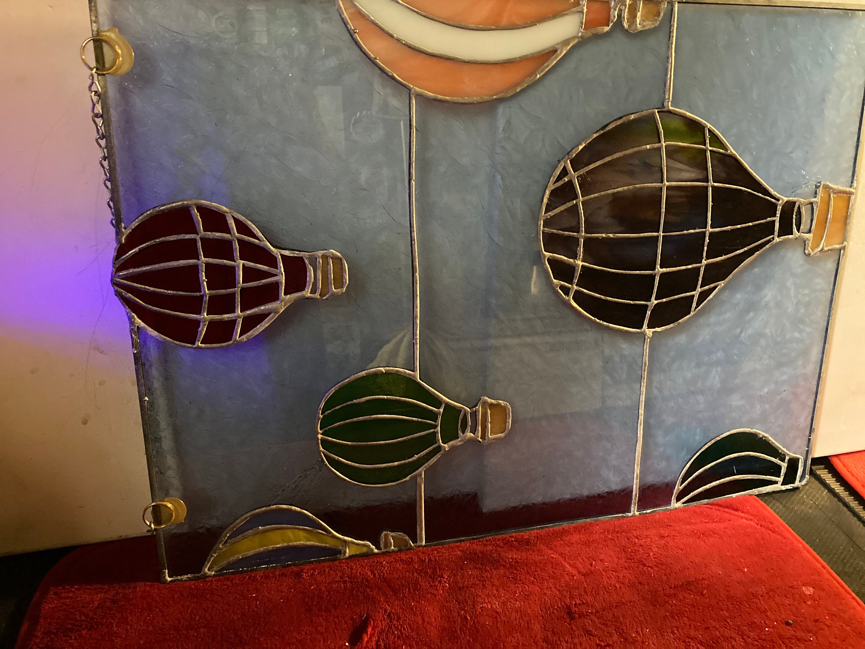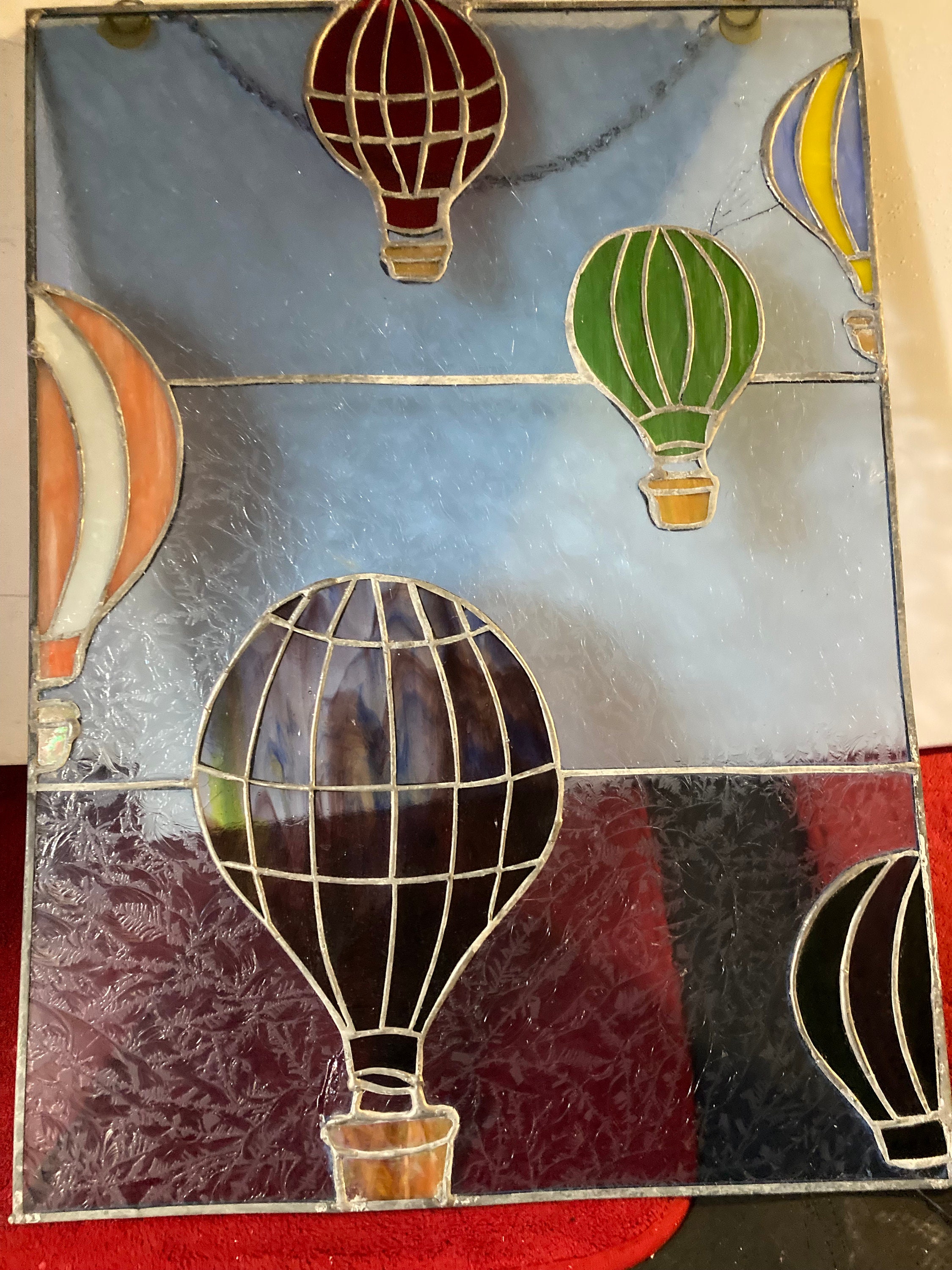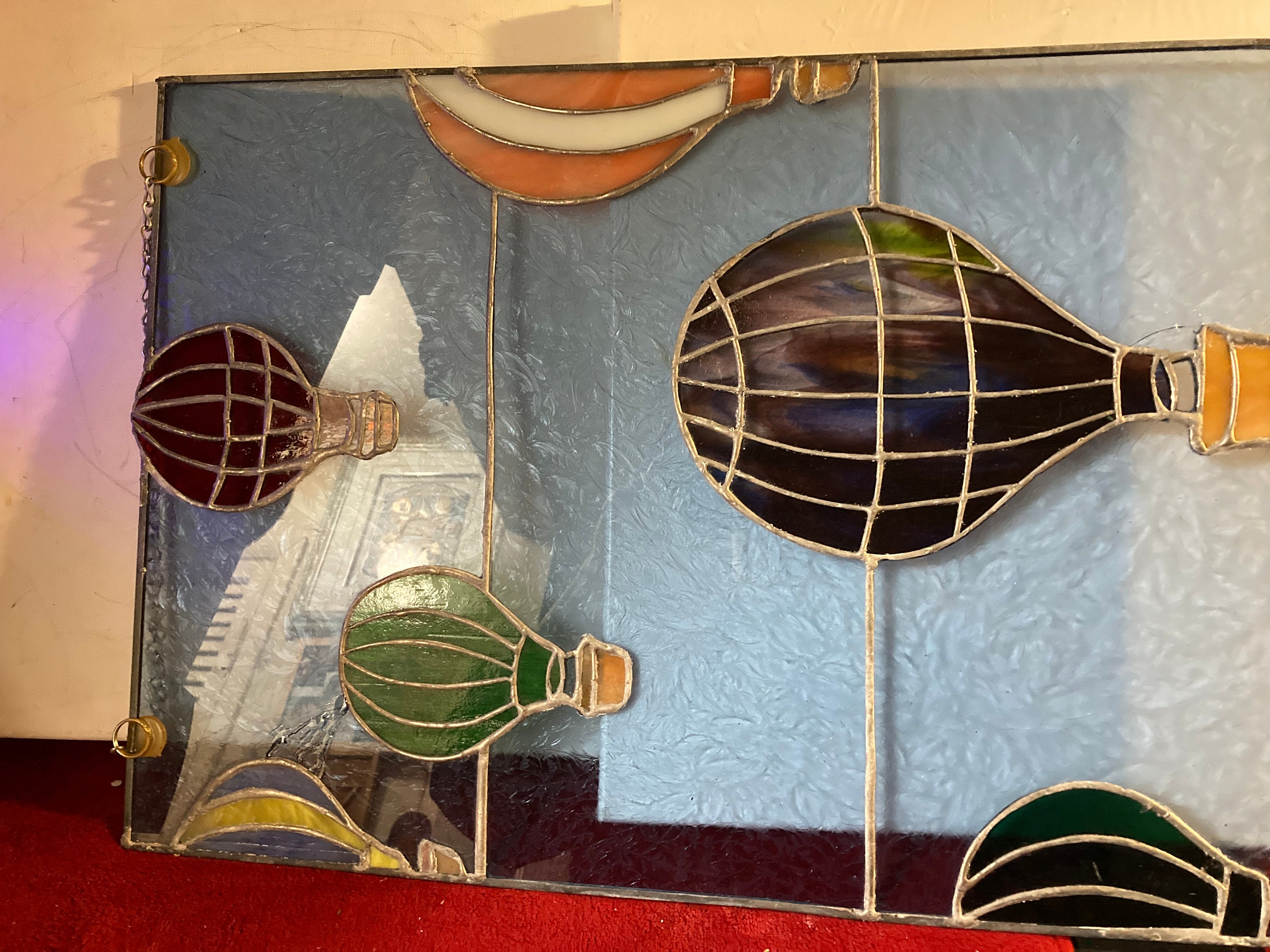 The colorful stained glass Hot Air Balloons panel is approximately 15.5" wide by 22" high.