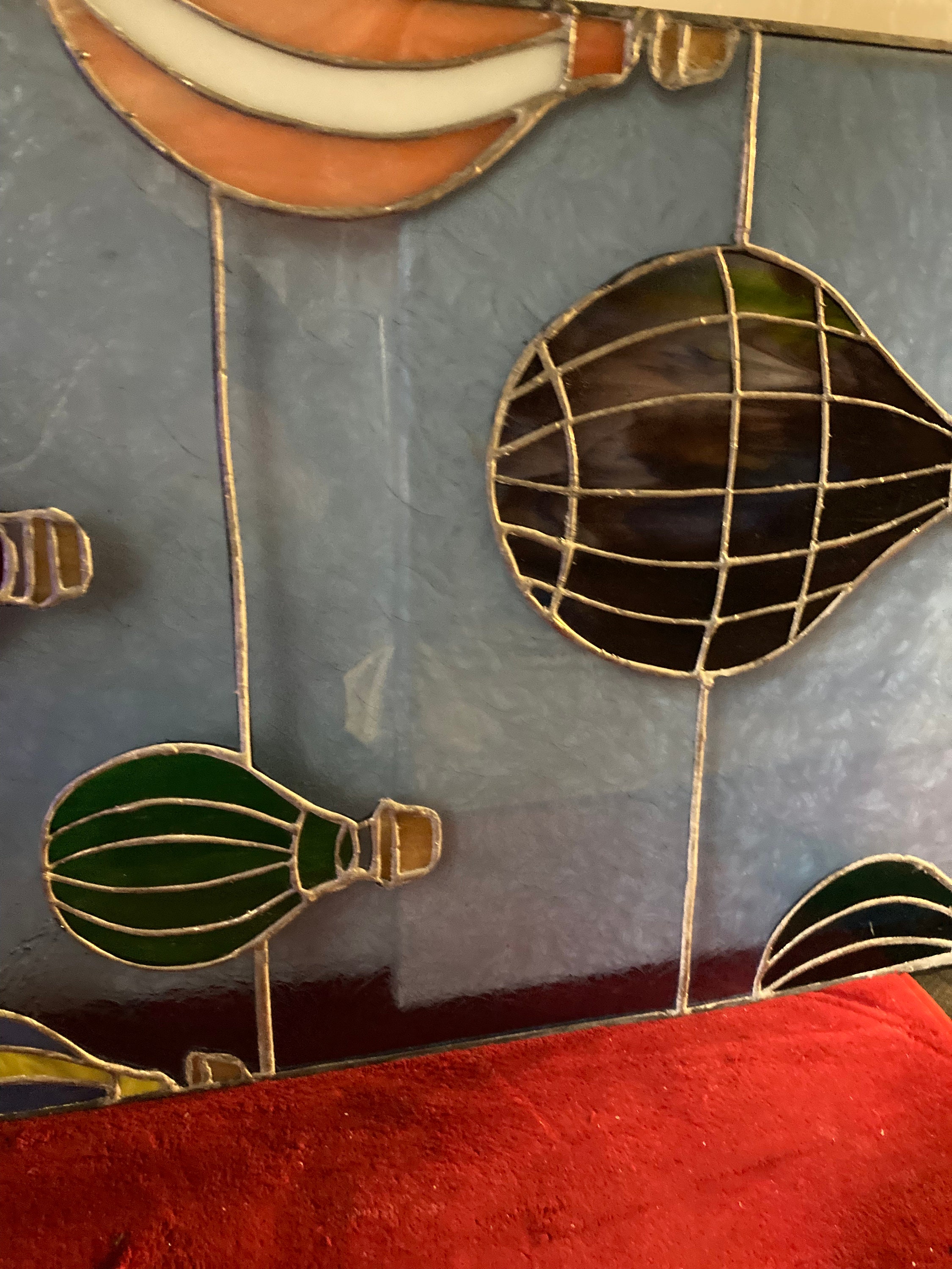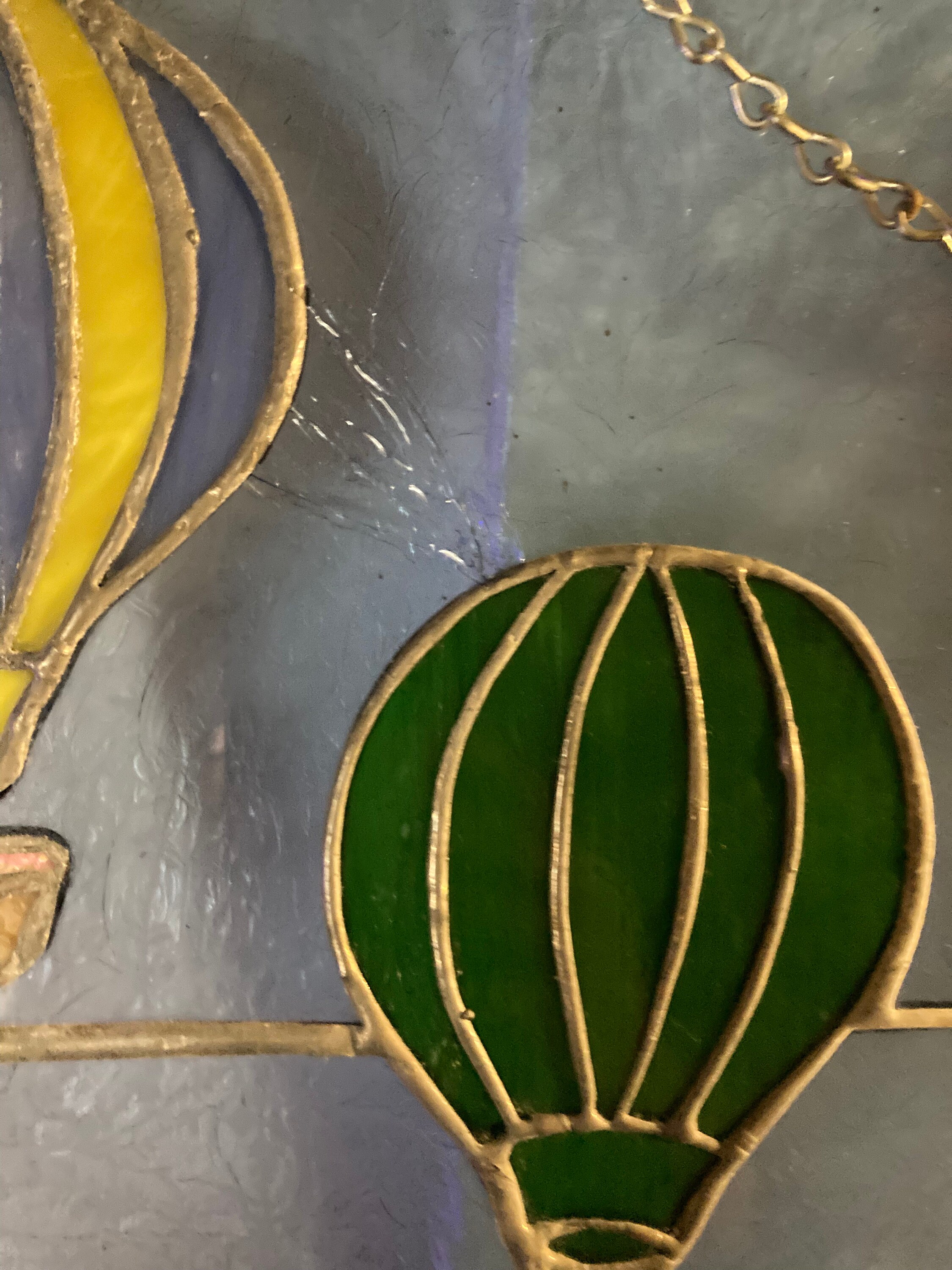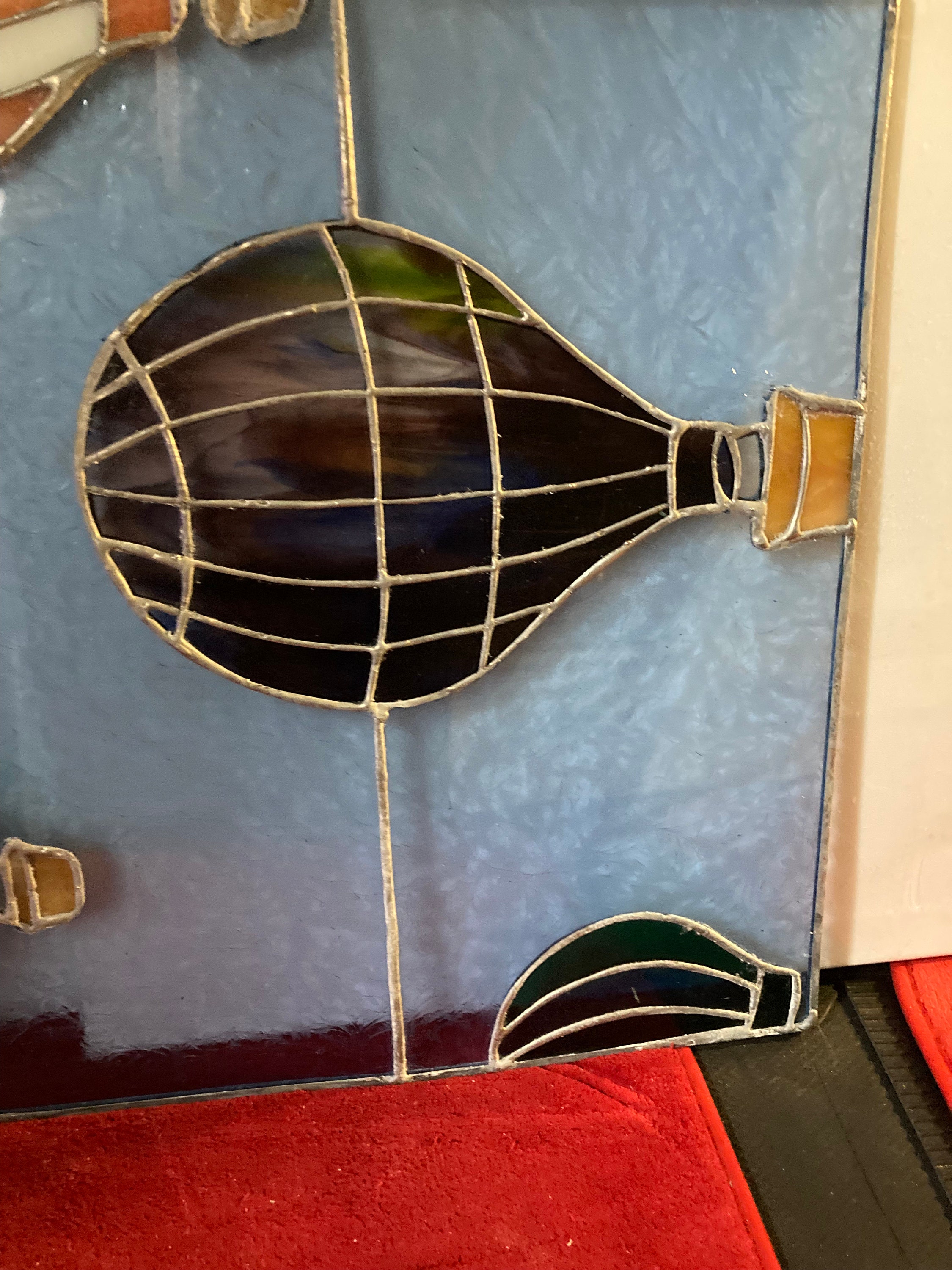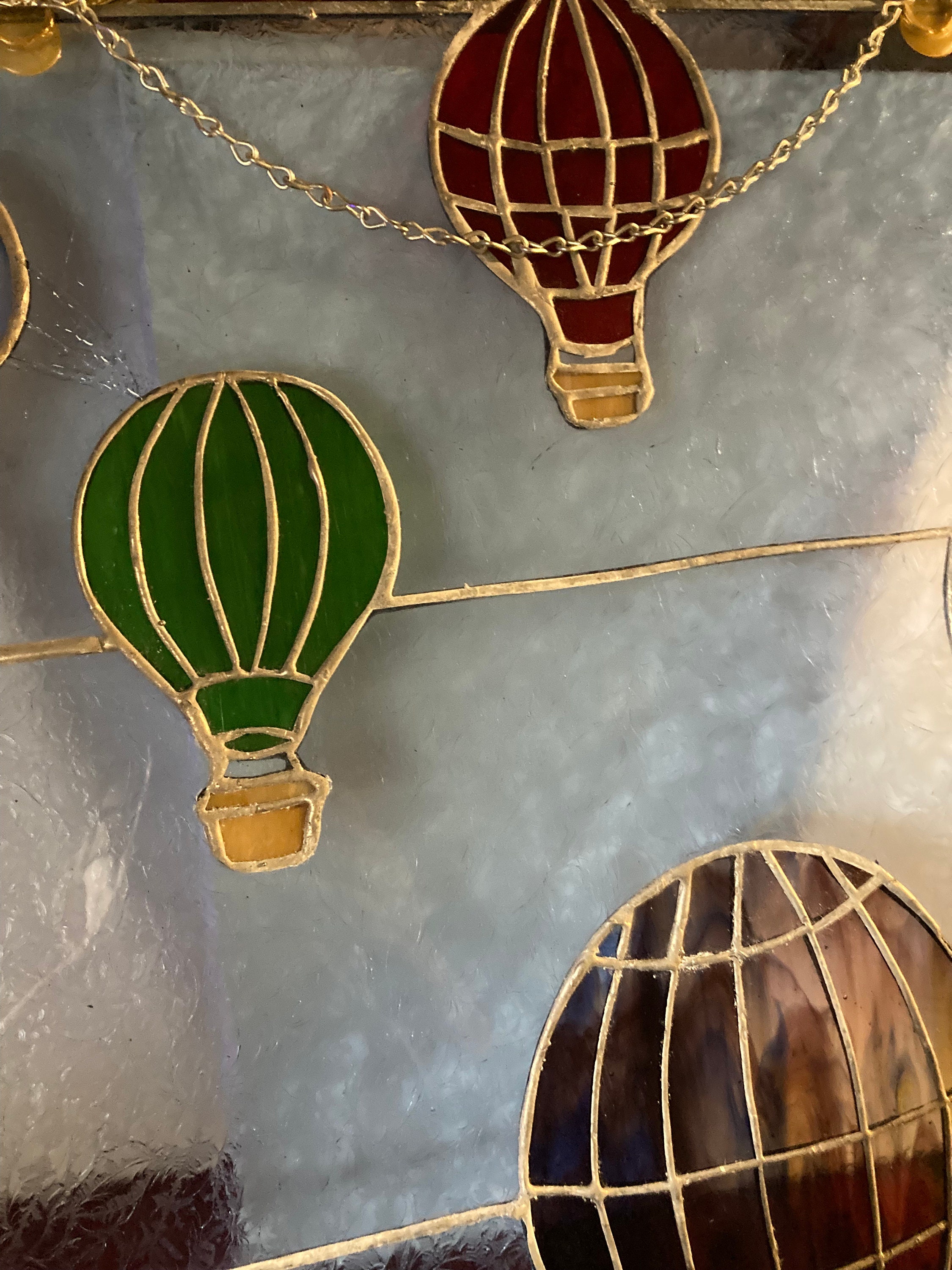 The colorful stained glass Hot Air Balloons panel is approximately 15.5" wide by 22" high.