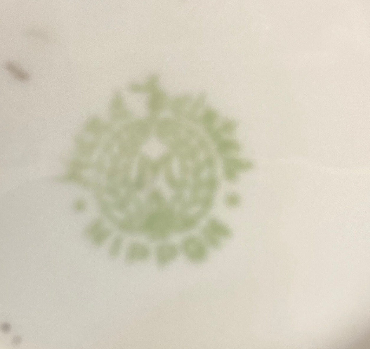 the letter "M" in a wreath and the words "Hand painted."