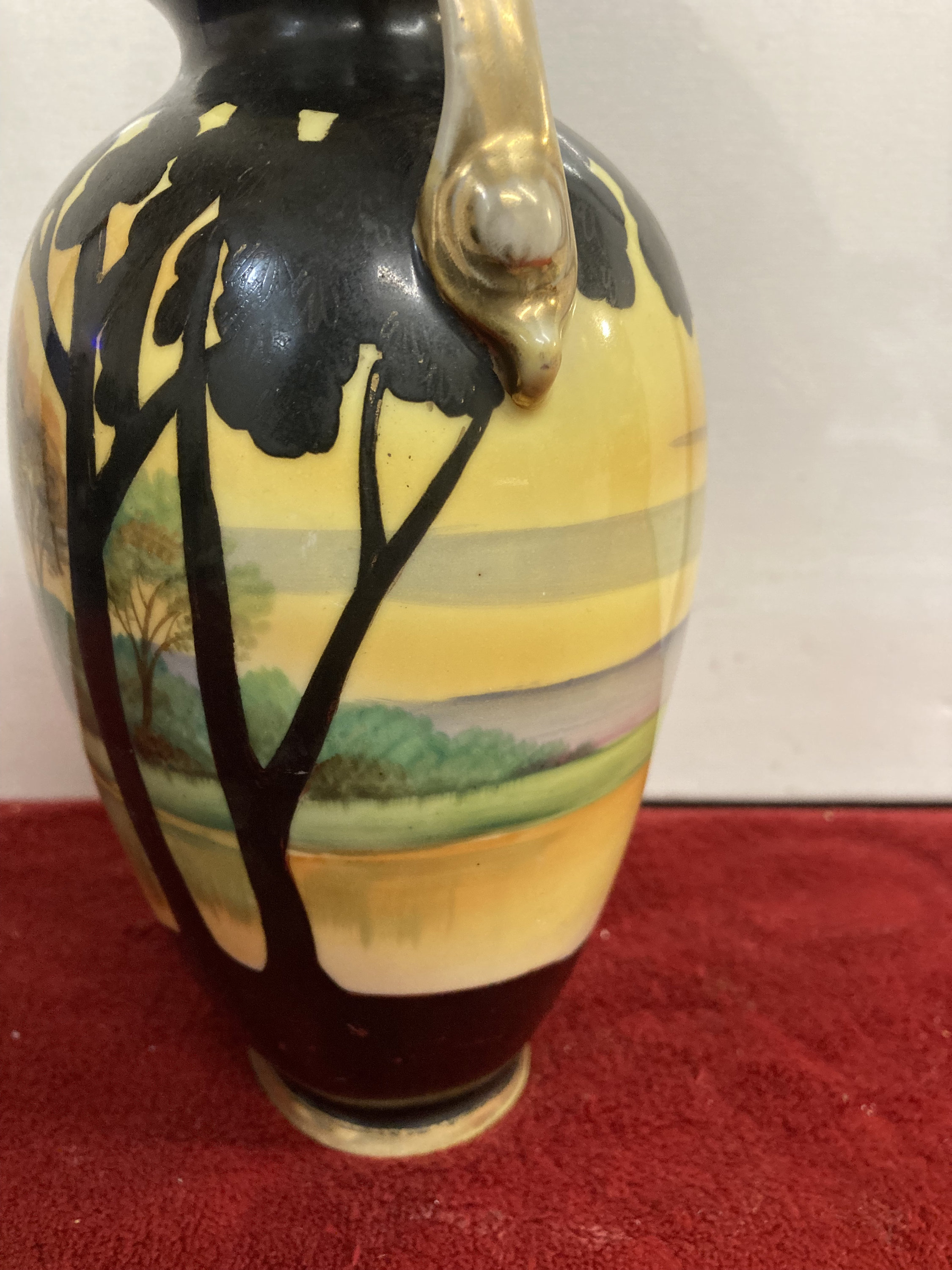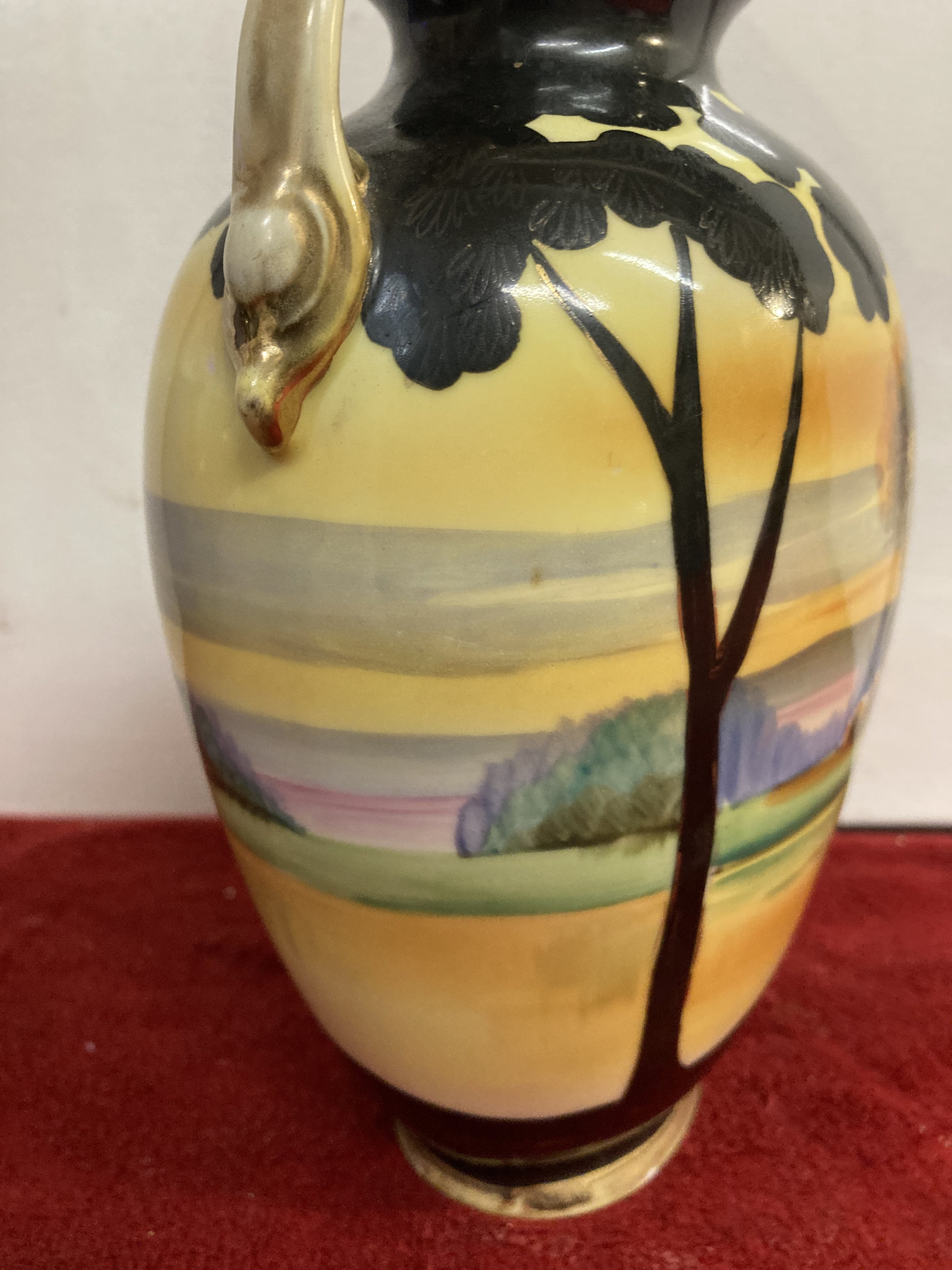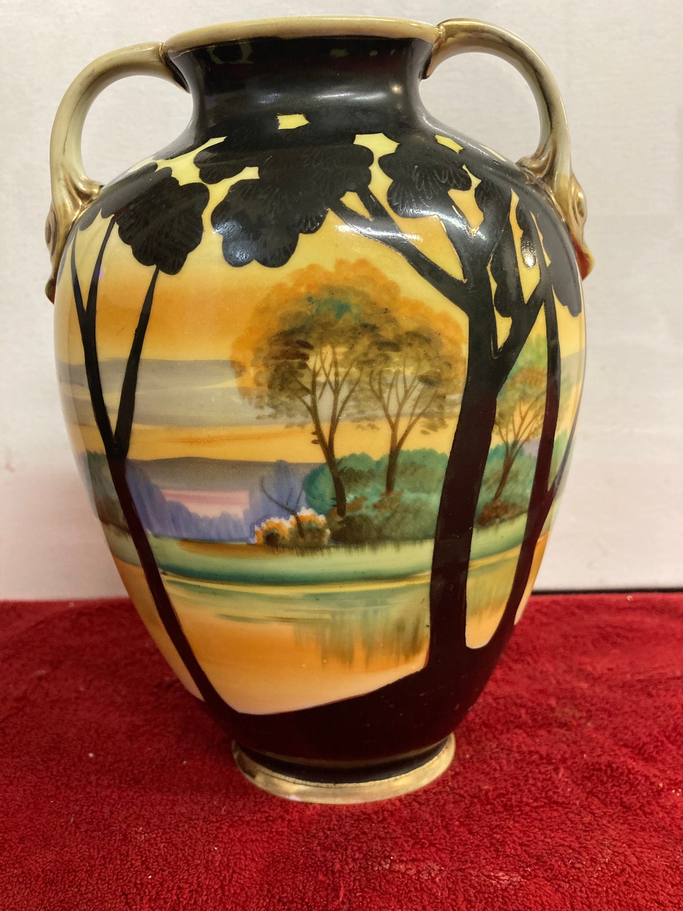 Signed Nippon Double Hand Painted Lake Setting Urn Vase |