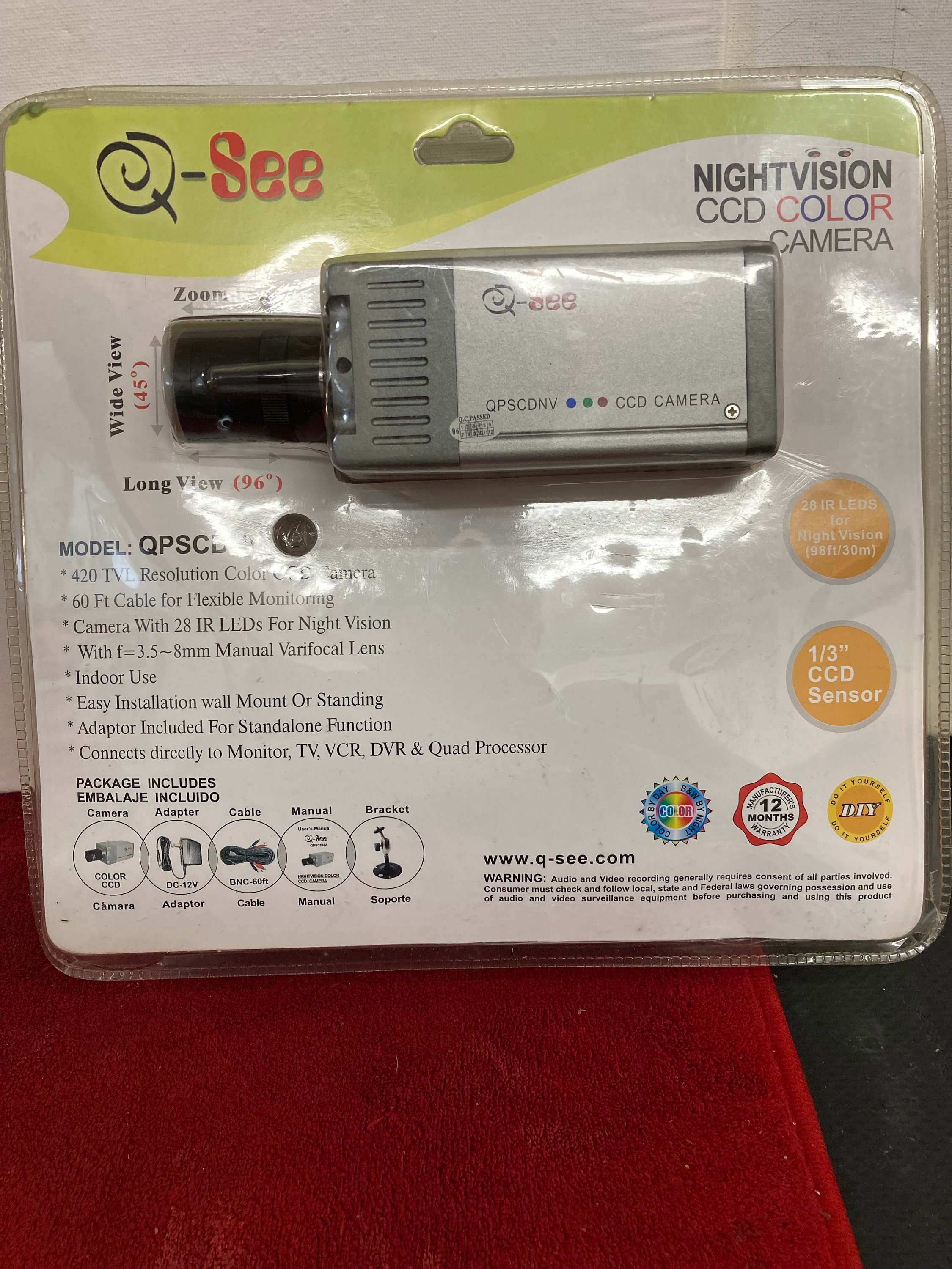 QPSCDNV is a color video CCD camera with 12 IR LEDs for night vision. With CCD technology, it delivers the most sophisticated technology into the most reliable and accurate color quality picture in the security industry Its ideal for monitoring or videotaping. The package includes a 60ft cable to allow flexible installation. Connect the camera to any TV/VCR and start viewing or taping immediately.