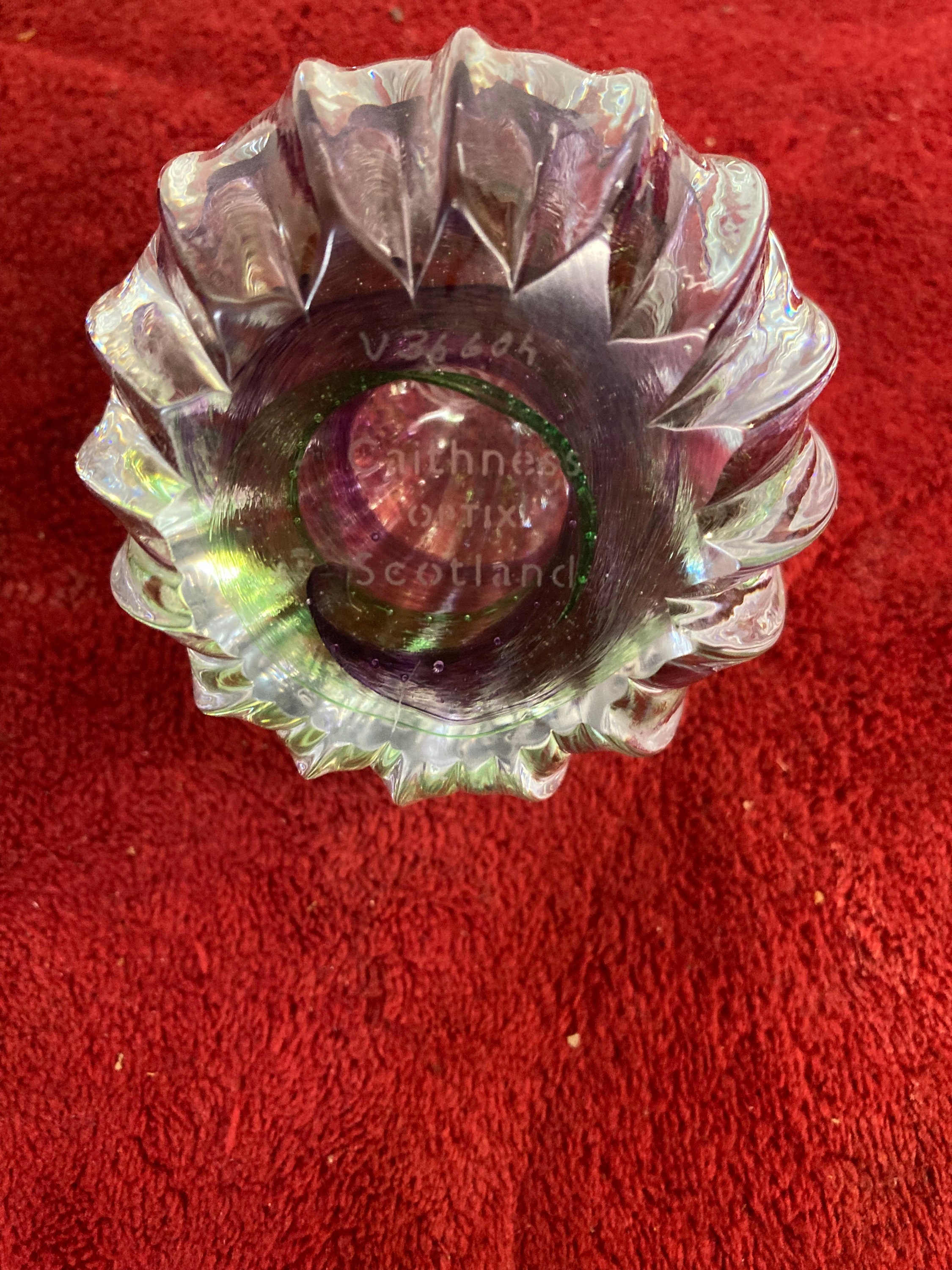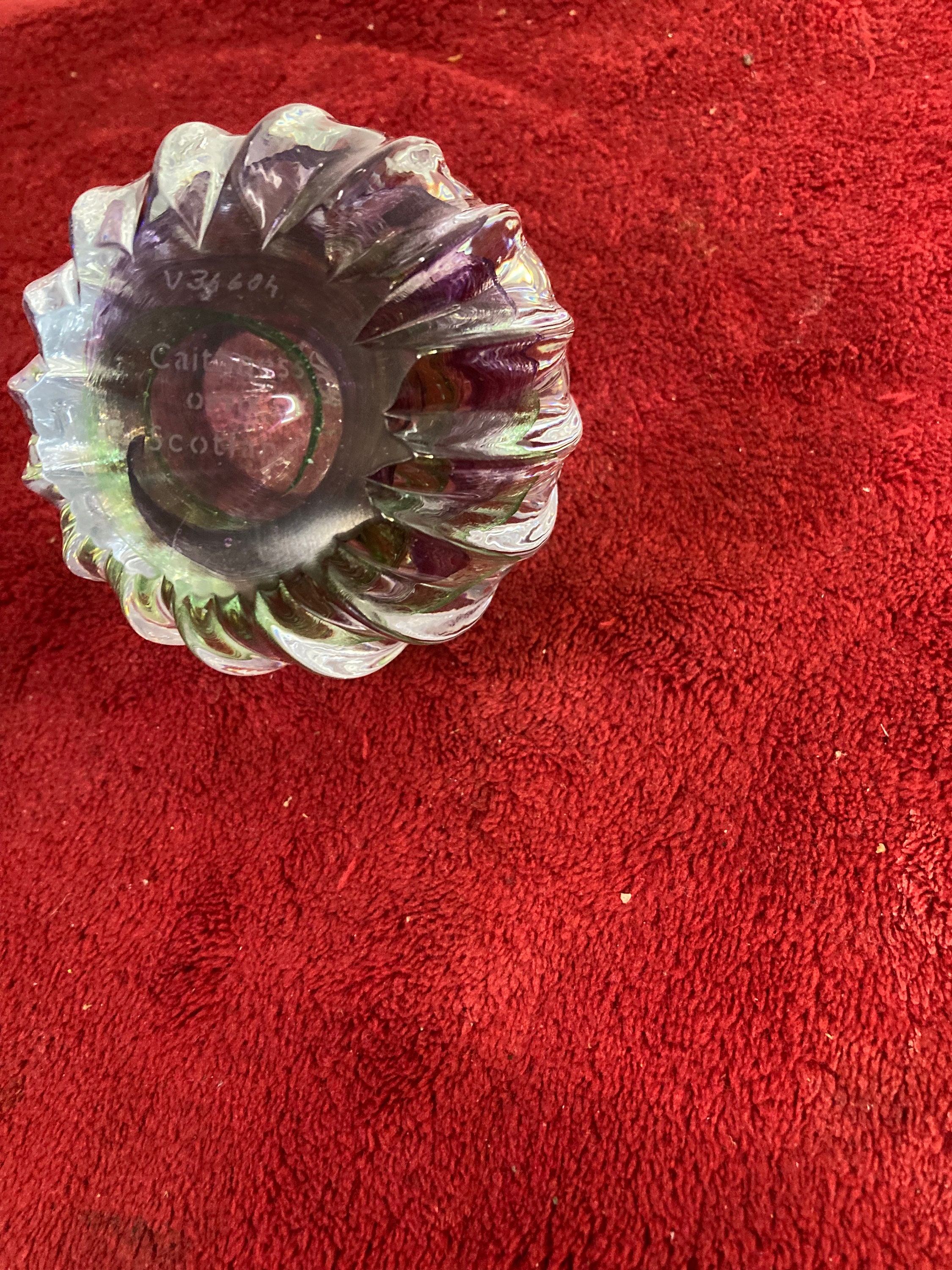 Signed "CAITHNESS OPTIX SCOTLAND" on the bottom of the paperweight.