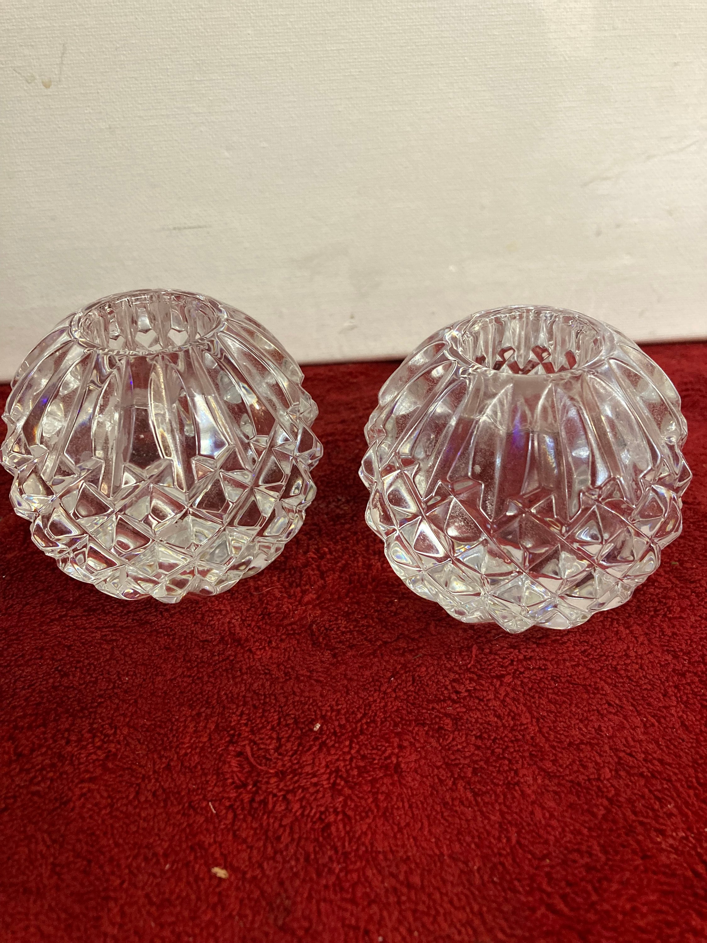 Pair Of WATERFORD Crystal Ireland Round Candle Holders 2 1/2"