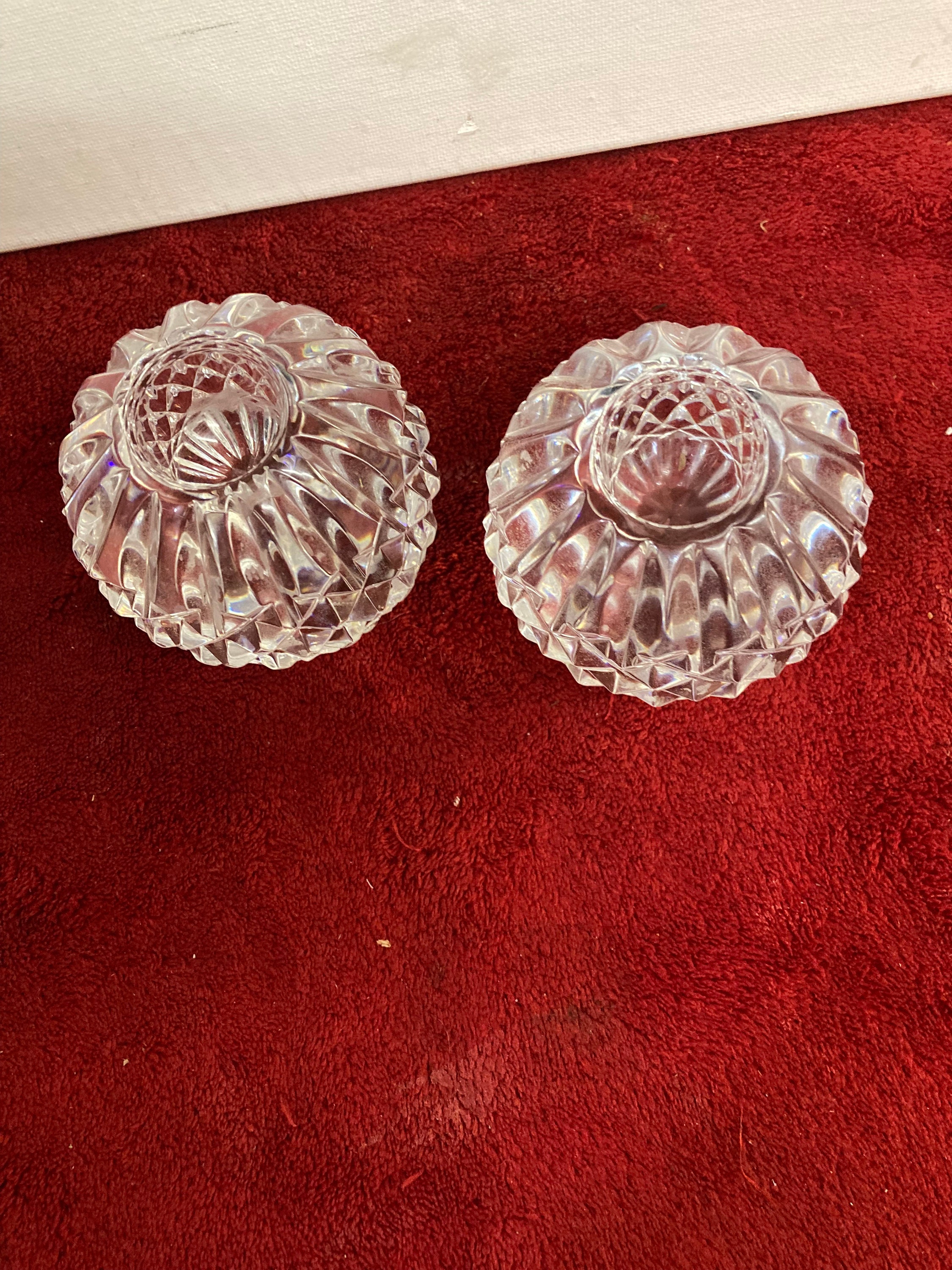 PAIR OF WATERFORD CRYSTAL CANDLE HOLDERS LEADED HAND CUT DIAMONDS