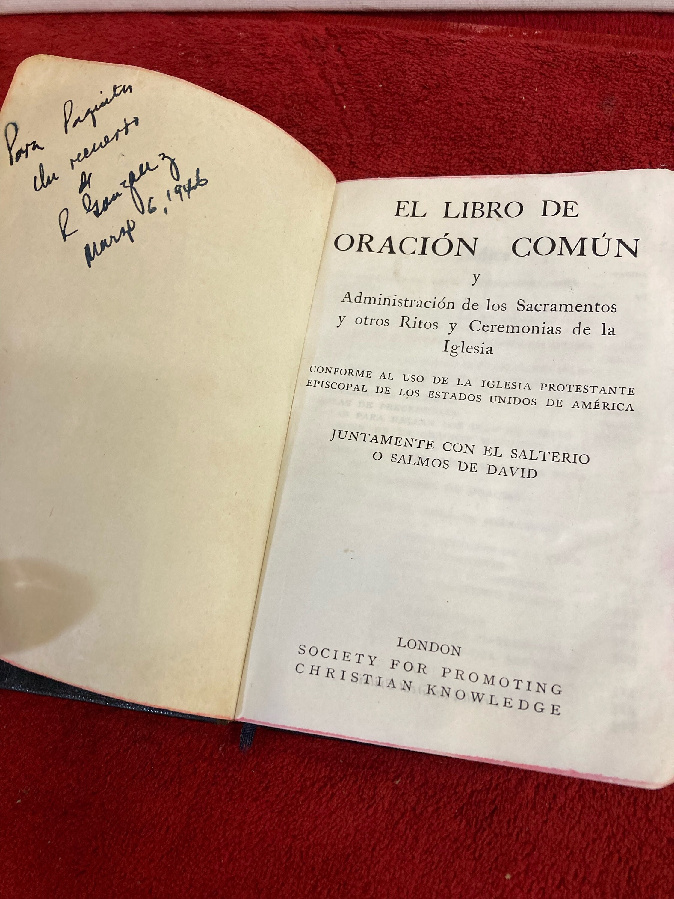 Spanish Version , Ee Libro De ORACION COMUNThe Book Of Common PrayerANTIQUE BOOK ABOUT SOCIETY FOR PROMOTING CHRISTIAN KOWLEDGELondonSociety For Promotiong Christain KnowledgePrinted in Great Britain