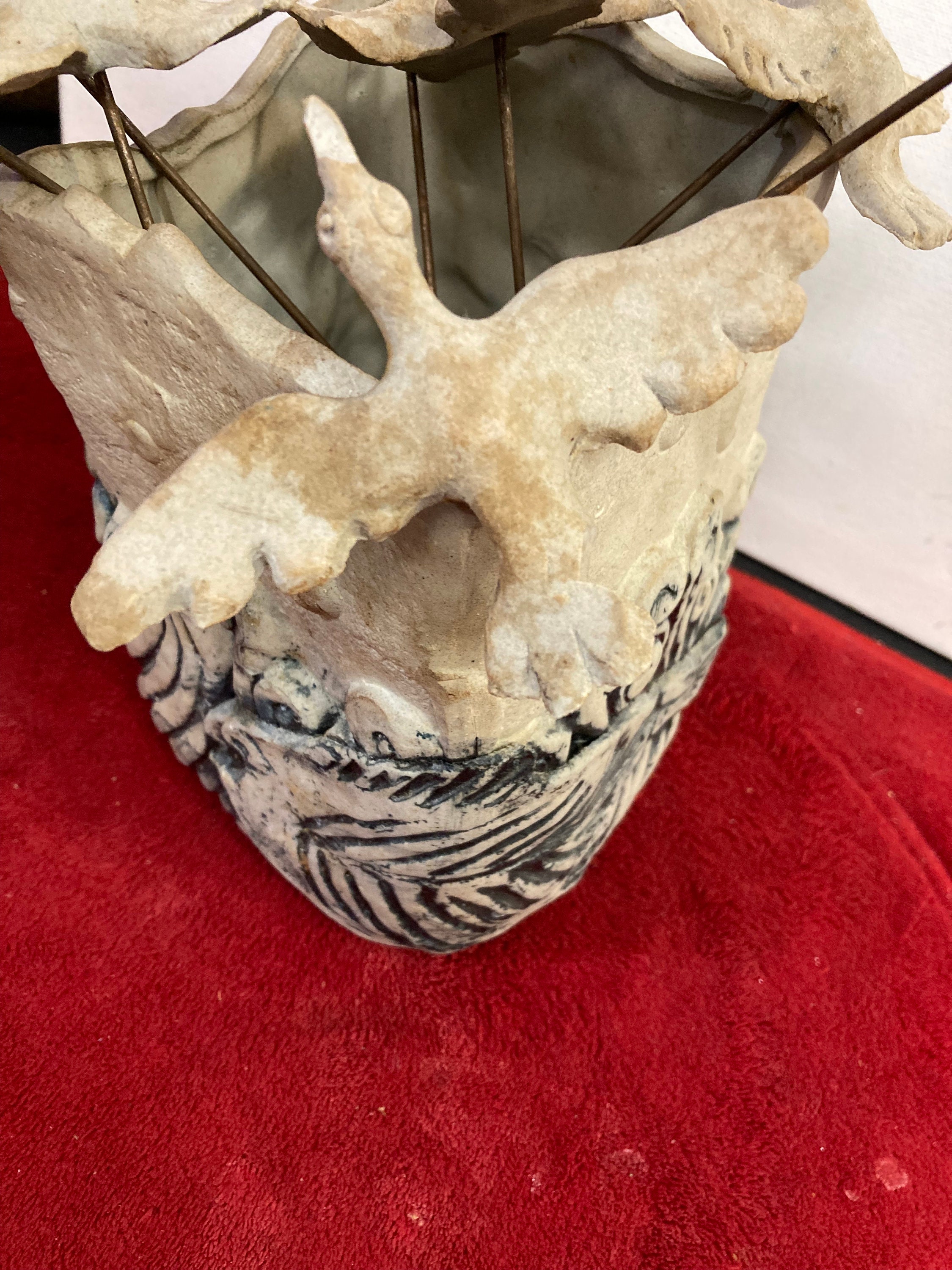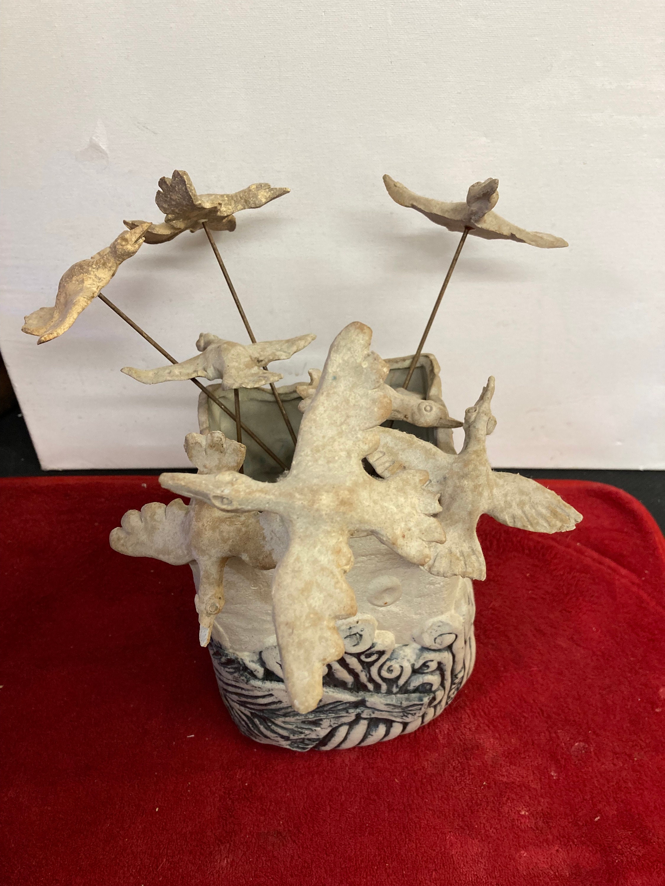 Seagulls Flying Over Water To Catch Fish,Pottery by Lopez I