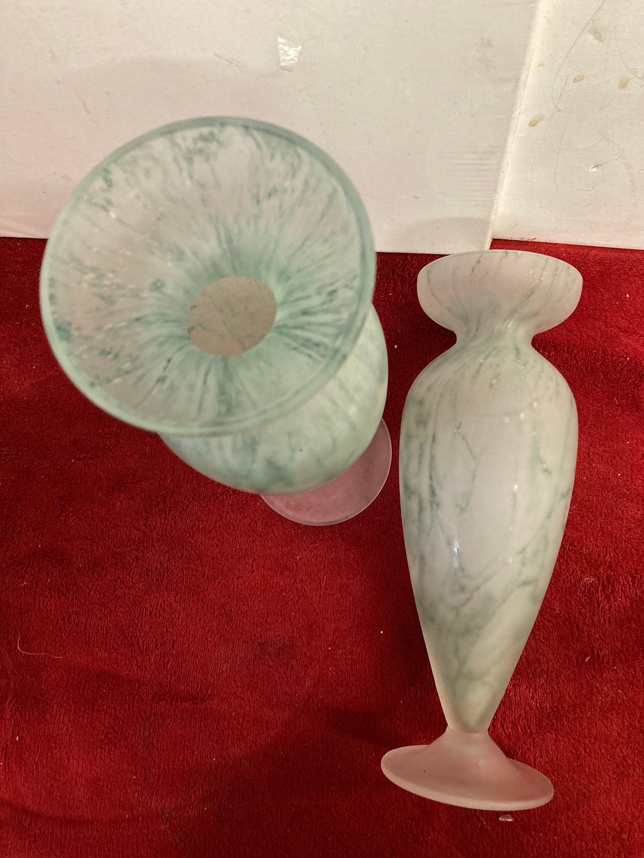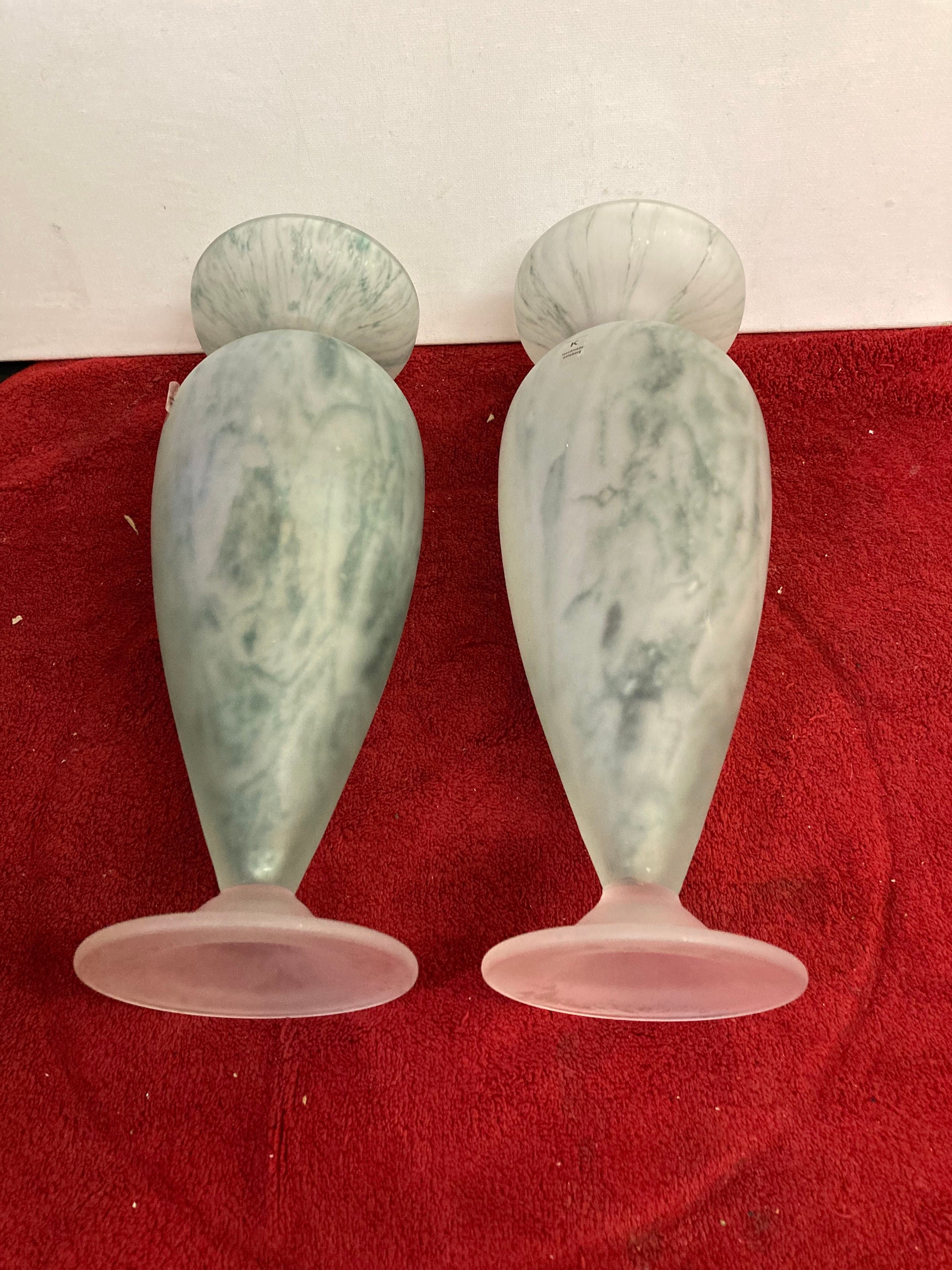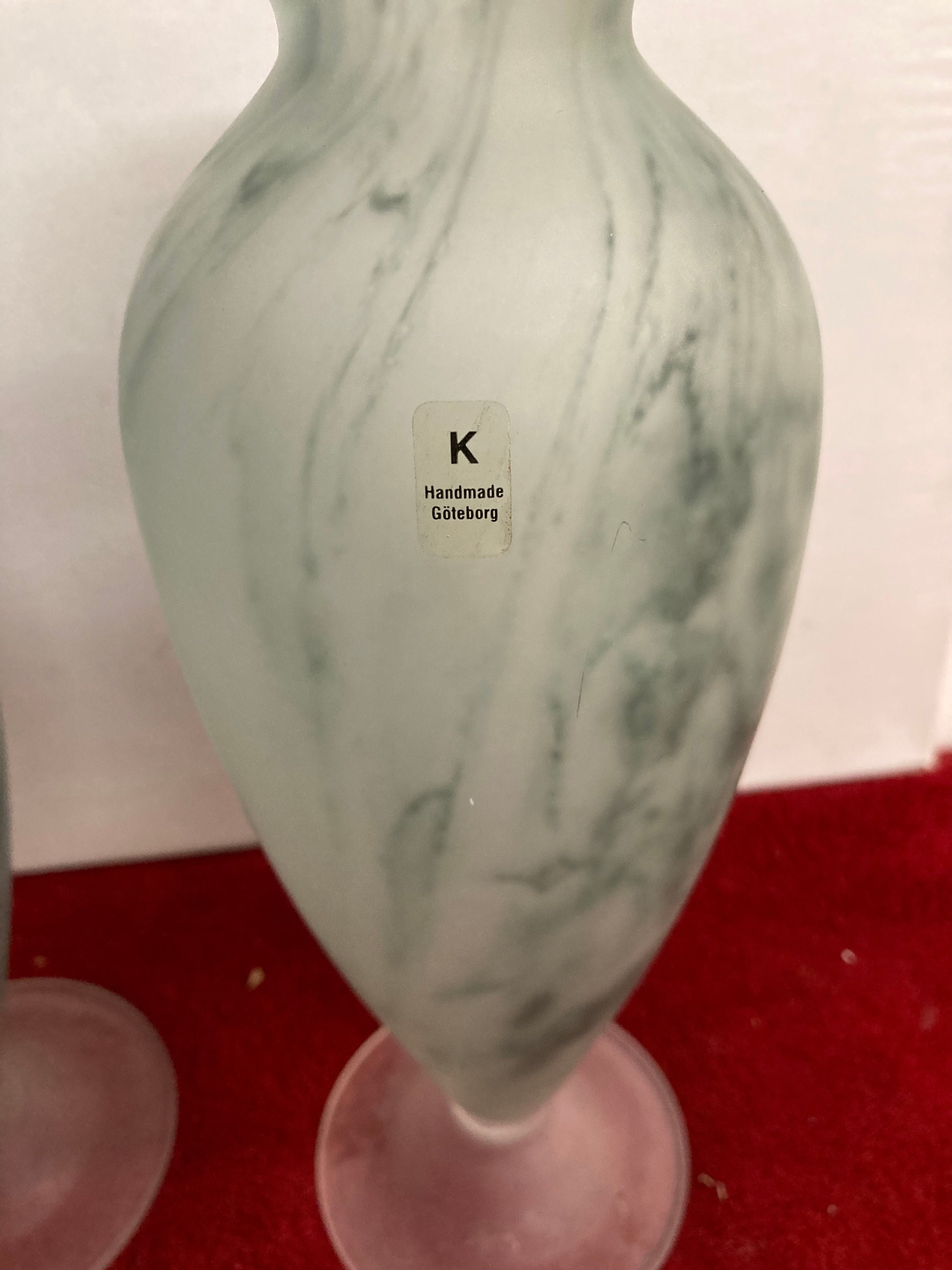Pair of handmade Frosted Swirl Green Vases by Goteborg