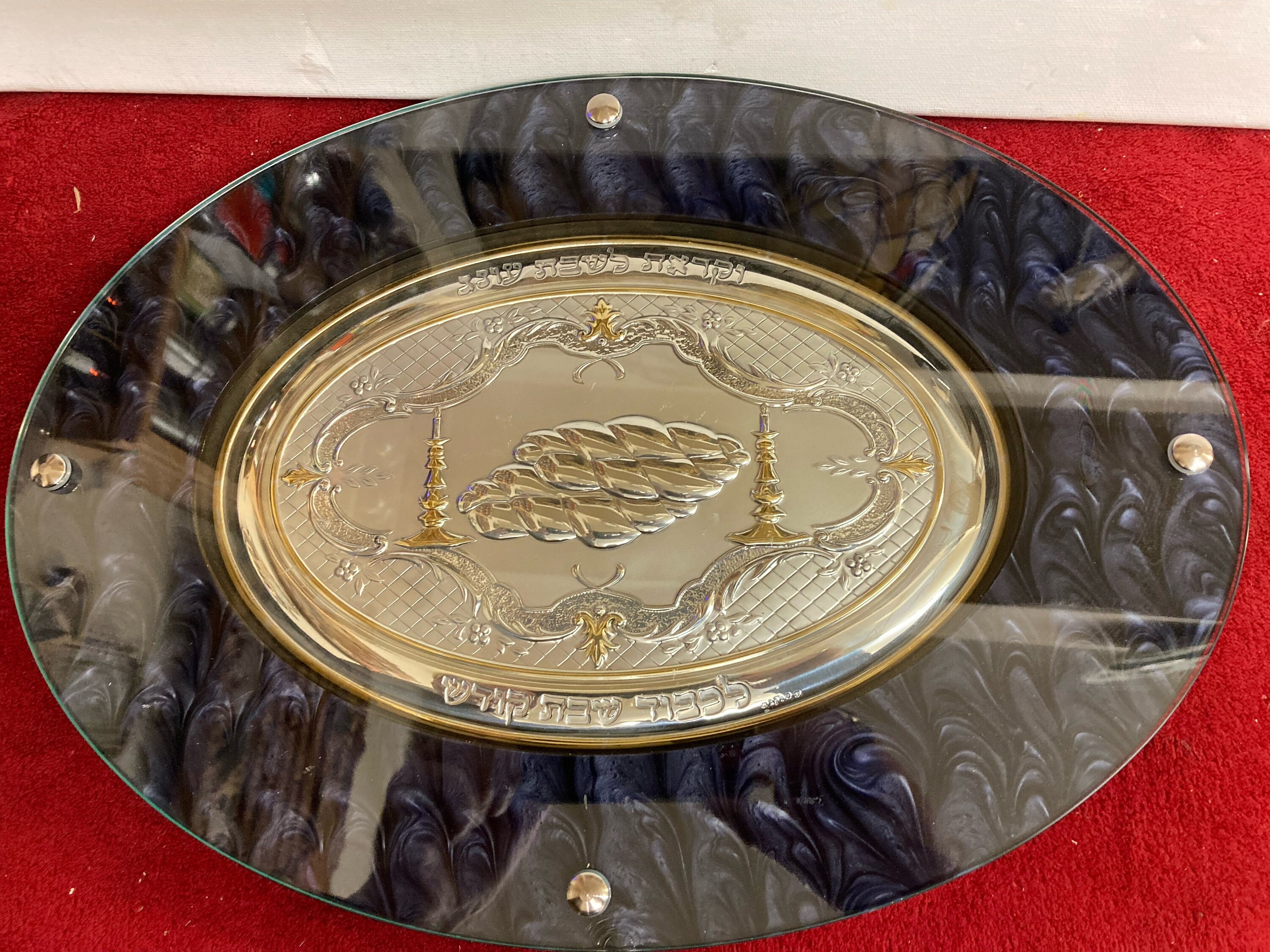 The board is covered with a reinforced glass plate on which you will be cutting the challah.