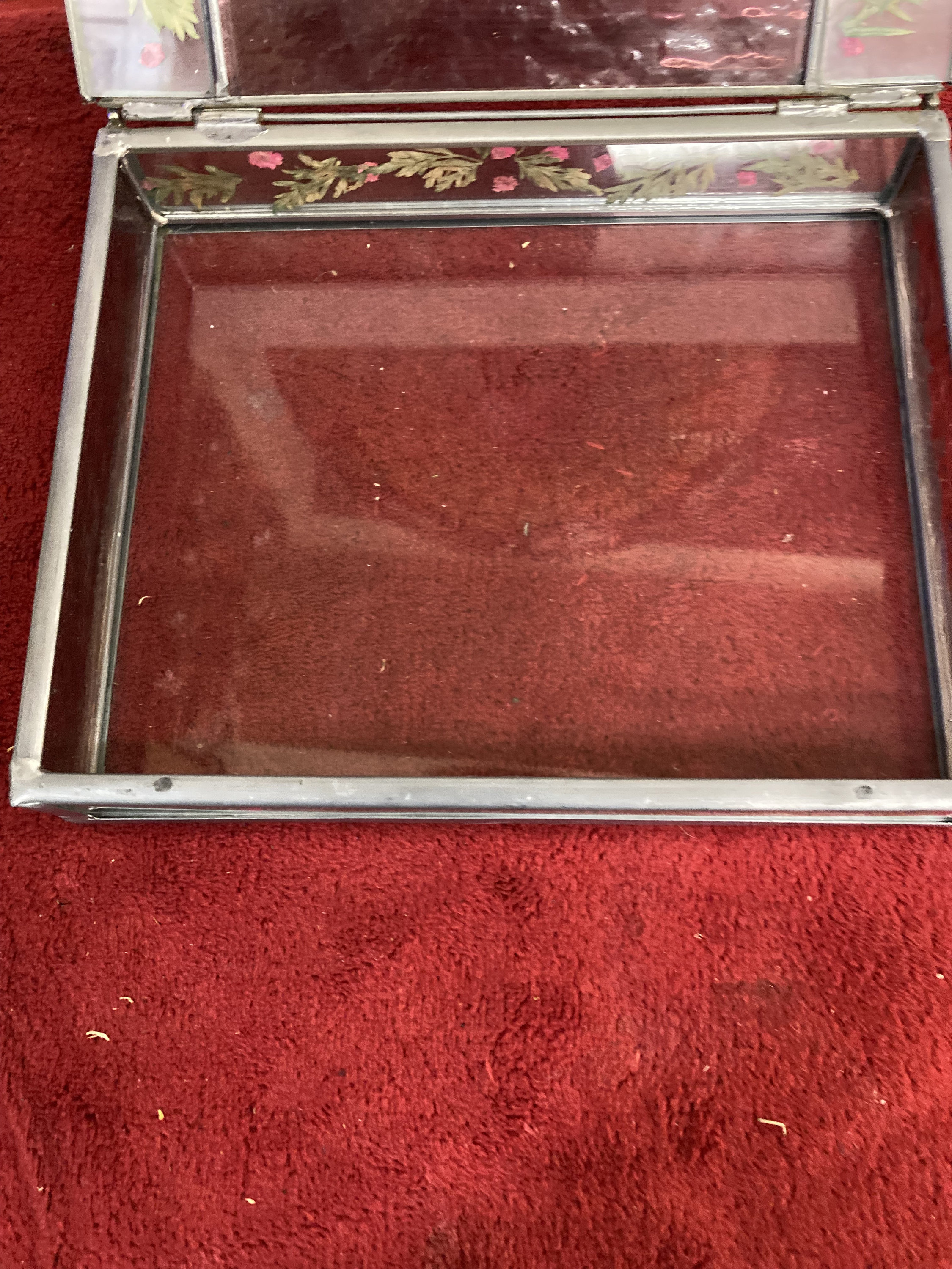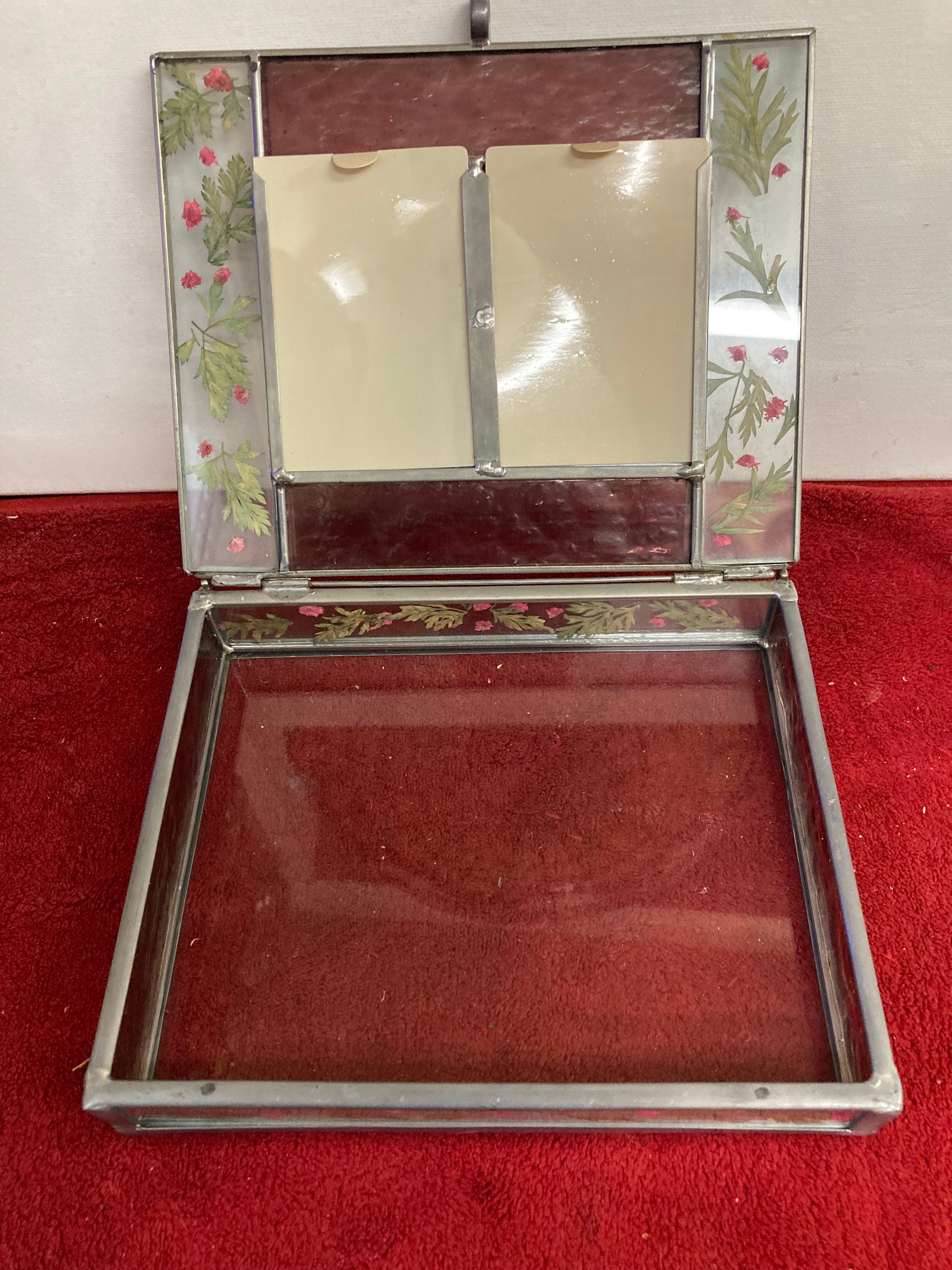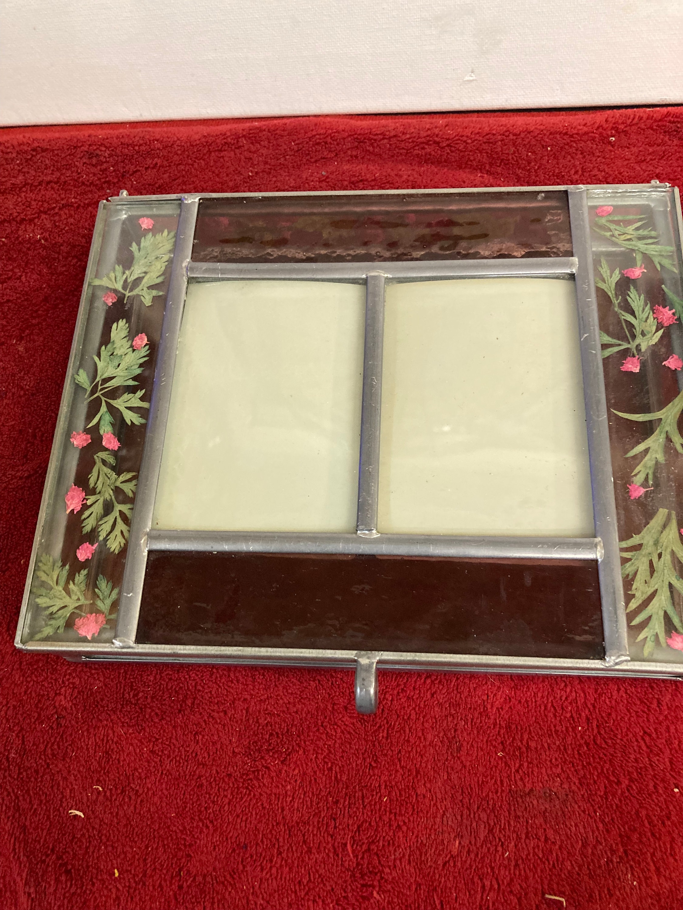 Vintage Stained Glass Jewelry/Trinket Box w/Fused dried flowers -
