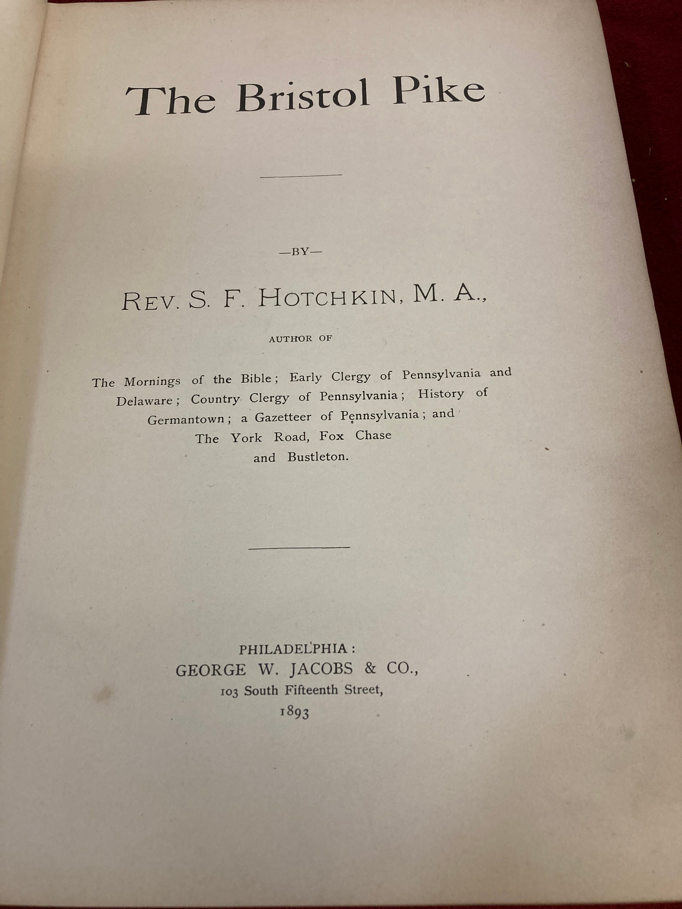 HOTCHKIN, S.F. The Bristol Pike. Phila., 1893. 1st ed. 4to. Illus. 410pp. Scarce.