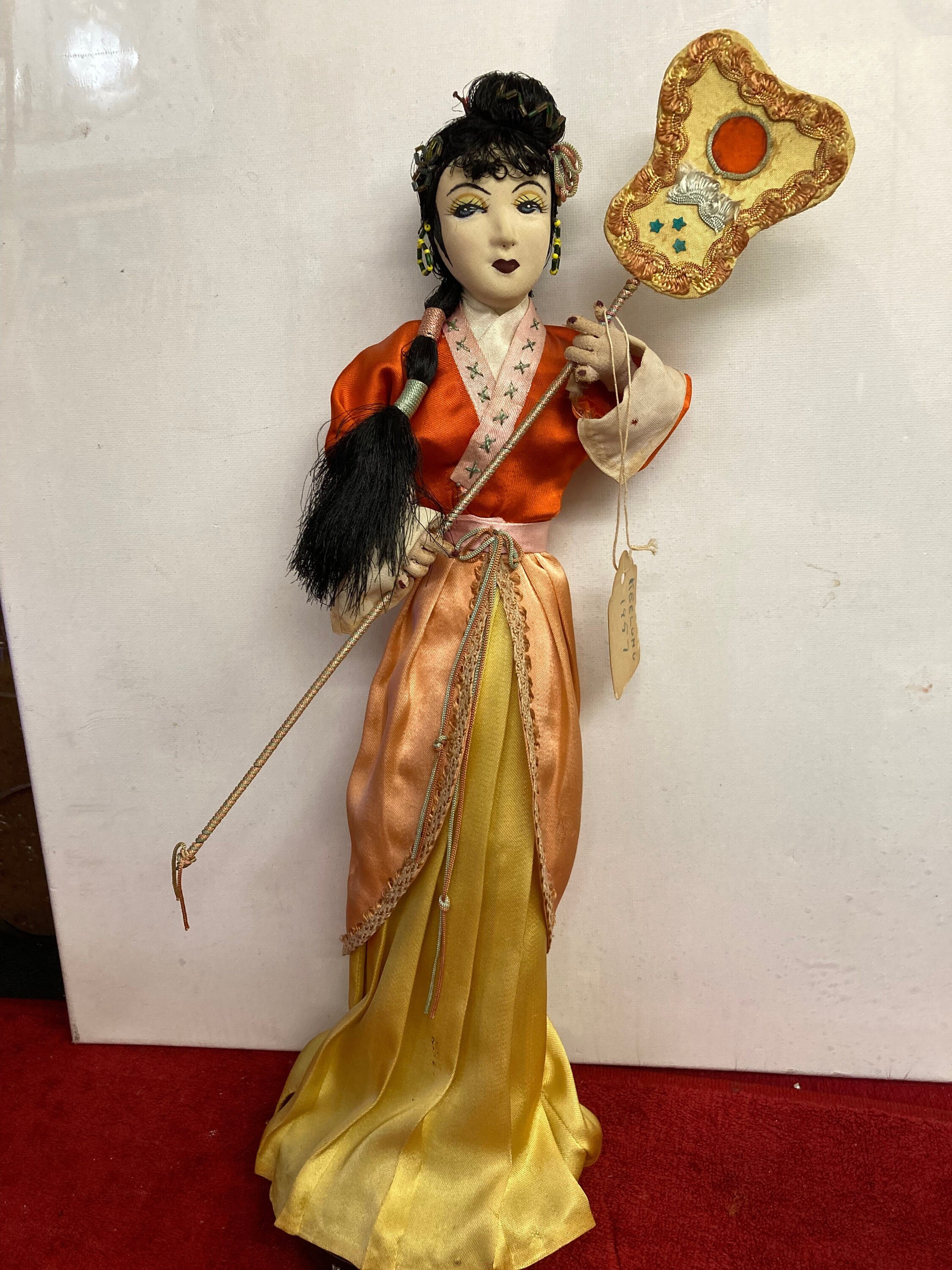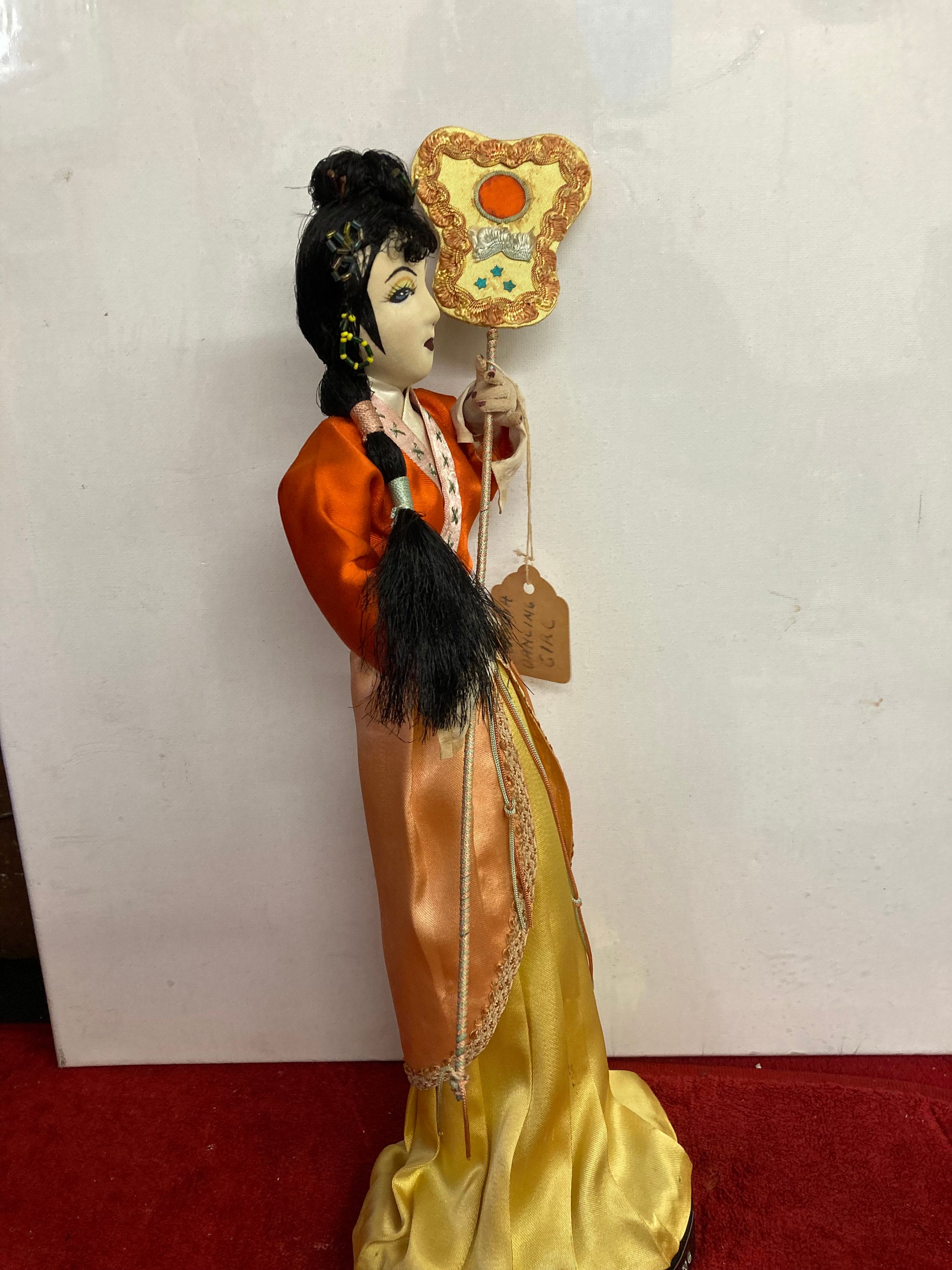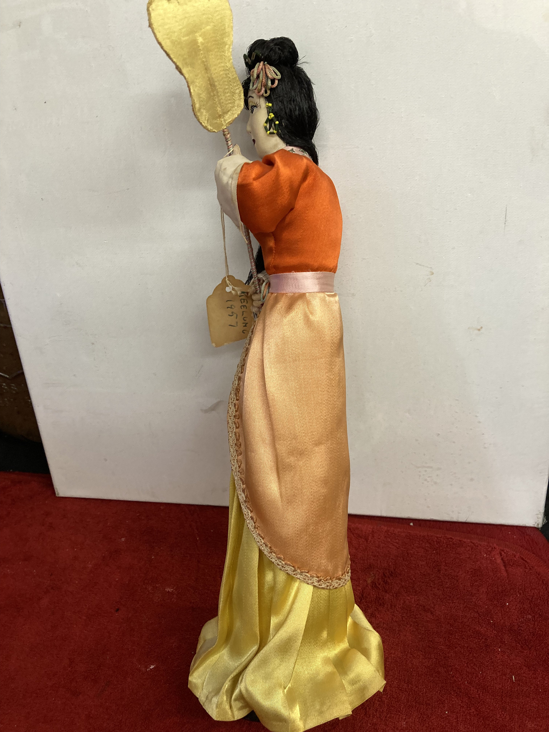 Vintage 1957 Keelung Formusa Dancing Girl ,Taiwanese Lady Doll With Traditional CostumeIn excellent Condition Very Well keptRare Doll from Taiwan14.5" tall8" Wide4" deep