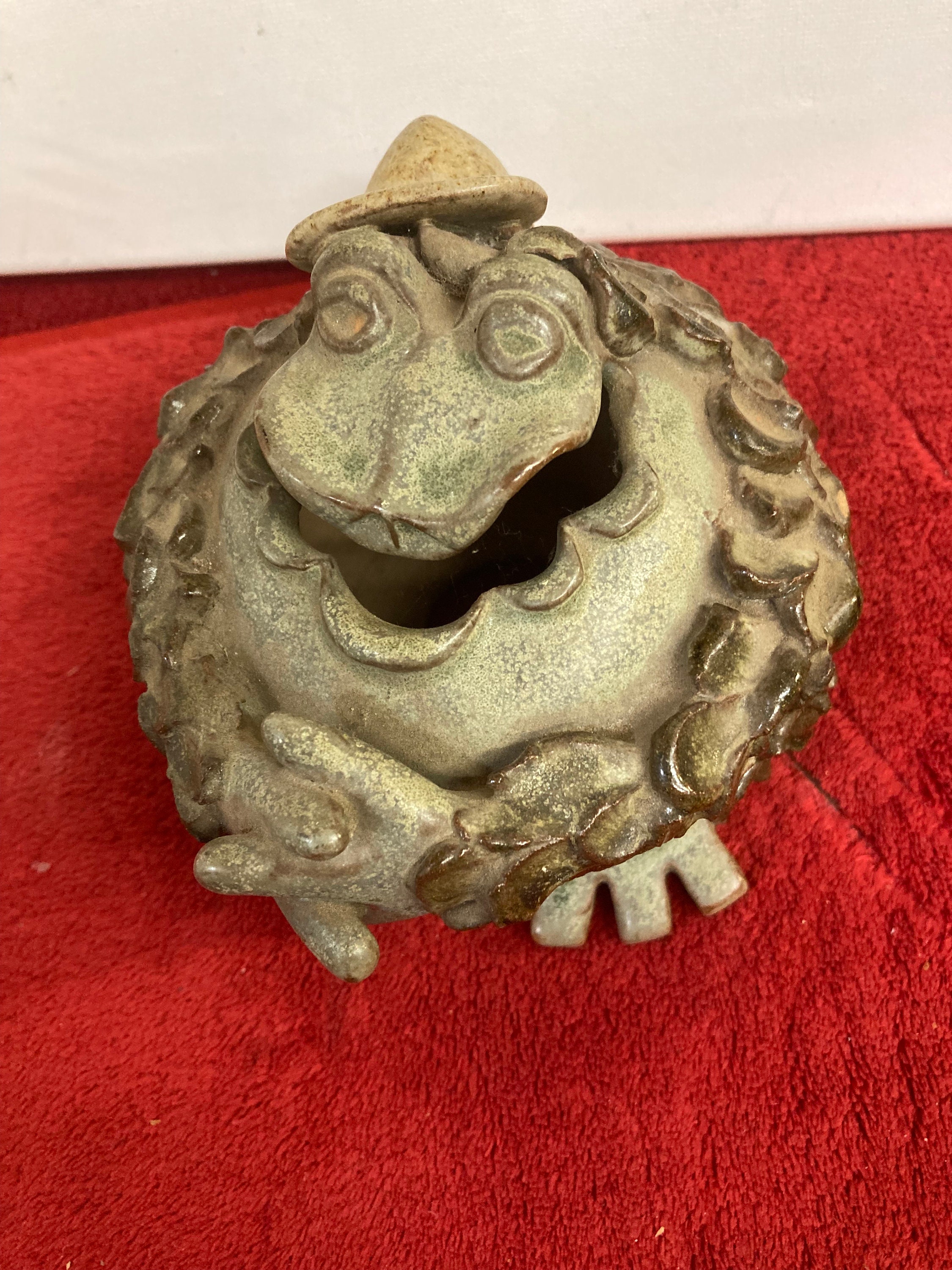 Funny Frog, weight 1 lb 4 3/4" long . 3 3/4" tall 4 1/2" wide,,,,Soapstone