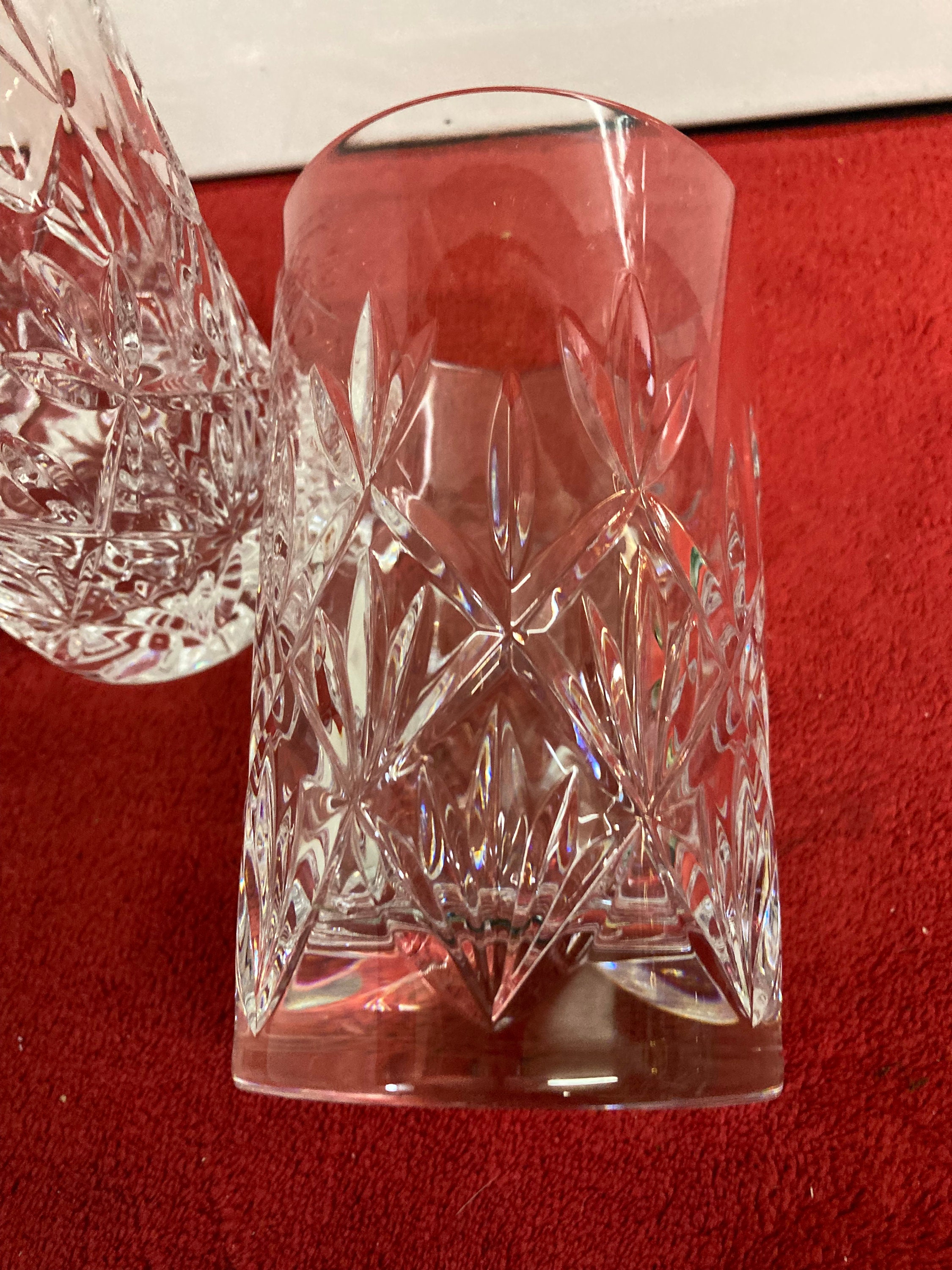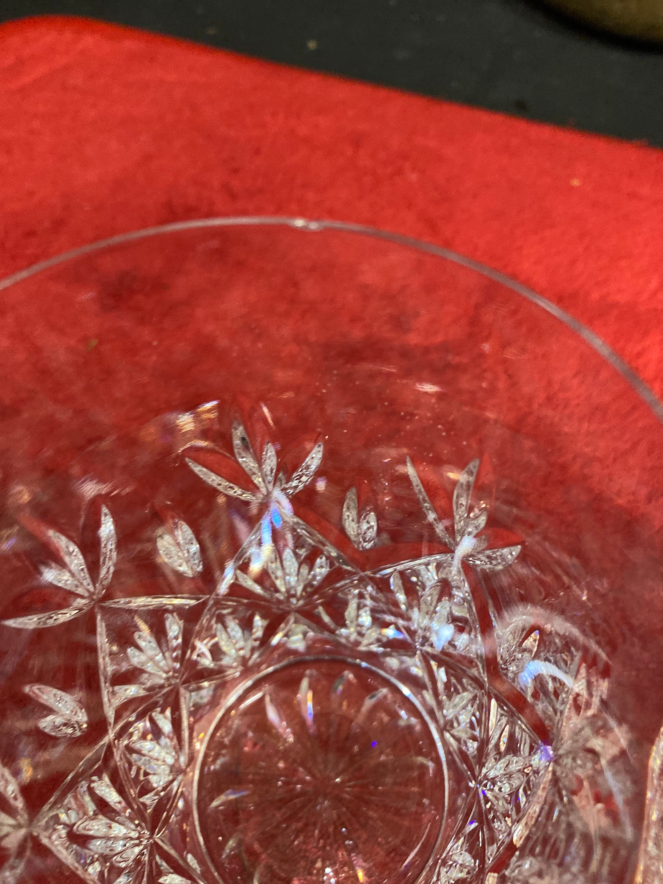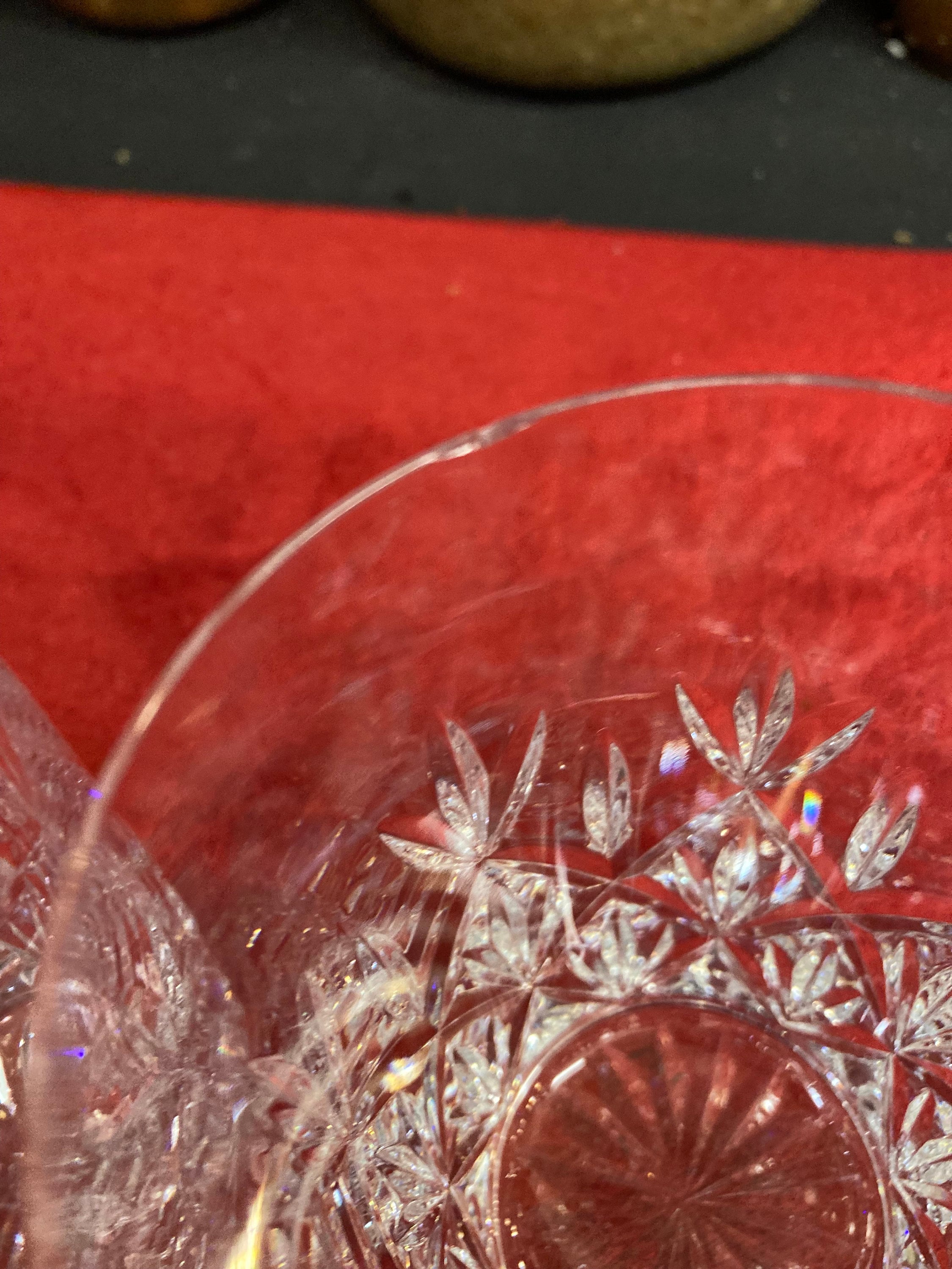The pattern displays fan and diamond motif cuts with a starburst to the base.